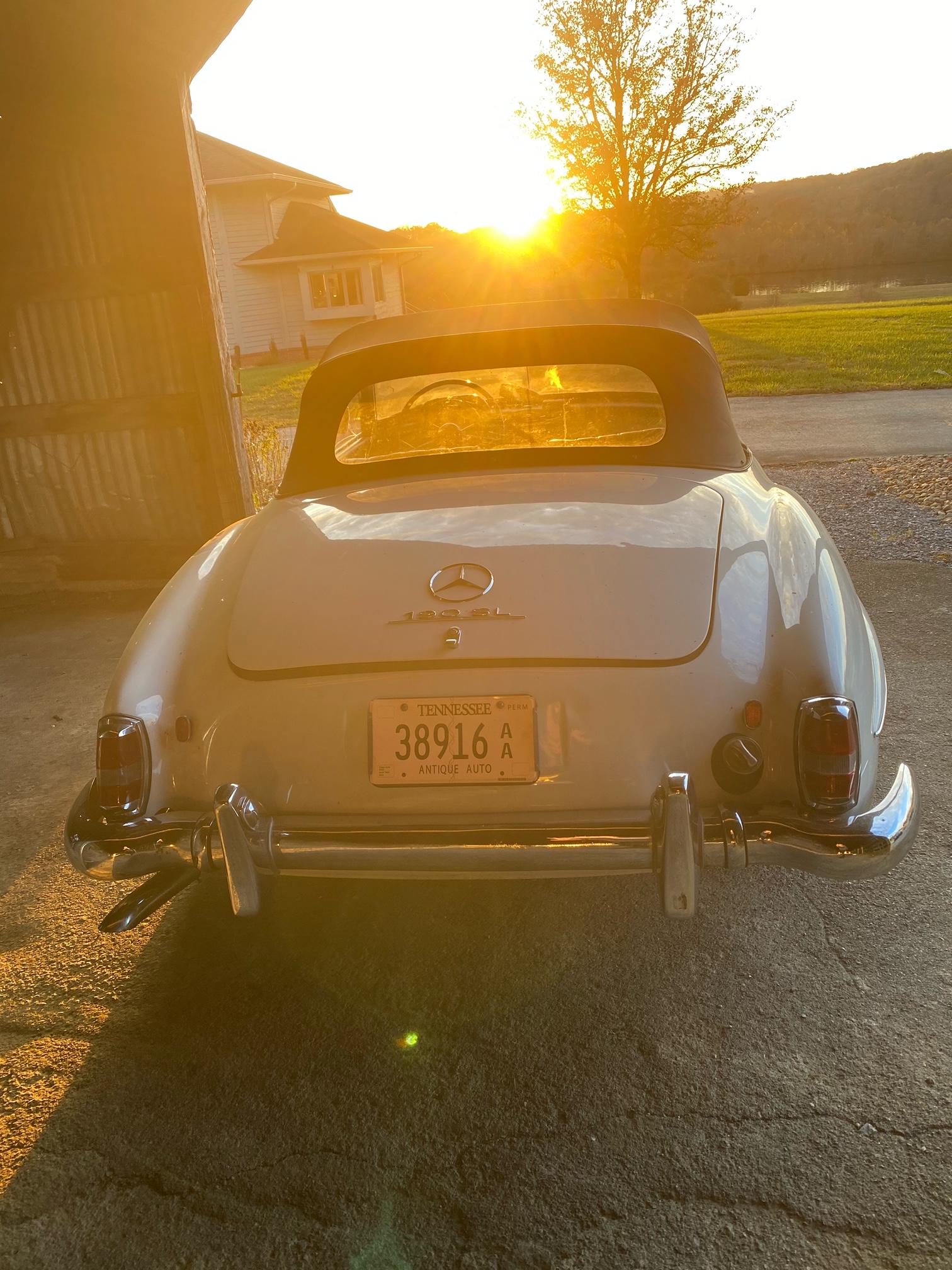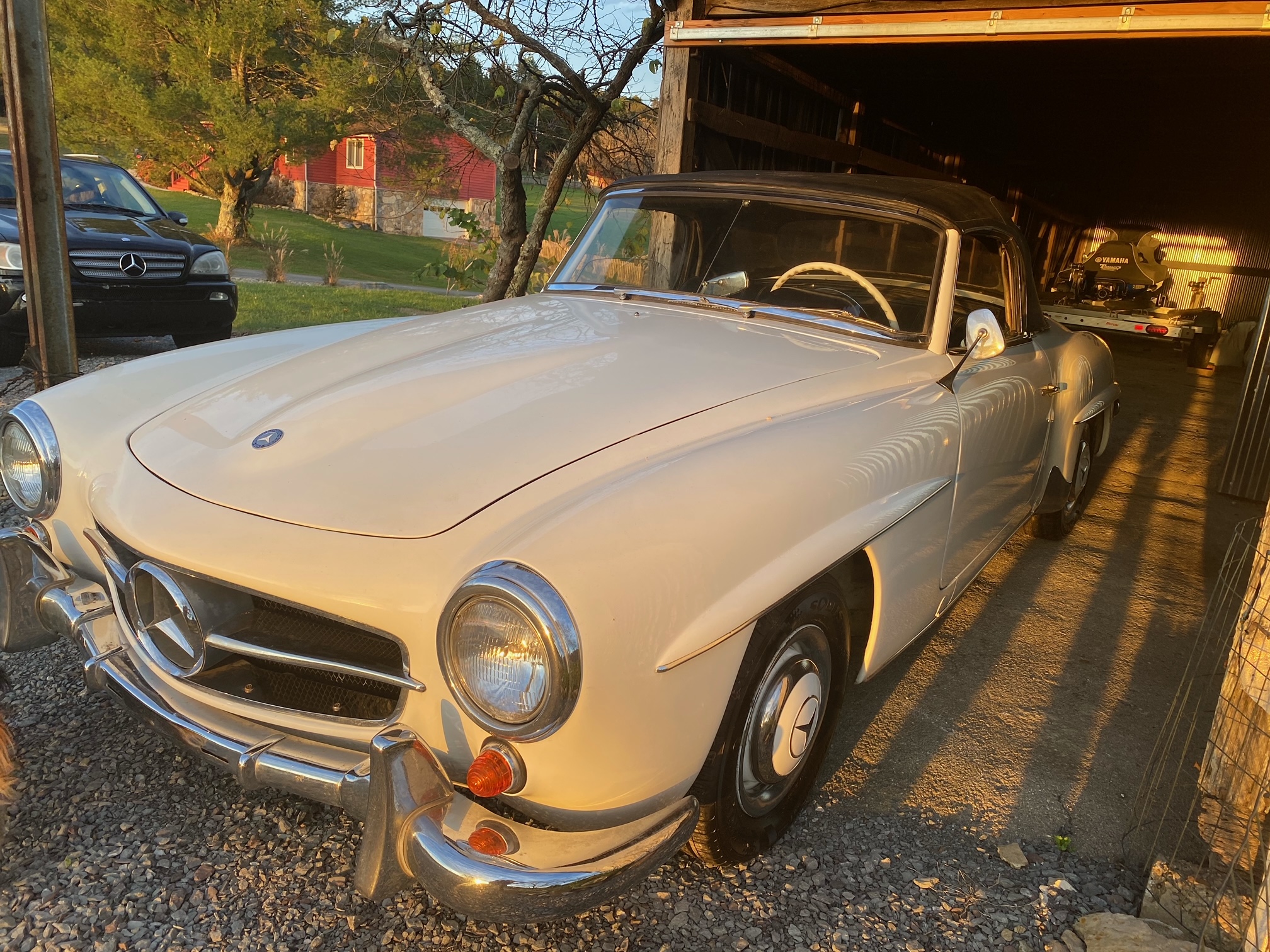 Painted 13″ steel wheels wear body-color-accented hubcaps and polished trim rings, and the seller notes that the right-rear hubcap is included in the sale but is bent. The car is fitted with 185/75 tires, and braking is handled by four-wheel drums. The seller notes that the emergency brake is broken.