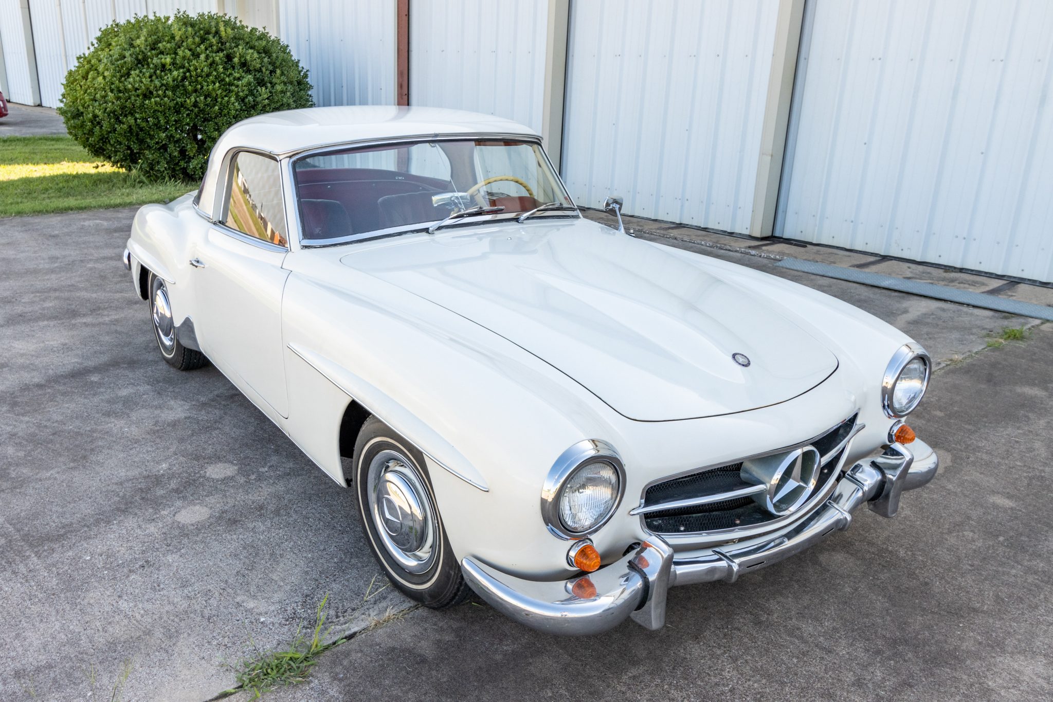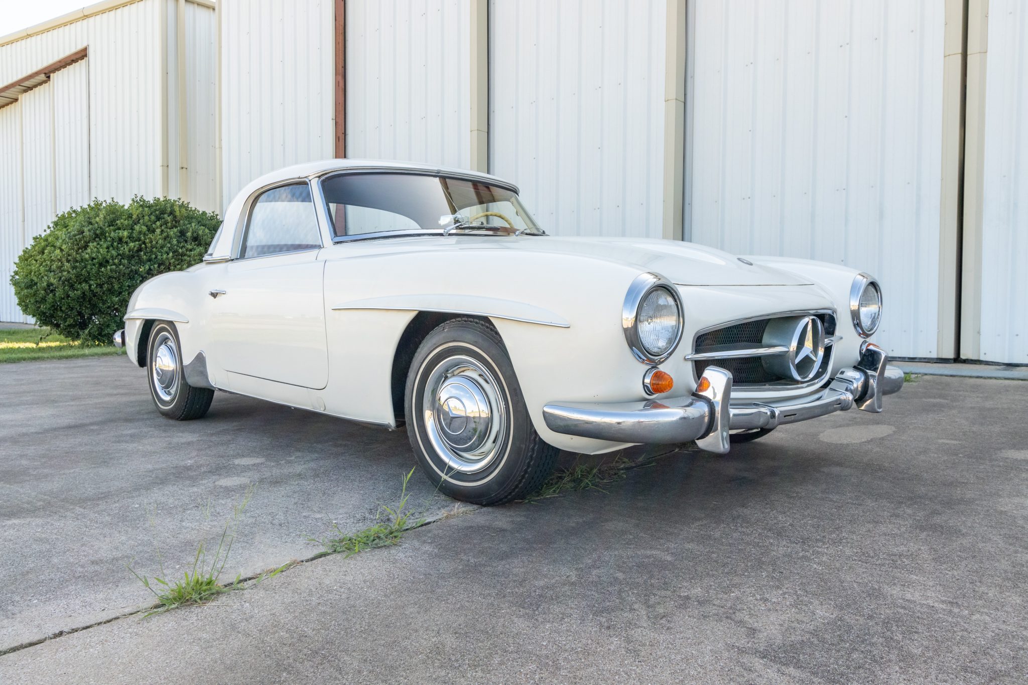 The 13″ steel wheels have chrome trim rings and hubcaps with body-color accents while older 175-series Michelin Radial whitewall tires are mounted at all four corners. The seller states that the tires are in need of replacement.