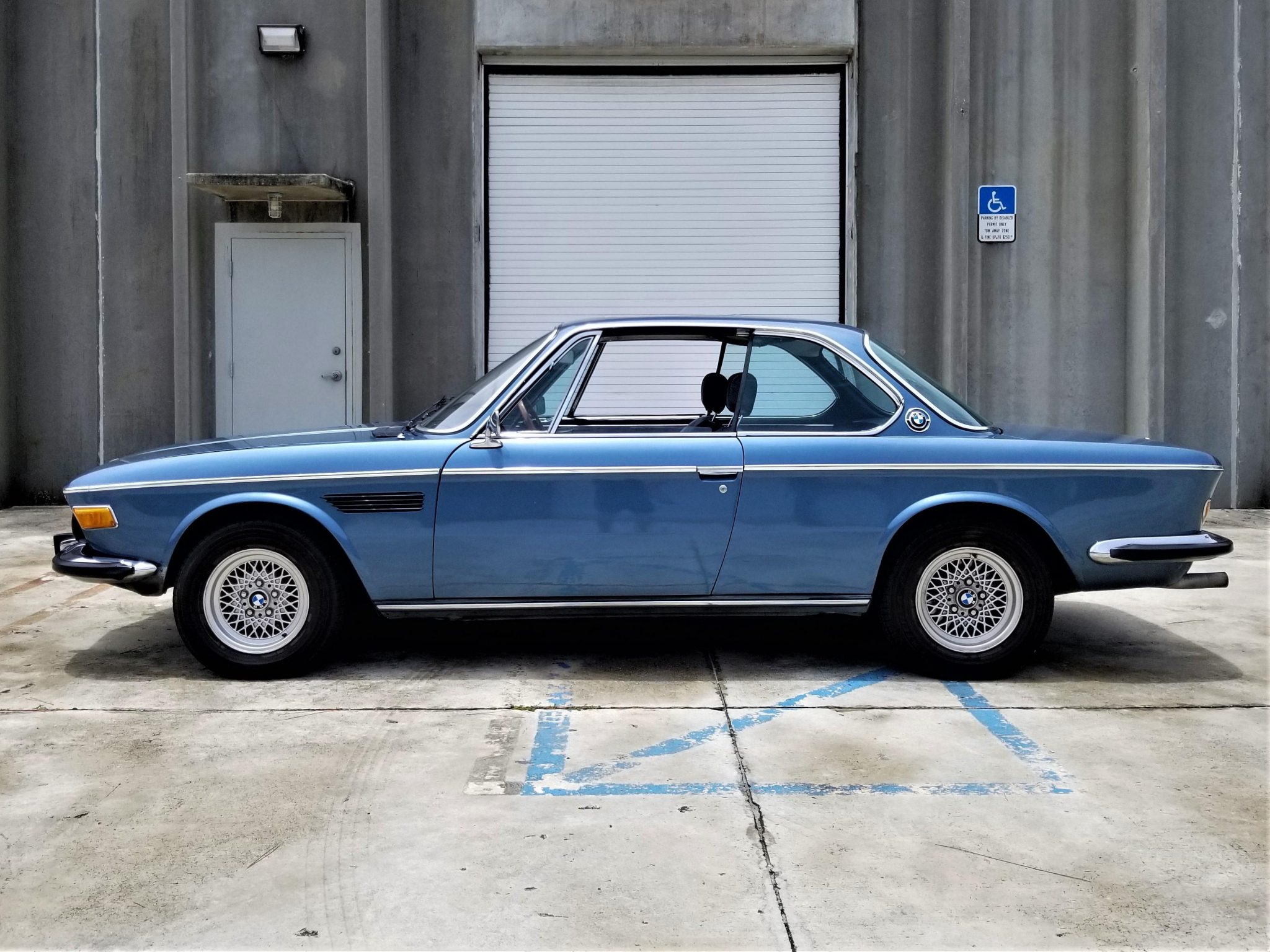 BBS Mahle 14″ basketweave wheels from a later BMW model wear Roundel center caps and are wrapped in older Toyo Extensa tires. The car is equipped with disk brakes at all four corners, and the seller notes that the brake fluid should be flushed. The removed factory 14″ alloy wheels are included in the sale and shown in the gallery below.