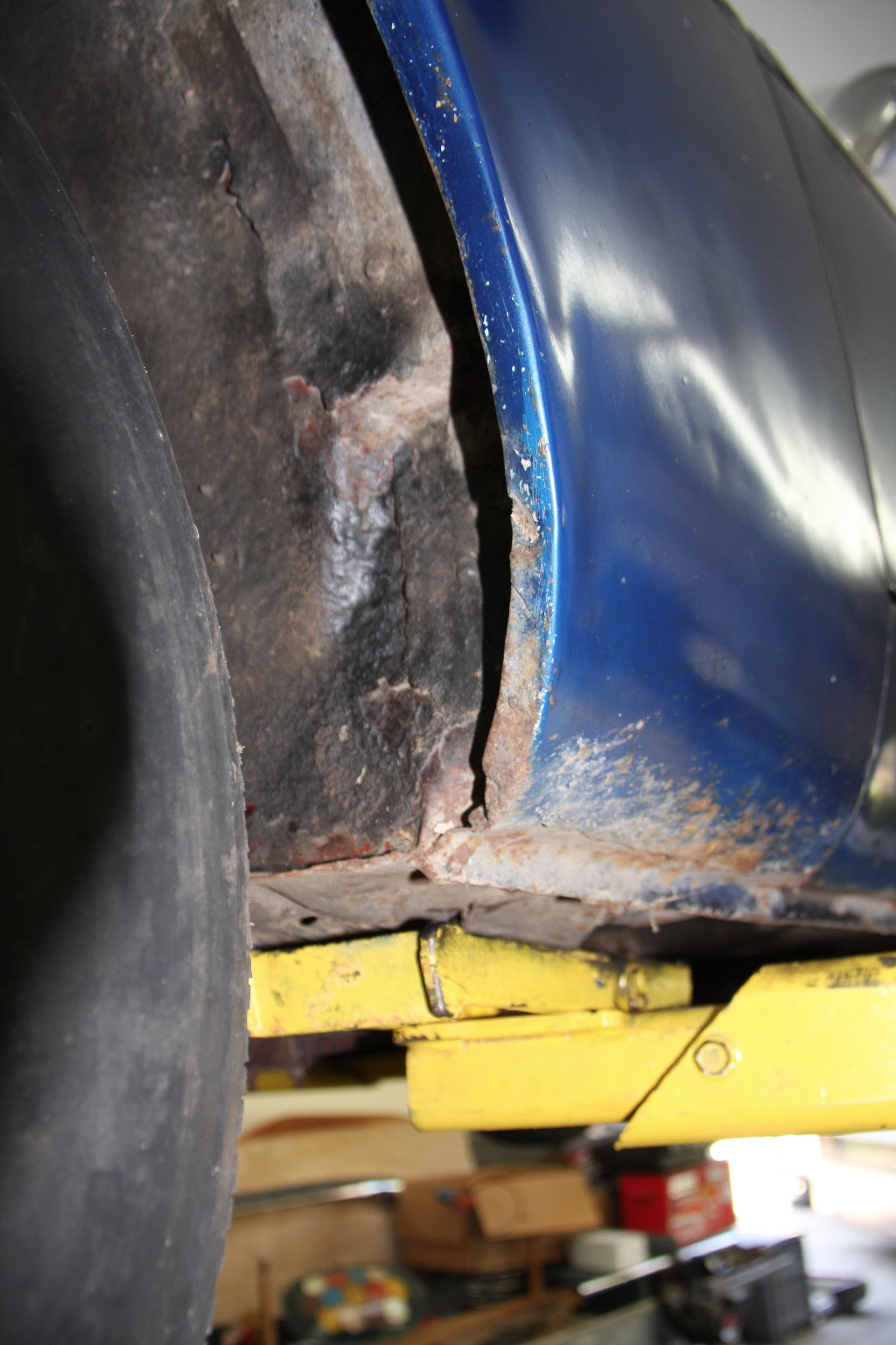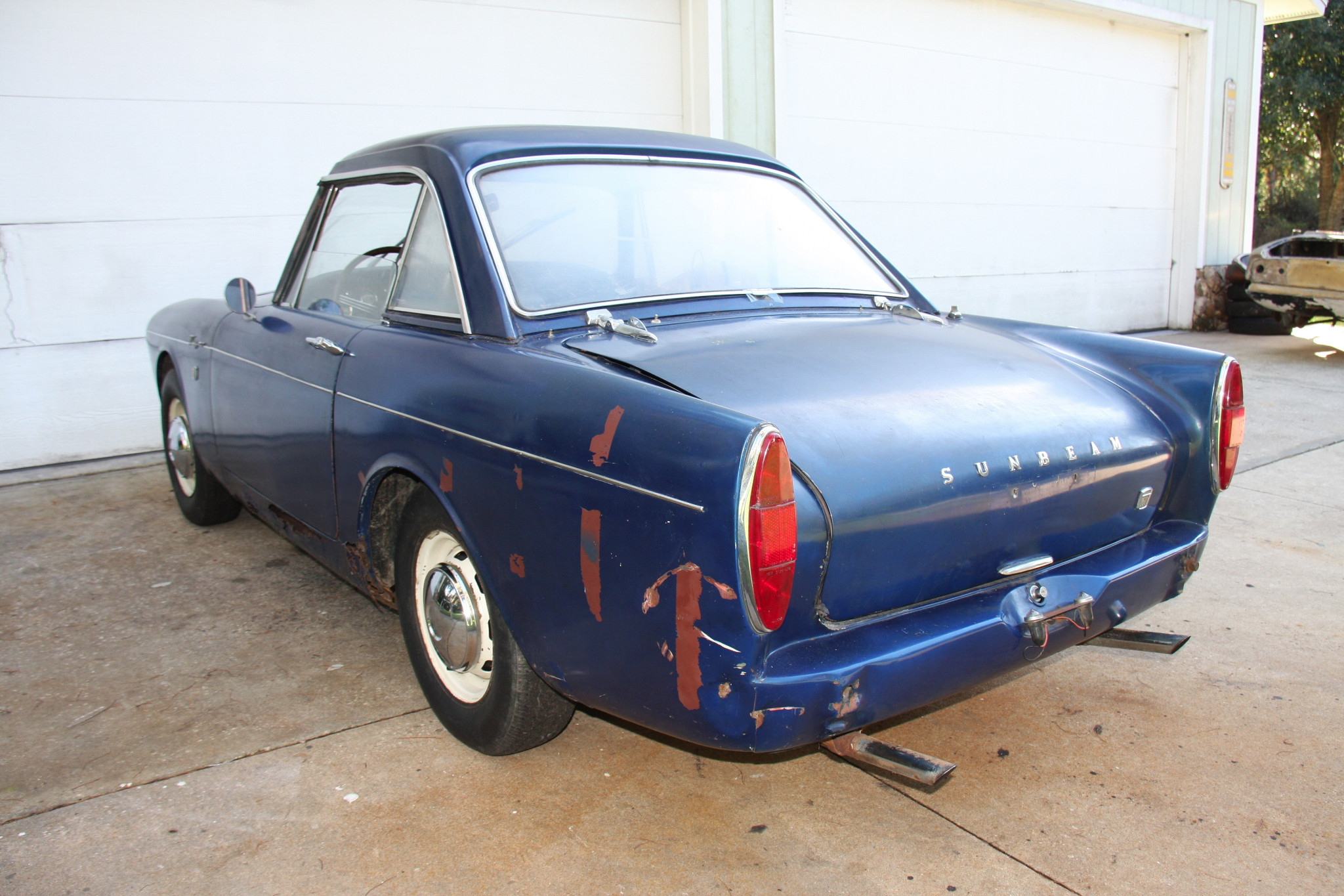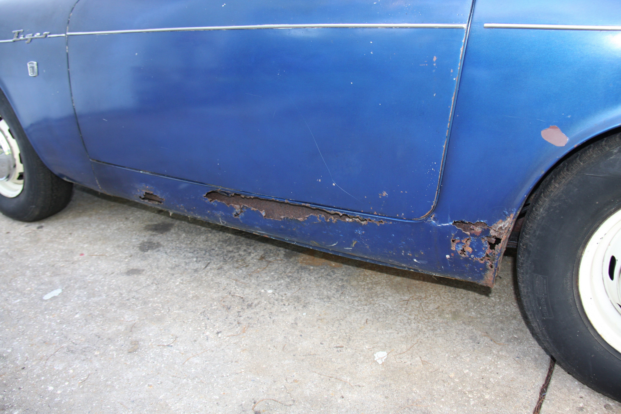 All side trim is included and looks good with newly chromed bumpers (bumpers not shown on car) and original hubcaps. Chrome is said to be in good condition as are the marker lights and grille. The Tiger includes the 3-piece metal tonneau, covering the convertible top, and original hard top in serviceable condition.