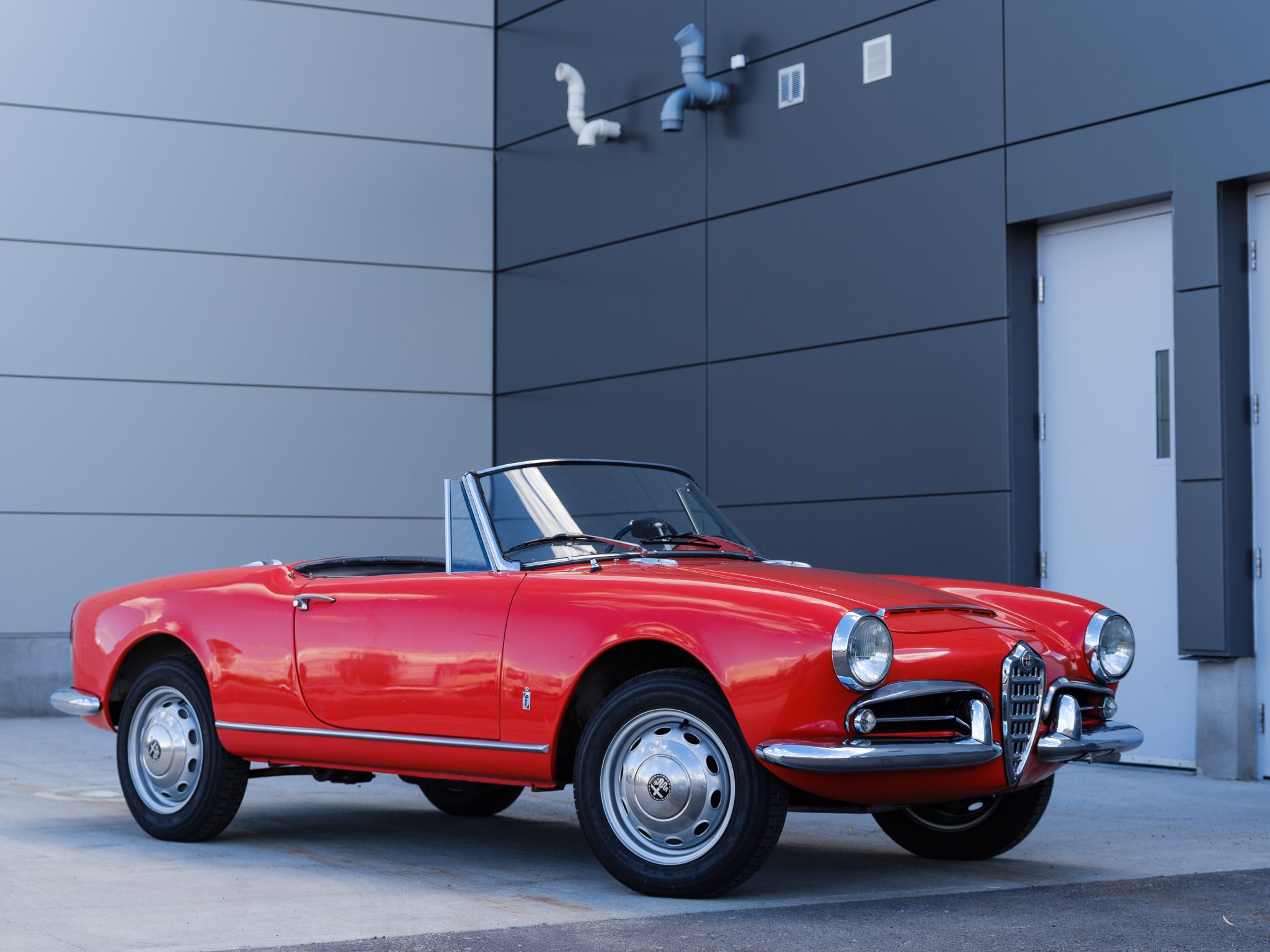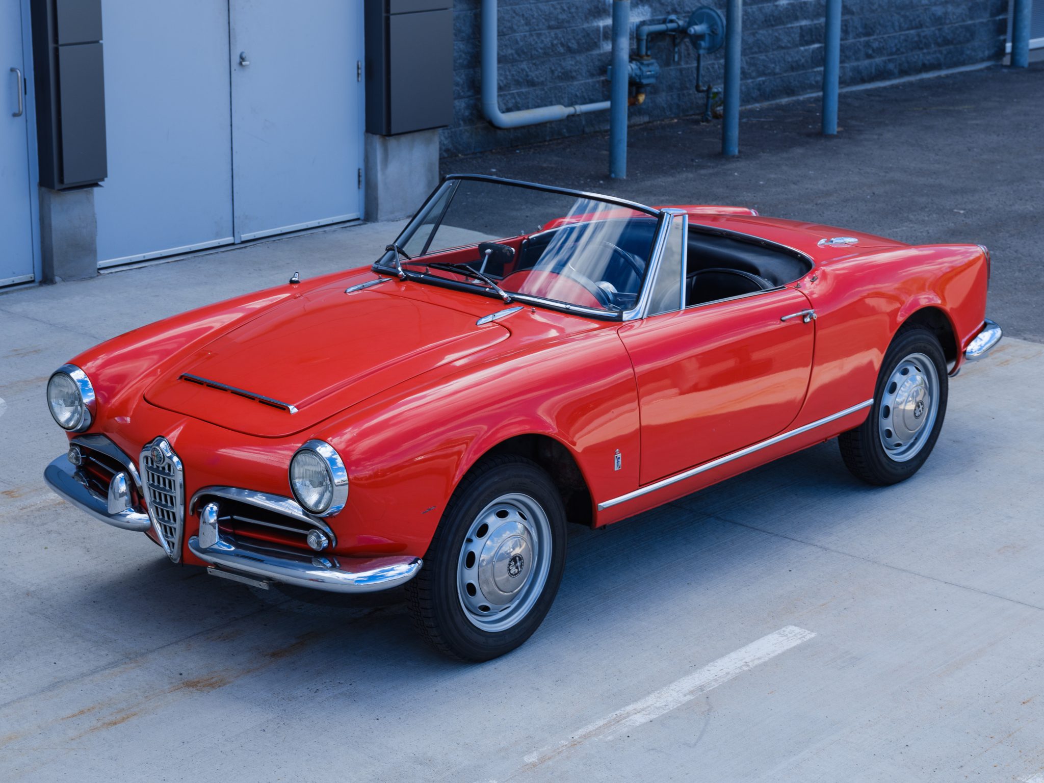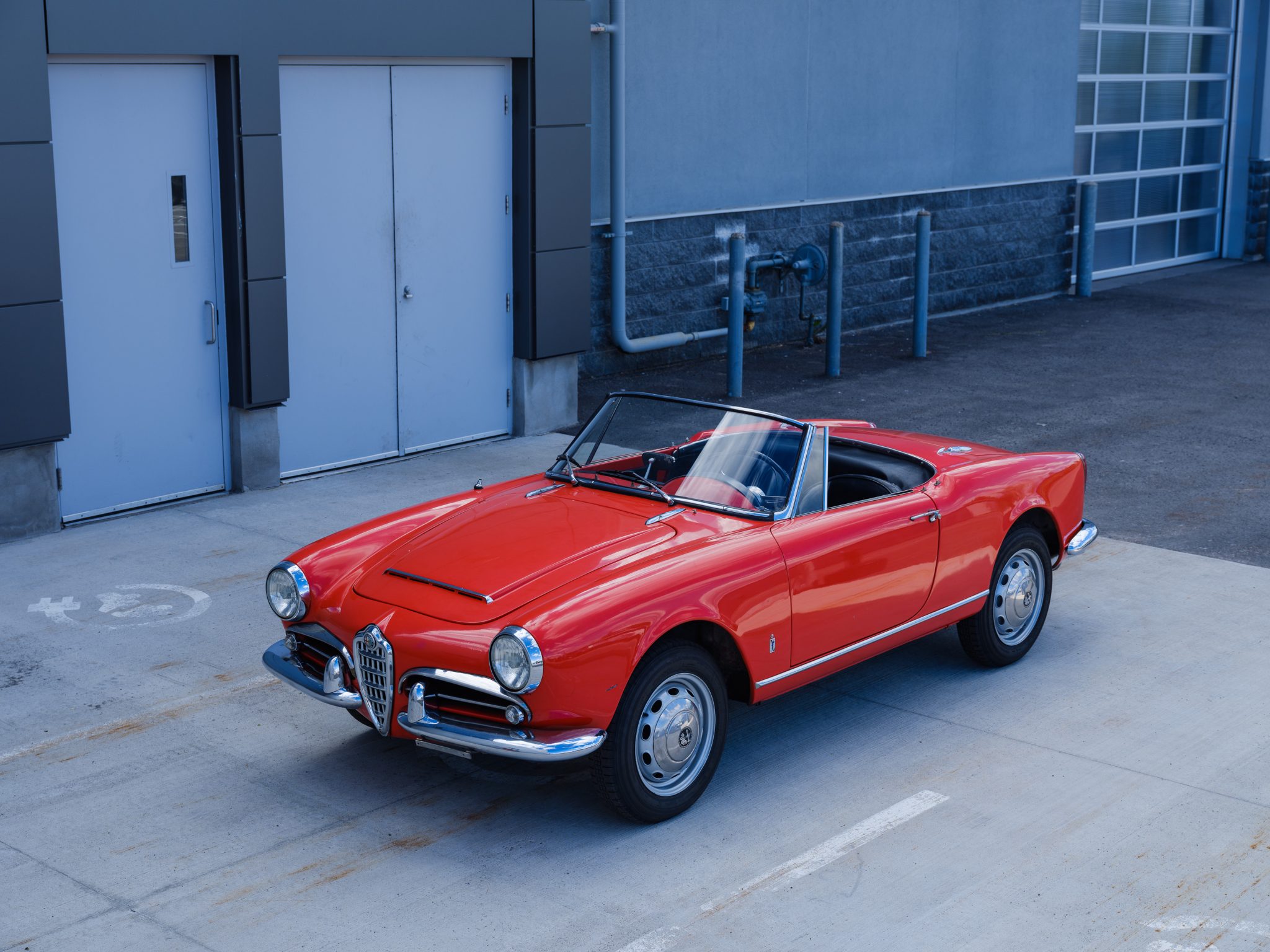 The 15″ steel wheels were reportedly refurbished and wear Alfa Romeo dog dish hubcaps as well as period-style Michelin X tubular tires installed in summer 2020. The brake master cylinder was re-sleeved, and the front calipers were rebuilt with replacement pistons. Replacement flexible brake lines have been installed.