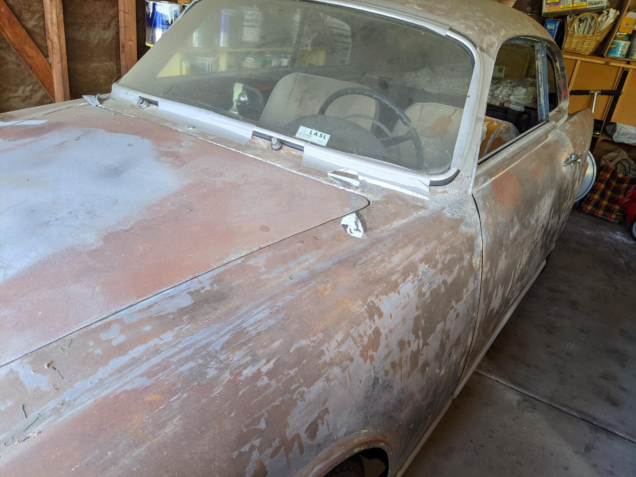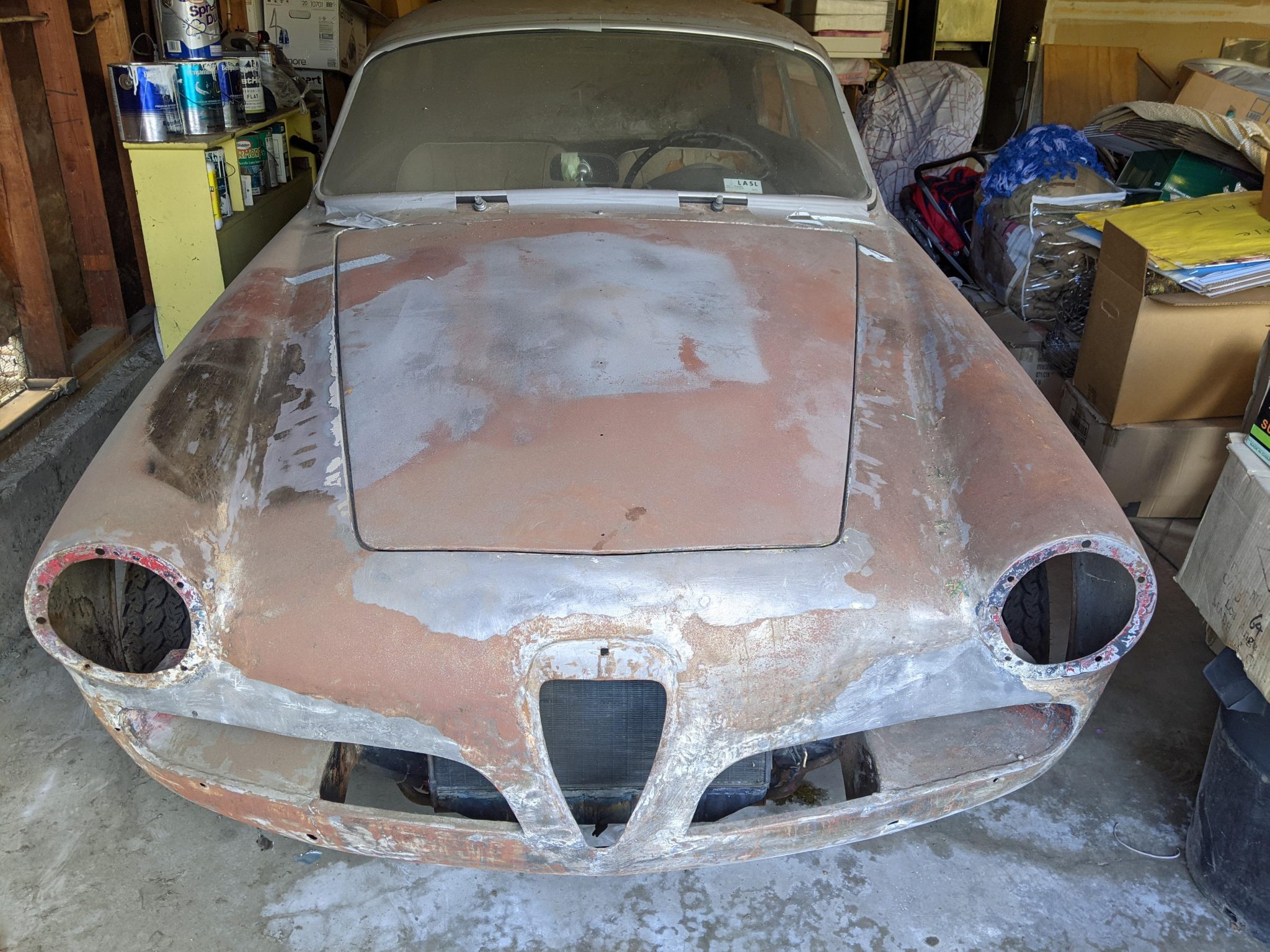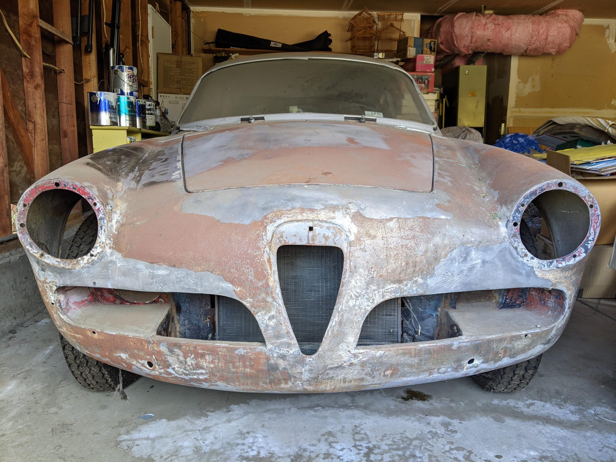 Fergat and Borrani wheels have been refinished and are fitted with 15″ Vredestein tires said to have 2008 production codes. The seller states that the rear axles and hubs were refurbished.