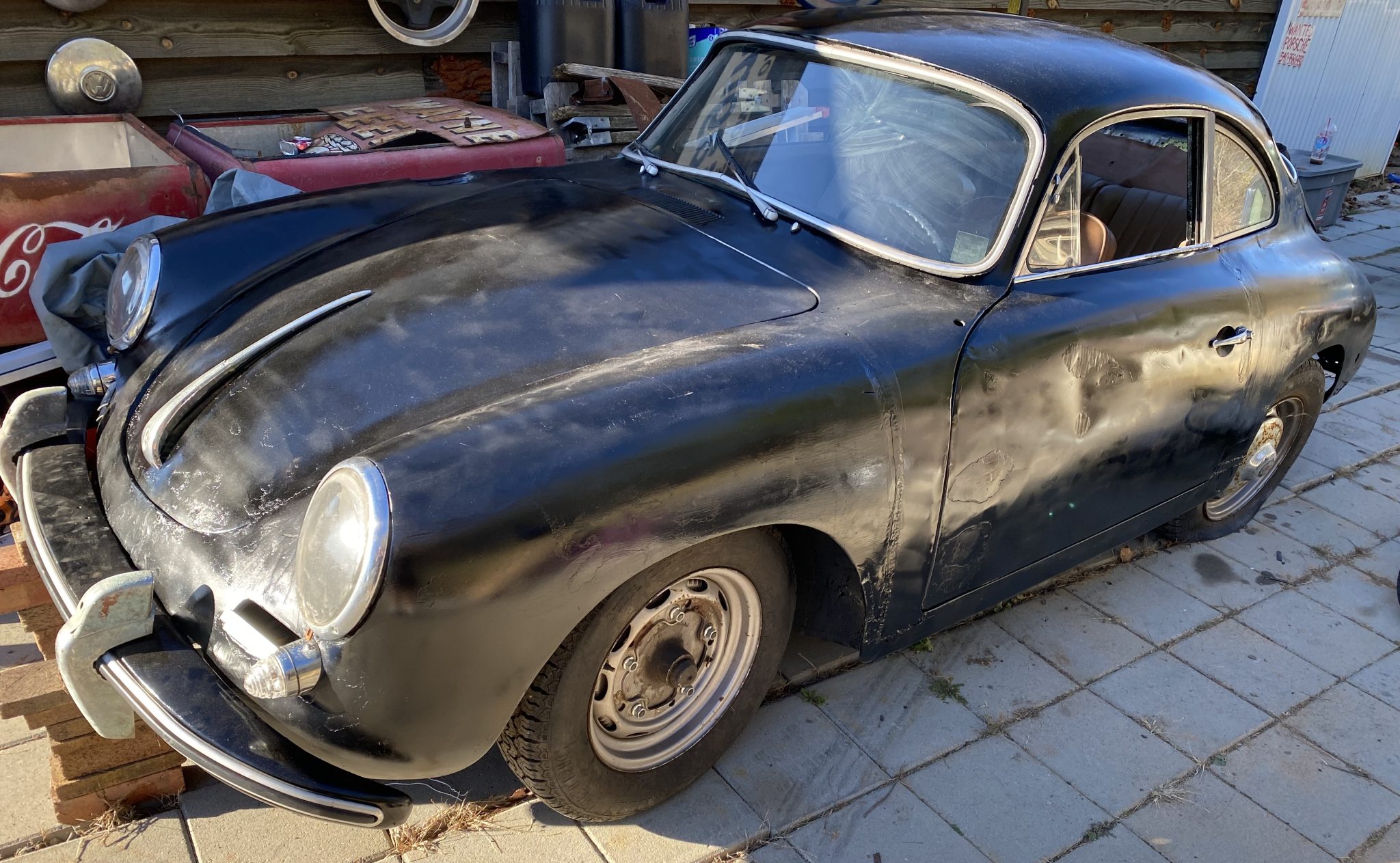 Three of the four 15″ steel wheels wear Porsche hubcaps. The seller notes that the car rolls and steers, but the brakes are inoperable and the tires need to be replaced. Shocks are included in the sale but require installation.