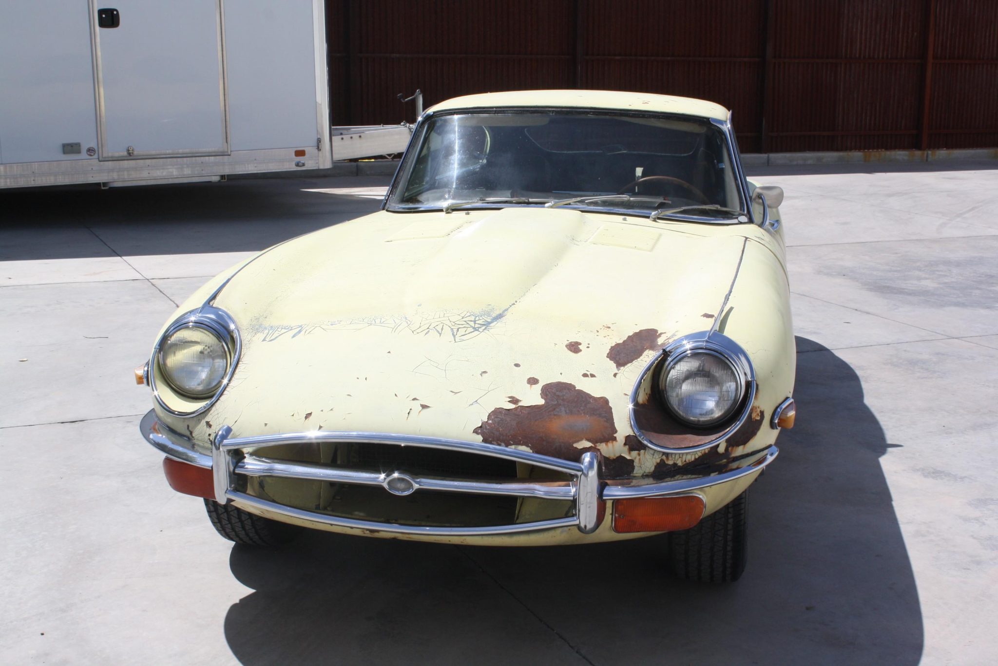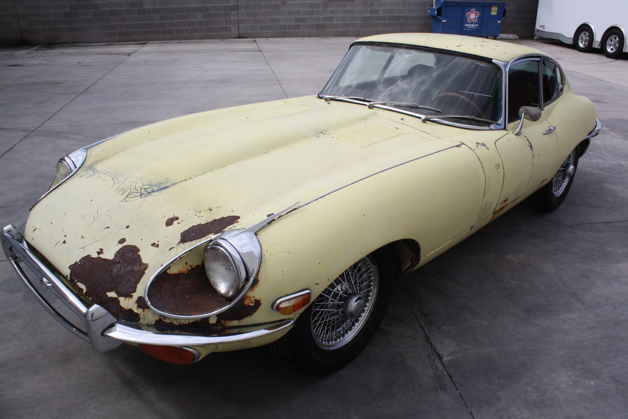 Polished knock-off wire wheels are mounted with older Michelin tires that show signs of cracking in the sidewalls. A full-size spare is found in the rear storage area. Braking is through four-wheel discs with inboard-mounted rears.