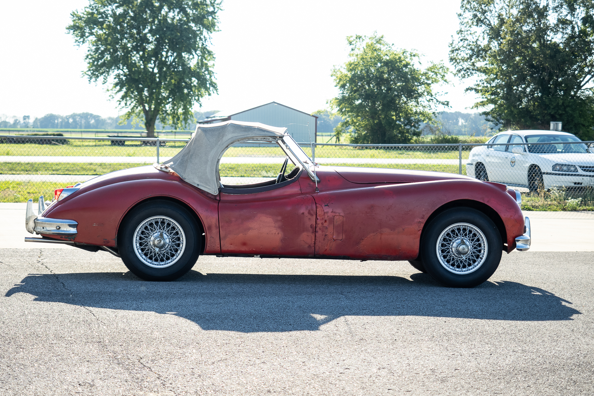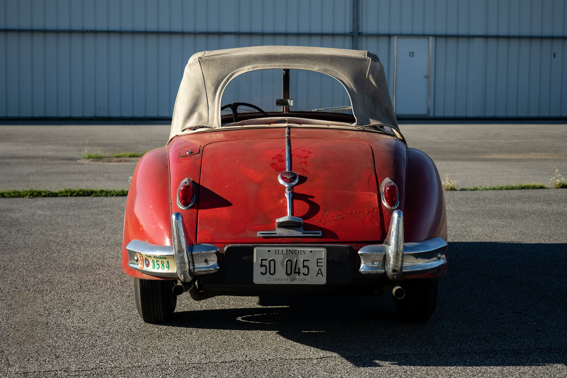 Silver-finished 16″ knock-off wire wheels are mounted with Coker Classic tires. Service completed since 2017 is said to include the replacement of brake components.