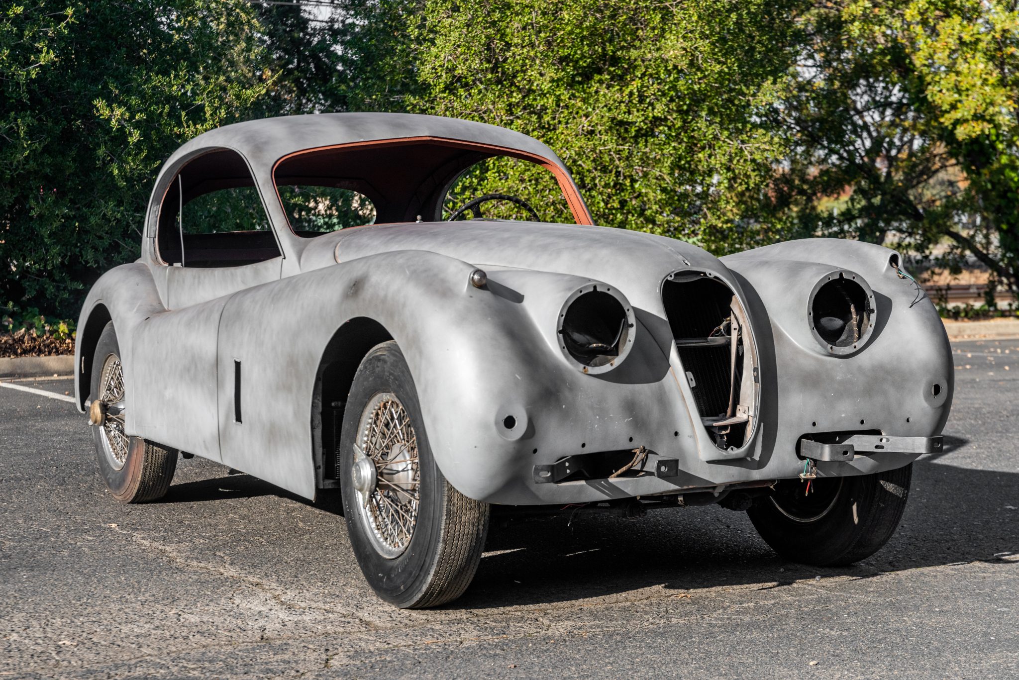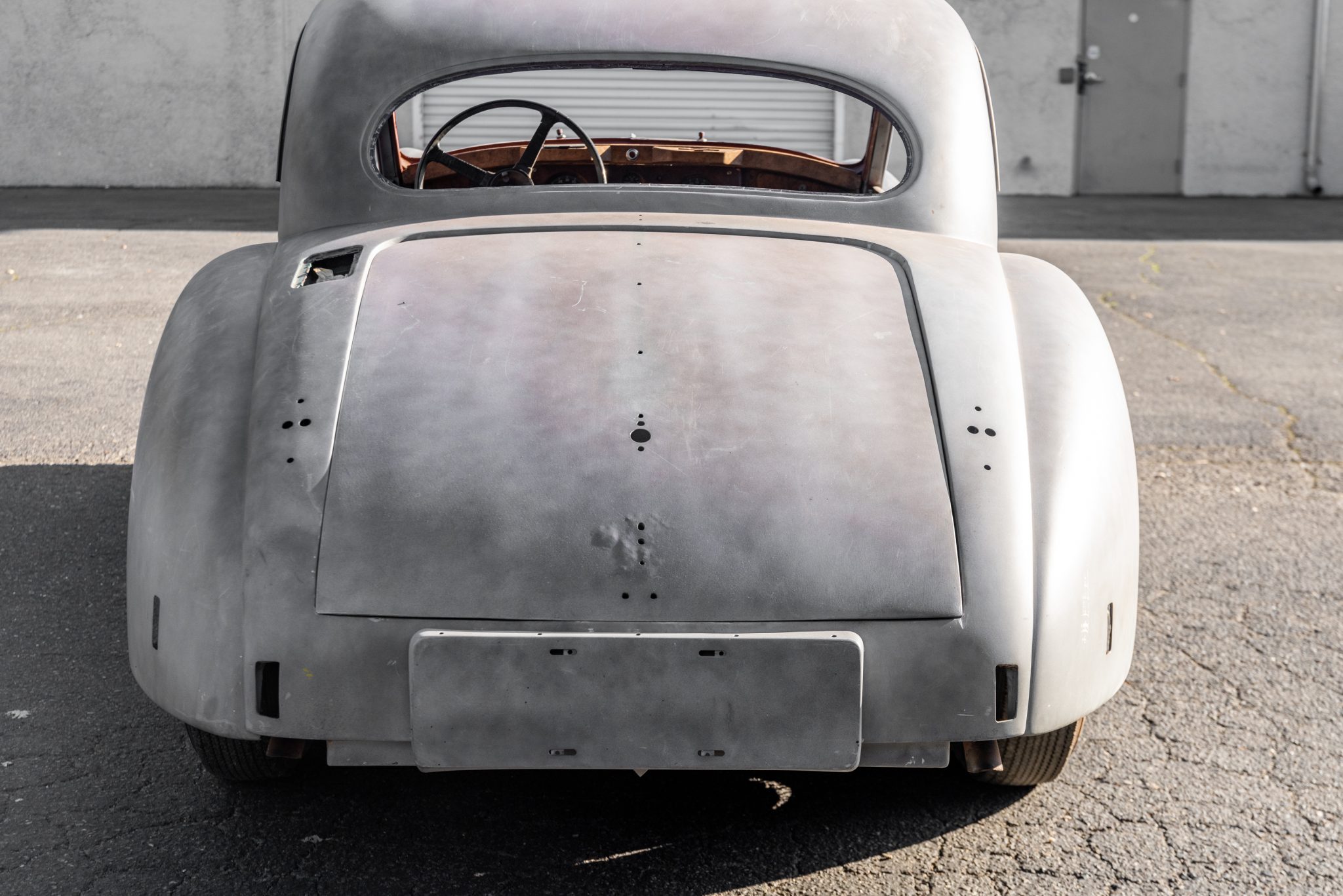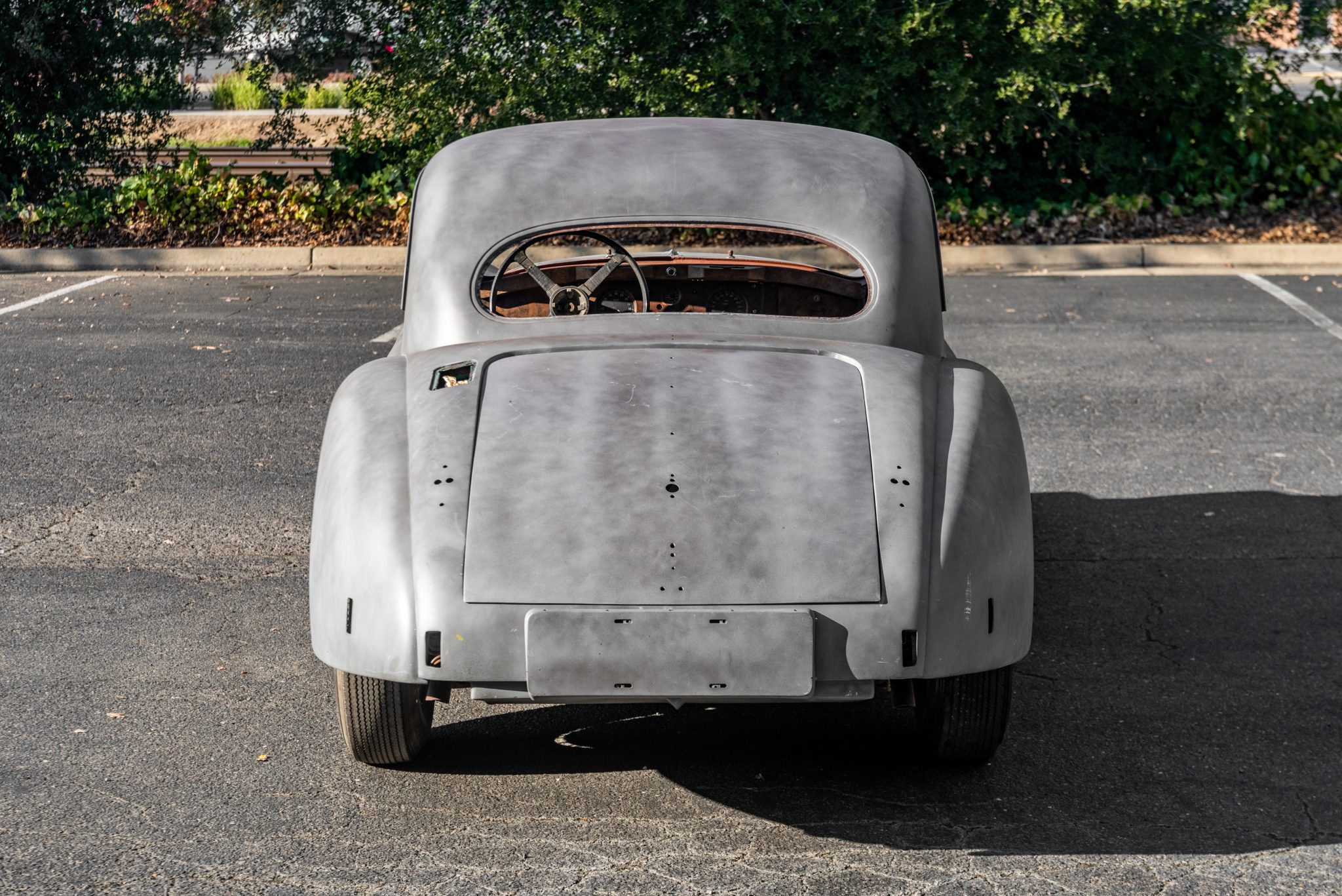 Silver-painted 16″ knock-off wire wheels wear two-ear spinners and older Dunlop tires. The car is equipped with drum brakes at all four wheels.