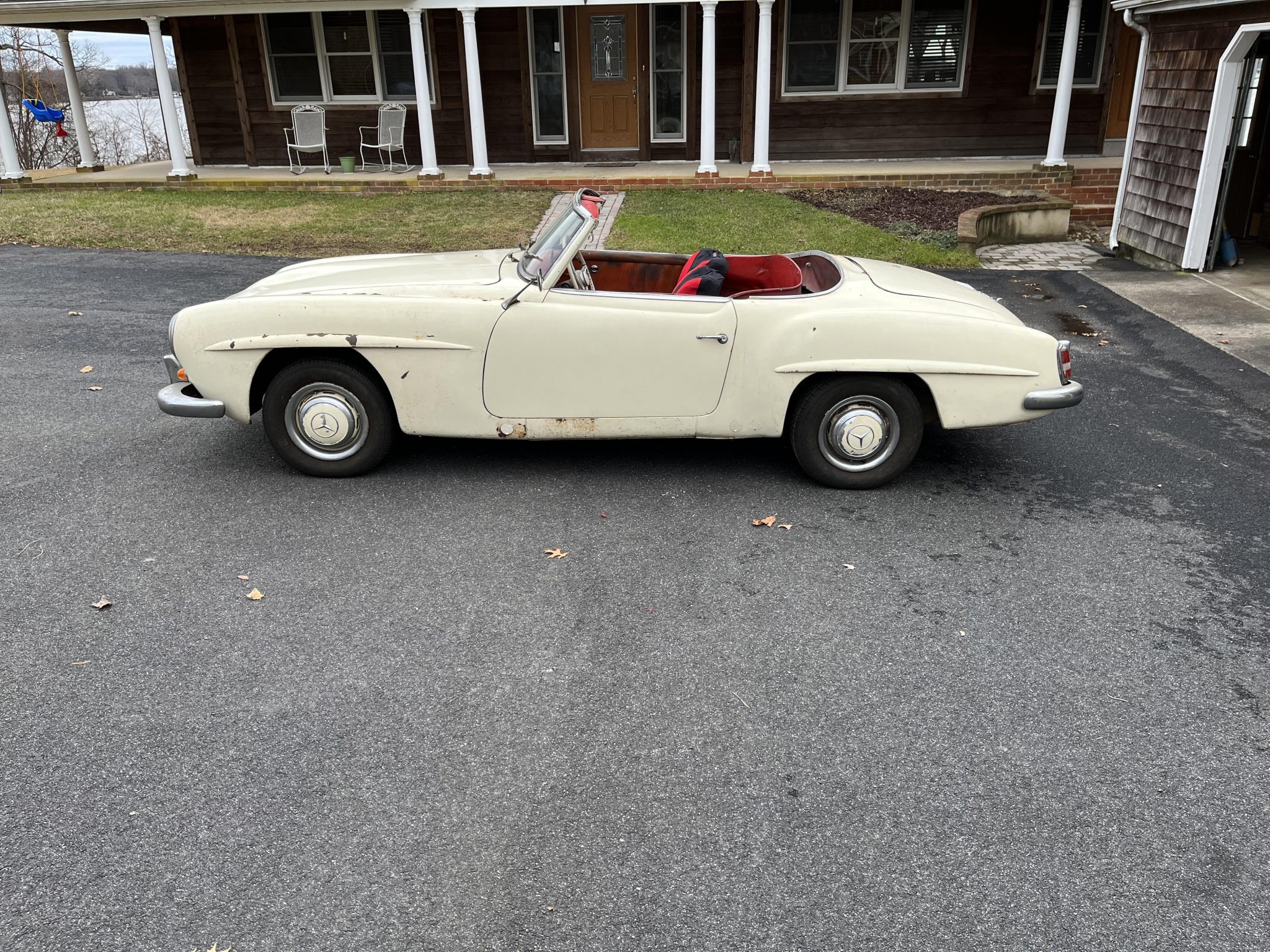 The 13″ wheels wear trim rings and painted hubcaps, and they are said to be mounted with Cooper tires. The car is equipped with a double-wishbone front suspension, rear swing axles with coil springs, and power-assisted drum brakes. Invoices in the gallery below document replacement brake and suspension components purchased during the last decade.