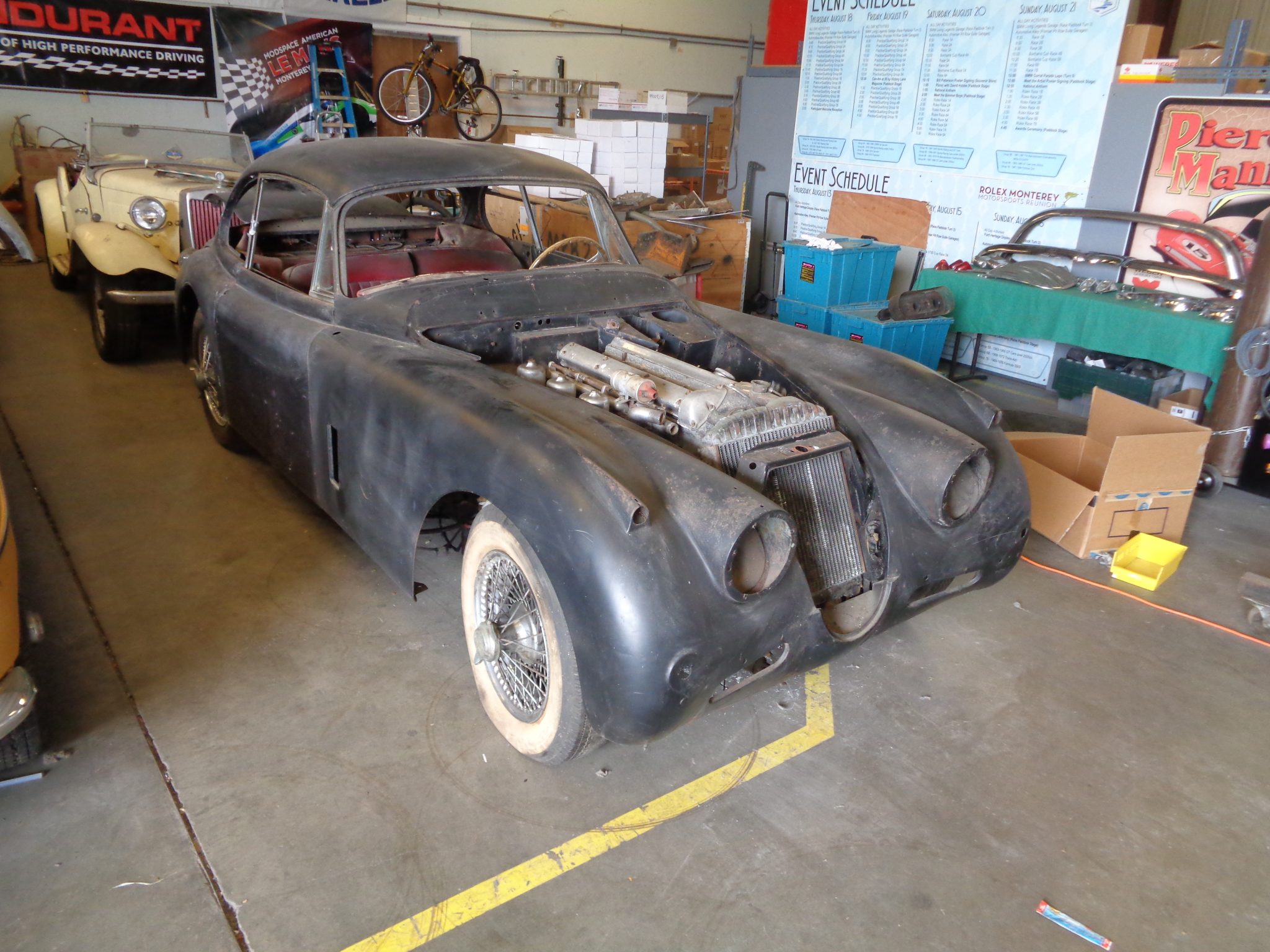 The knock-off wire wheels wear two-ear spinners and mixed tires. The car is equipped with disc brakes at each corner.