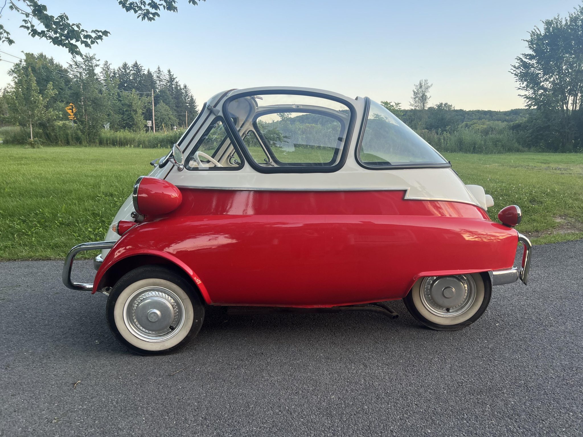 Steel 10″ wheels are mounted with 4.80-10 BFGoodrich Silvertown tires. A hubcap is missing. The seller reports that brake and suspension components were replaced or rebuilt under current ownership and that the braking system requires service.