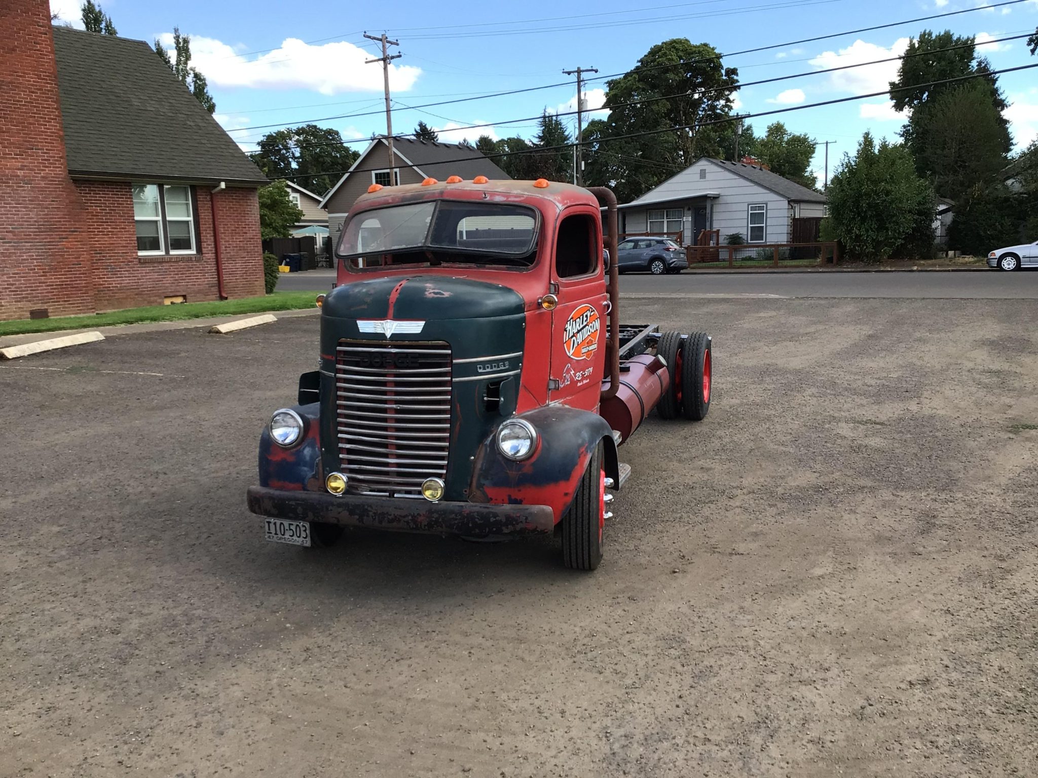 Red-finished 19.5″ steel wheels wear Milestar 225/70 front and Michelin X 8R-19.5 rear tires. Stopping power is from disc brakes, and a hydraulic parking brake has reportedly been fitted. The replacement frame was installed under prior ownership and is said to have been sourced from an Isuzu truck. The truck rides on leaf springs, and anti-sway bars are fitted front and rear. Overall dimensions measure approximately 17′ long, 7′ wide, and 7.5′ tall with a wheelbase of 12.5′. The power steering pump is missing, and the seller states that all six tires are in need of balancing.