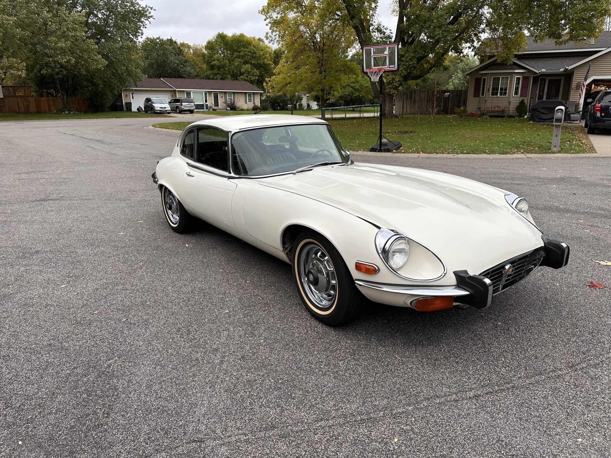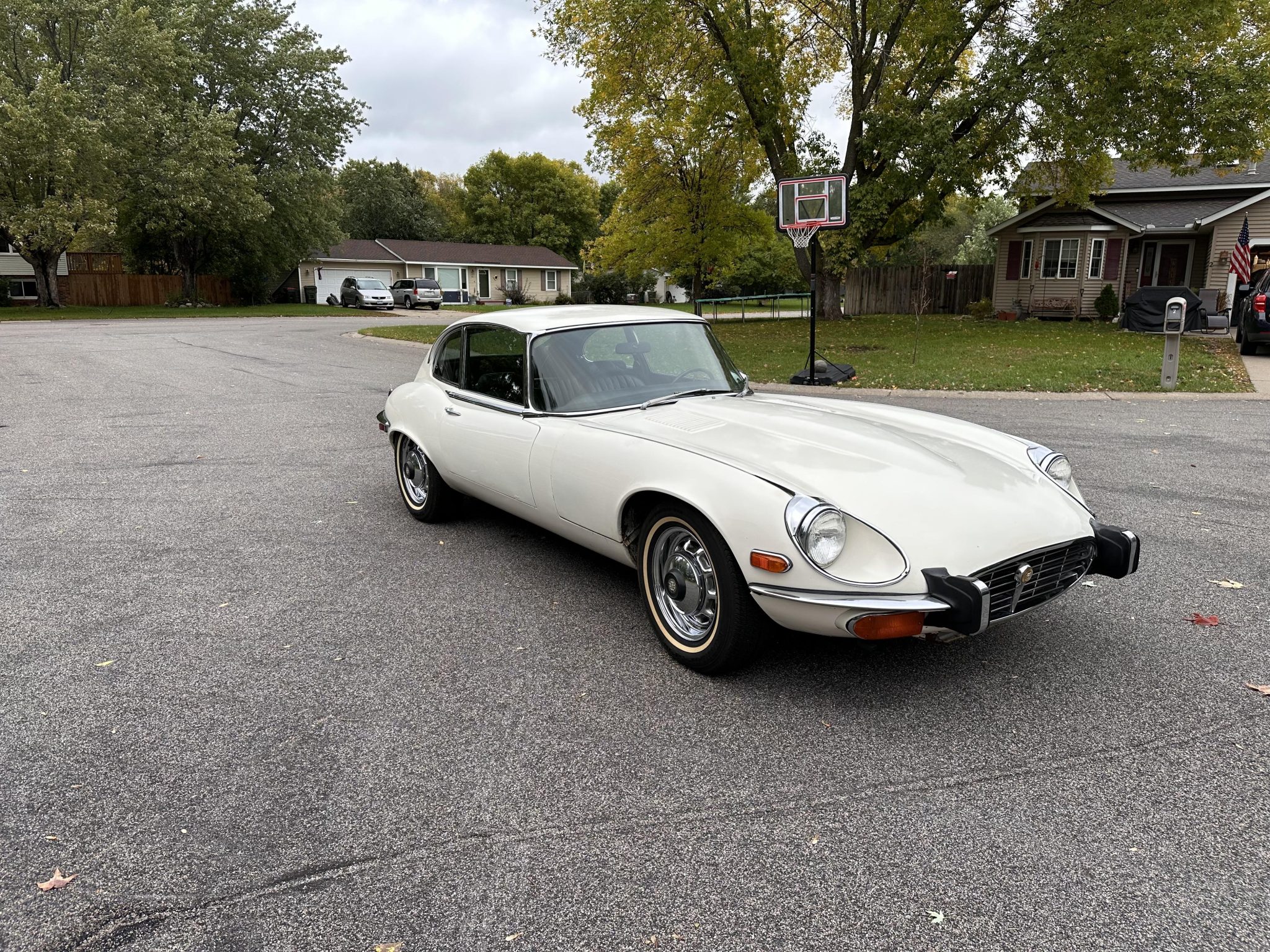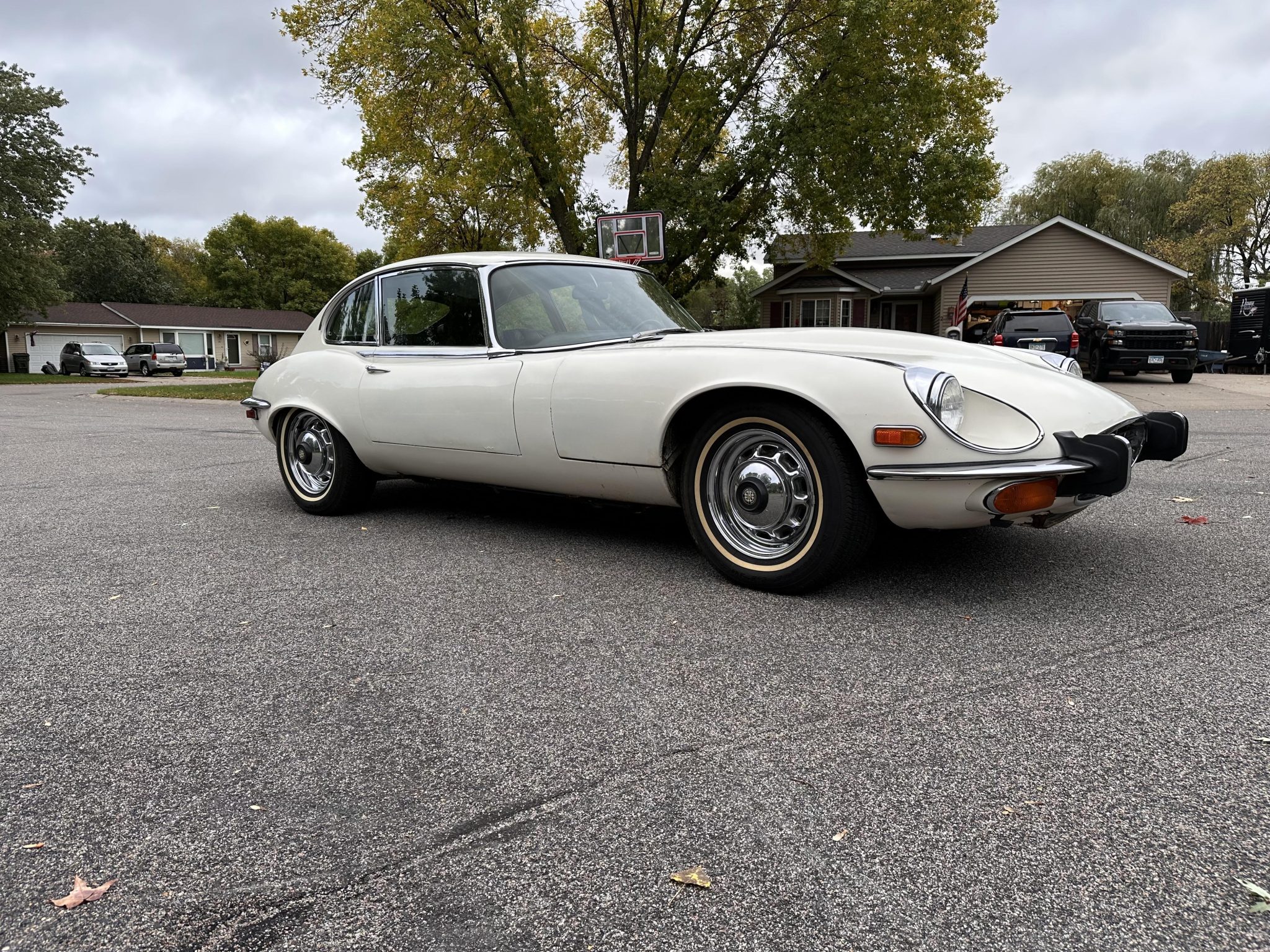 Steel 15″ wheels wear polished covers and are mounted with 215/70 Dunlop SP40 thin whitewall tires. The Series III E-Type was factory equipped with power steering, and stopping power is provided by four-wheel disc brakes with inboard-mounted rear rotors.