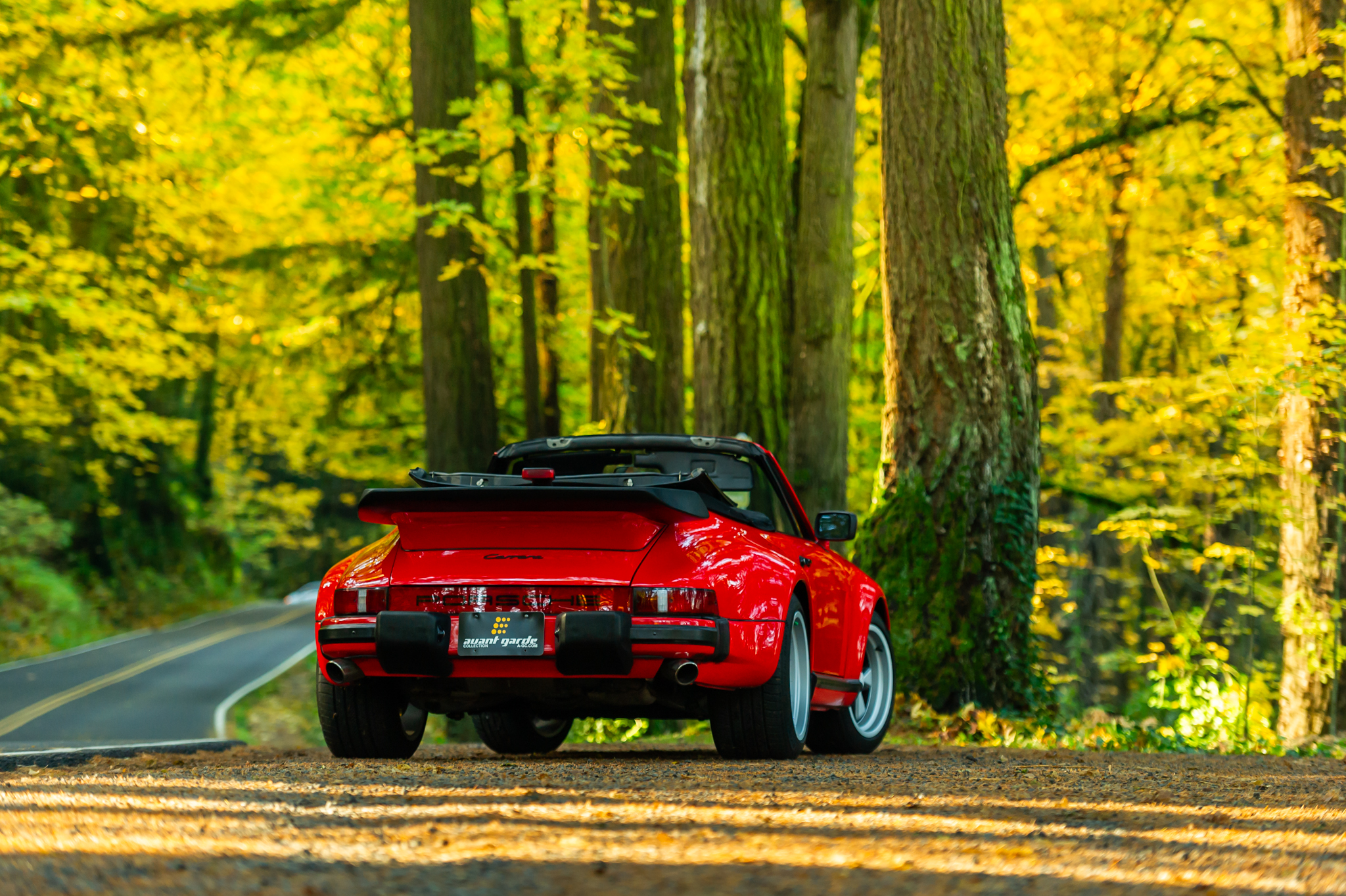 Linea Corse Fox 17″ Fuchs-style wheels were mounted in 2023 with 235/45 front and 275/40 rear Michelin Pilot Sport All Season 4 tires that have 2022 production-date codes. Braking is provided by red-finished Porsche Boxster calipers and replacement rotors, and the suspension is fitted with Bilstein shocks and a front strut-tower brace.