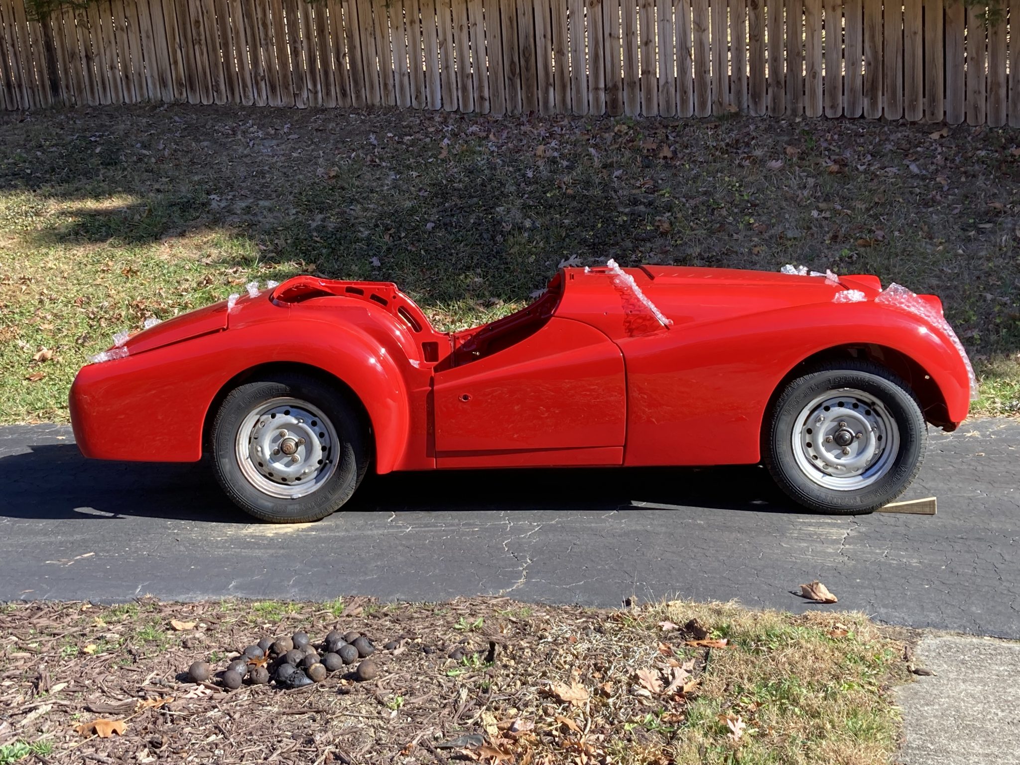 Silver-finished 15″ steel wheels are mounted with 165-series Vredestein Sprint S80 tires. The car retains its suspension and steering components and is equipped with inoperative front disc and rear drum brakes. The seller notes replacement steering, suspension, and brake components were installed.