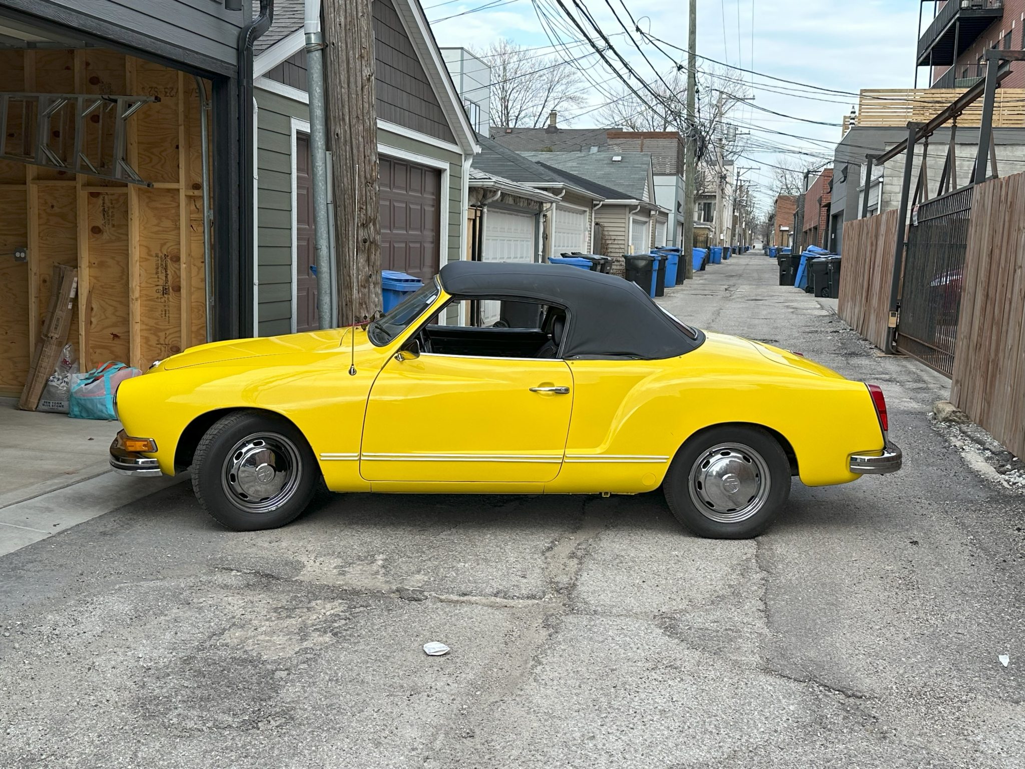 Chrome-finished 15″ steel wheels with matching hubcaps are mounted with 165-series Metric Steel Belted Radial tires, and a covered spare is secured in the front compartment. Braking is provided by front discs and rear drums, which are said to have been replaced in July 2022.