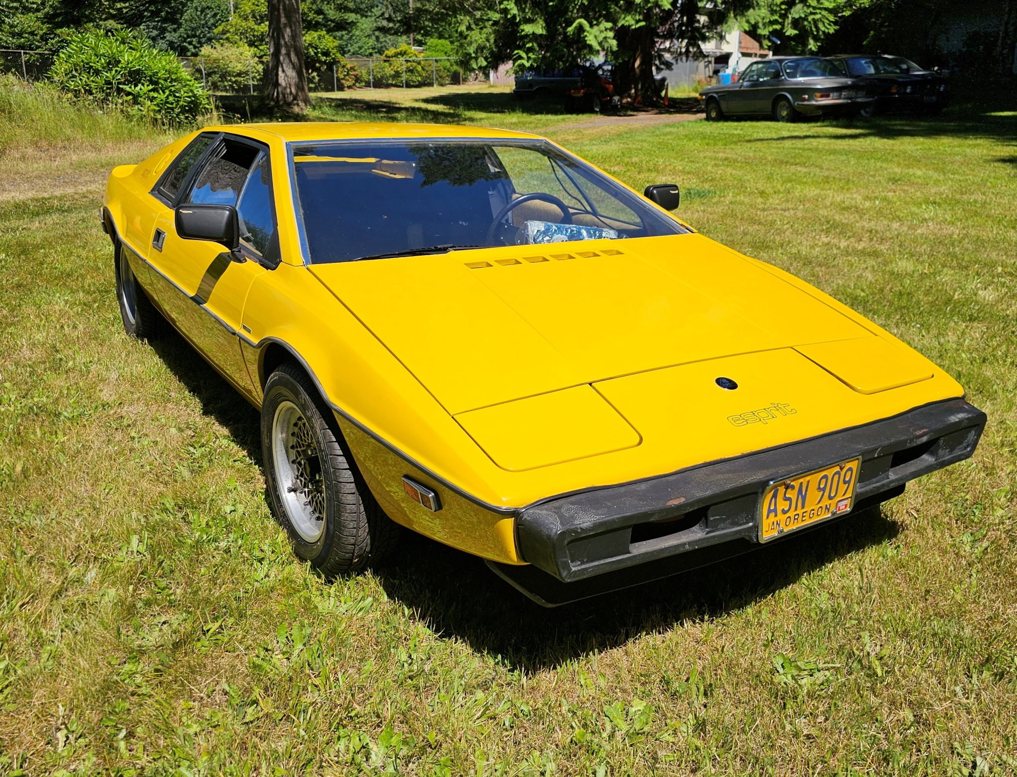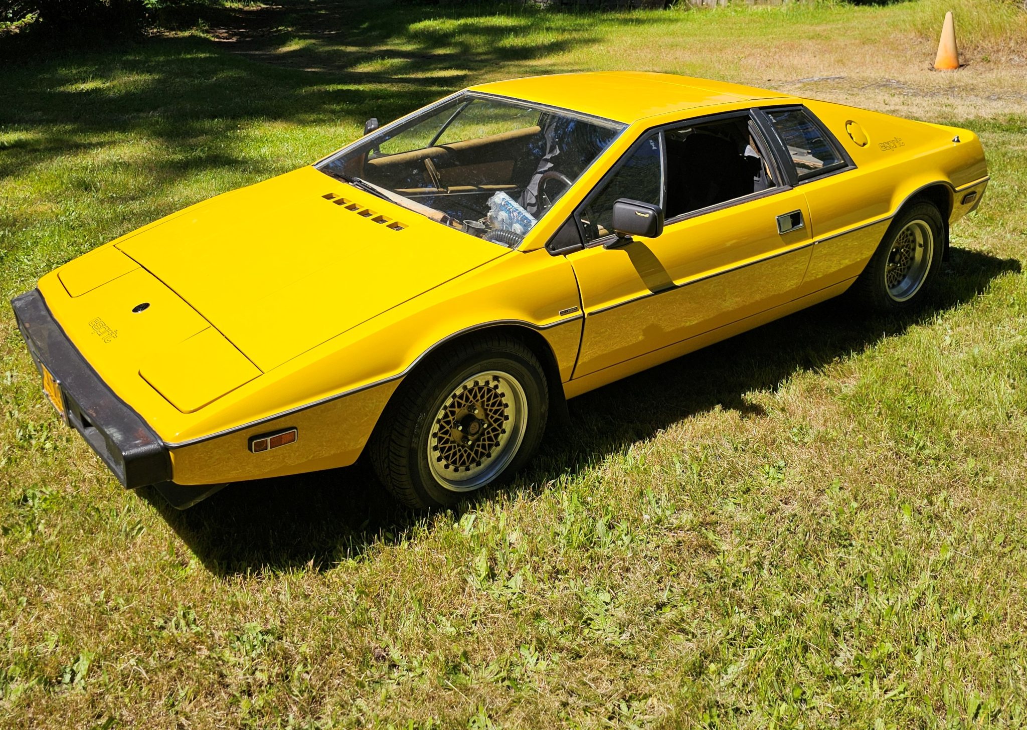 The staggered-width 14″ Compomotive modular wheels feature gold-finished centers and are mounted with 205/60 Sumitomo front and 225/60 Yokohama rear tires. The suspension is comprised of upper A-arms and lower lateral links up front paired with trailing arms and lateral links out back, while braking is handled by power-assisted four-wheel discs with inboard-mounted rear rotors. The seller reports that the master cylinder and brake calipers have been replaced or rebuilt.