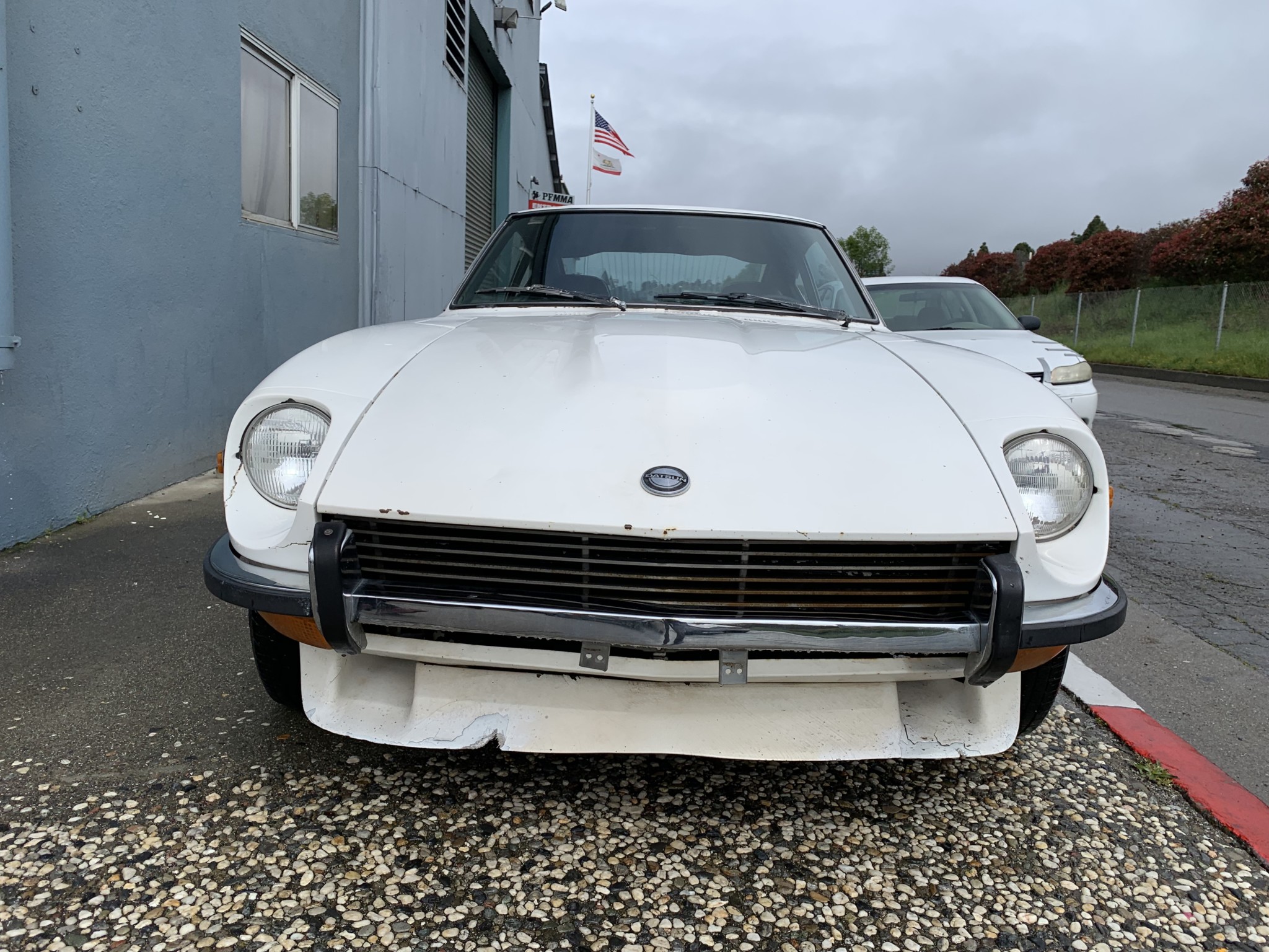 A BRE-style front air dam is fitted, and the car is equipped with slotted aluminum wheels wearing mismatched older tires. Photos of the factory badging and trim are provided in the gallery below.