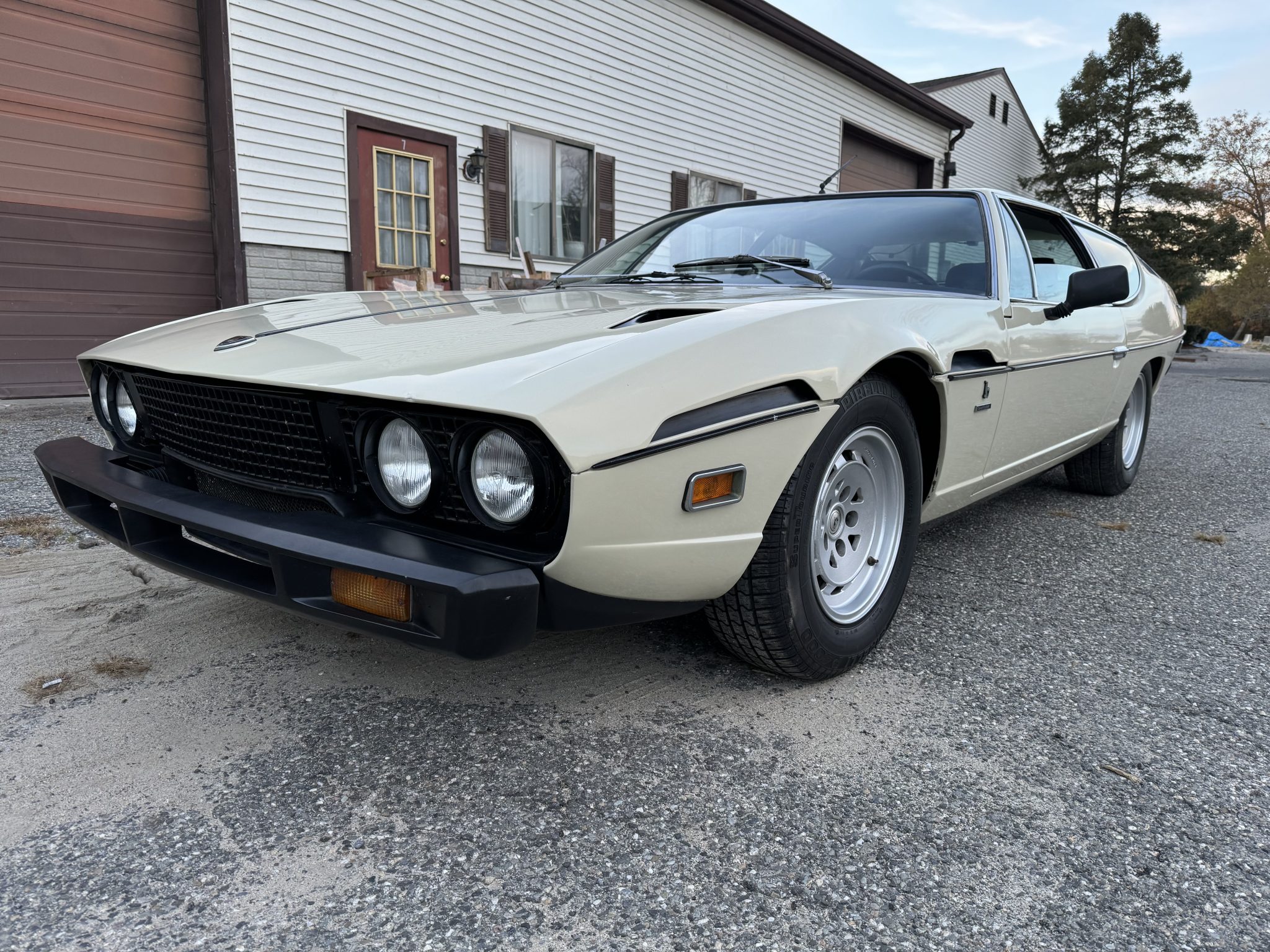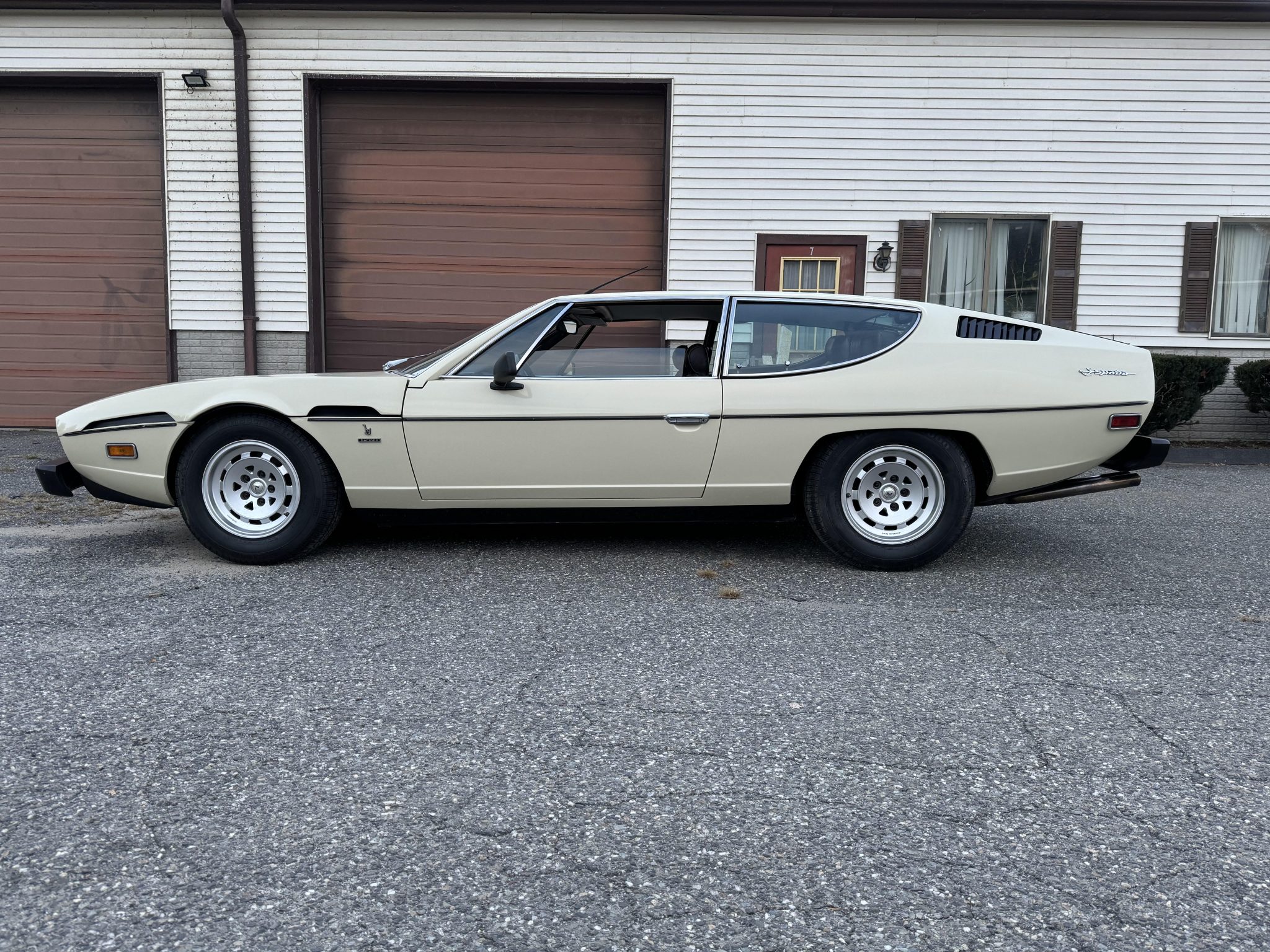 The 15×7″ Campagnolo magnesium alloy wheels feature Lamborghini-branded center caps and are mounted with 215/70 Pirelli P4000 tires. The car is equipped with power-assisted steering and rides on four-wheel independent suspension that was overhauled in 2017 and features double wishbones, coil springs, hydraulic shock absorbers, and anti-roll bars. The braking system is comprised of Girling three-piston calipers over ventilated discs at all four corners.