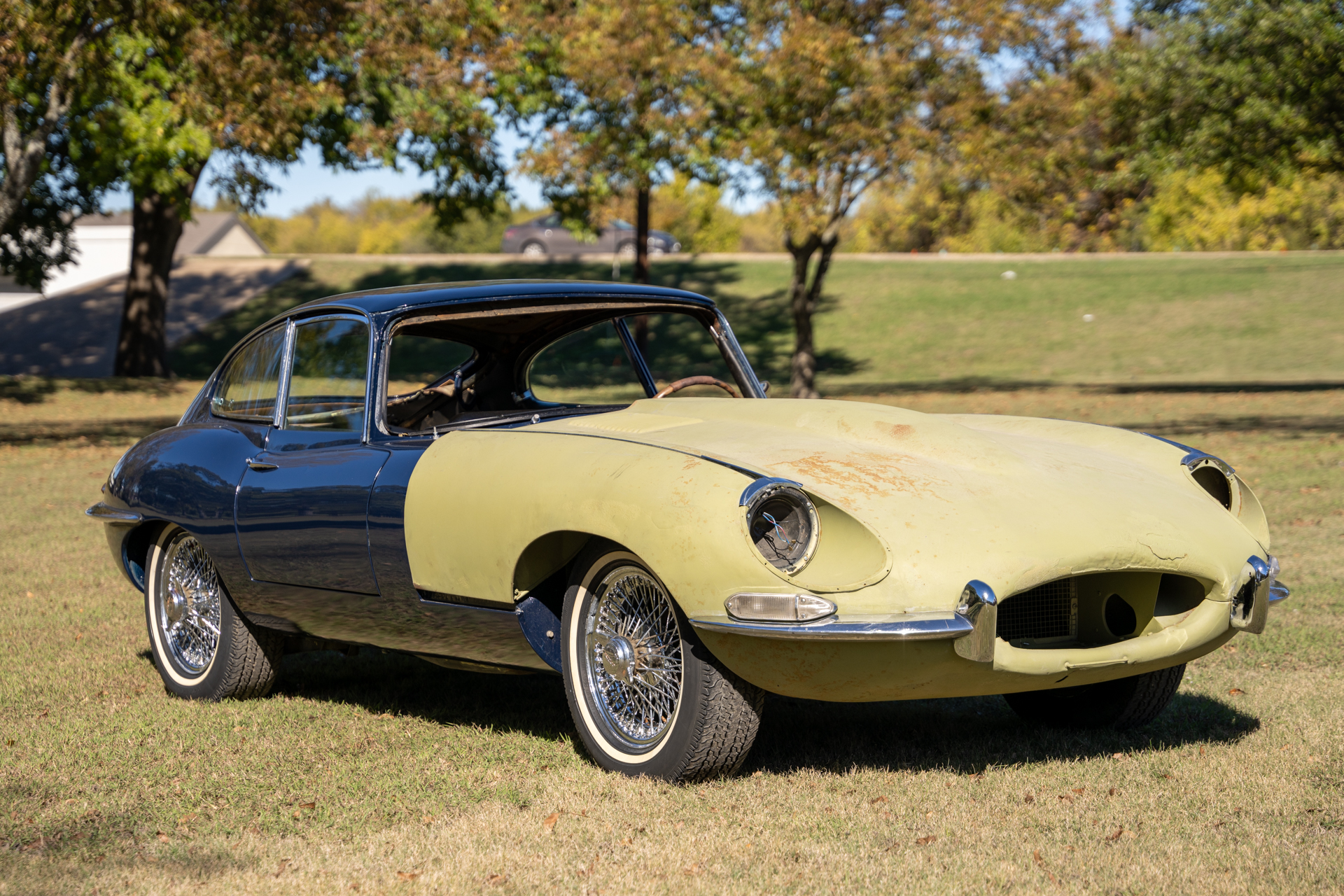 The 15″ wire wheels are secured by two-eared knock-offs and are mounted with 205/70 Michelin tires. The car is equipped with four-wheel disc brakes with inboard-mounted rear rotors, though the seller notes that the system requires service prior to road use.