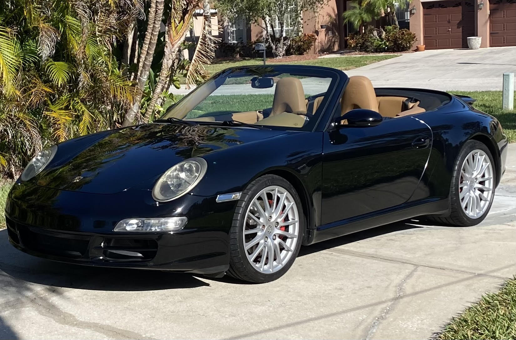 The 19″ Sport Design wheels are wrapped in Michelin Pilot Super Sport tires said to have been installed in 2021. Braking is handled by red-finished Porsche-branded calipers over cross-drilled rotors all around. The car is equipped with Porsche Active Suspension Management (PASM), Porsche Stability Management (PSM), an active brake differential (ABD), and Anti-Slip Regulation (ASR).
