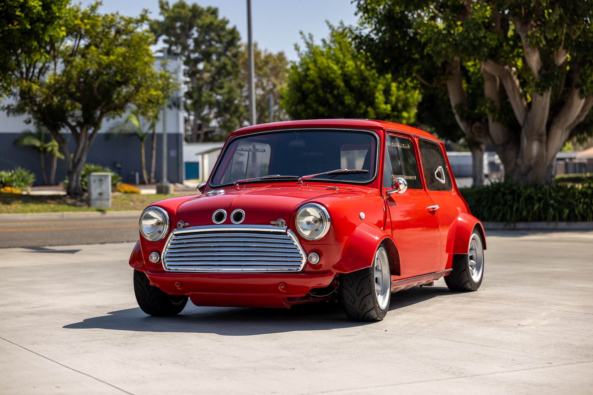 Compomotive ML 13″ wheels were mounted with 175/50 Yokohama Advan A048 tires in 2021. The car is equipped with servo-assisted four-wheel disc brakes, four-pot Wilwood front calipers, a hydraulic parking brake, Aeroquip hoses, Z-Cars adjustable rear radius arms, adjustable inboard coilovers, tubular wishbones, negative camber lower arms, rose-jointed tie bars, and an adjustable elevated rear radius arm. The brake master cylinder was replaced in 2021.