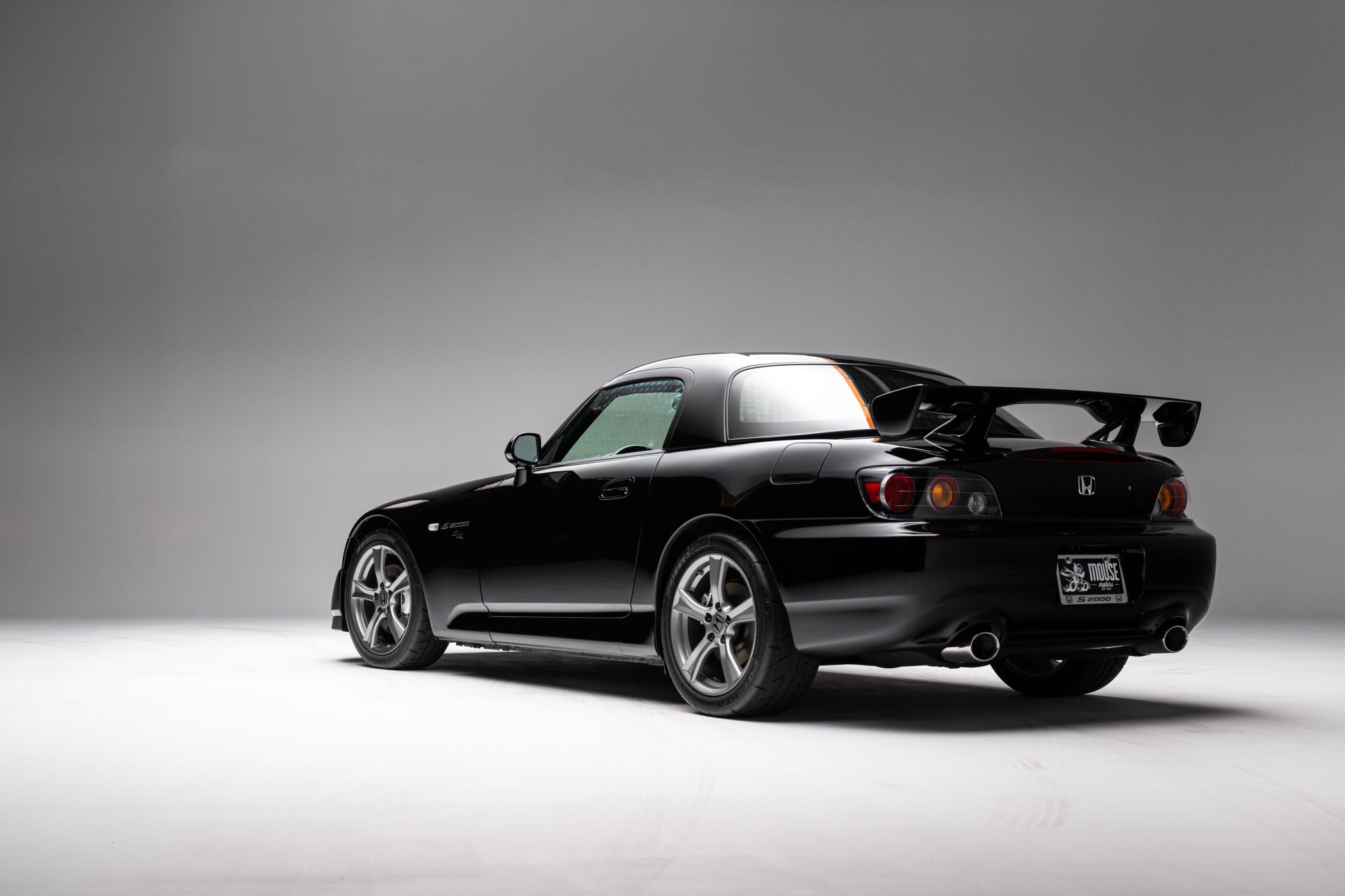 Factory 17″ five-spoke alloy wheels are mounted with 215/45 front and 255/40 rear Bridgestone Potenza RE-070R tires. The CR model features higher-rate springs, stiffer sway bars, and a quicker steering ratio compared to the standard AP2 S2000. Braking is handled by four-wheel discs with ABS, and the brake fluid was flushed in preparation for the sale.