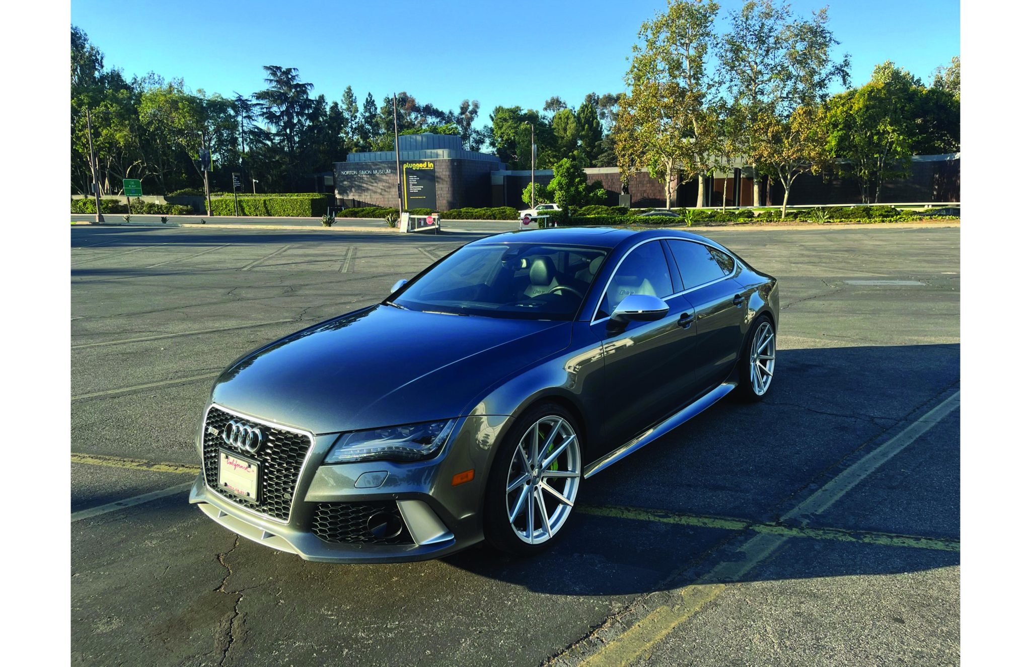 The 21″ TSW Bathurst wheels are mounted with 285/30 Michelin Pilot Super Sport tires. The car rides on an adaptive air suspension with RS-specific tuning, and stopping power is provided by four-wheel disc brakes with green-finished calipers over slotted wave-design rotors at each corner. The right front wheel bearing and wheel speed sensor were replaced in February 2021 and a brake fluid flush was performed in August 2022.
