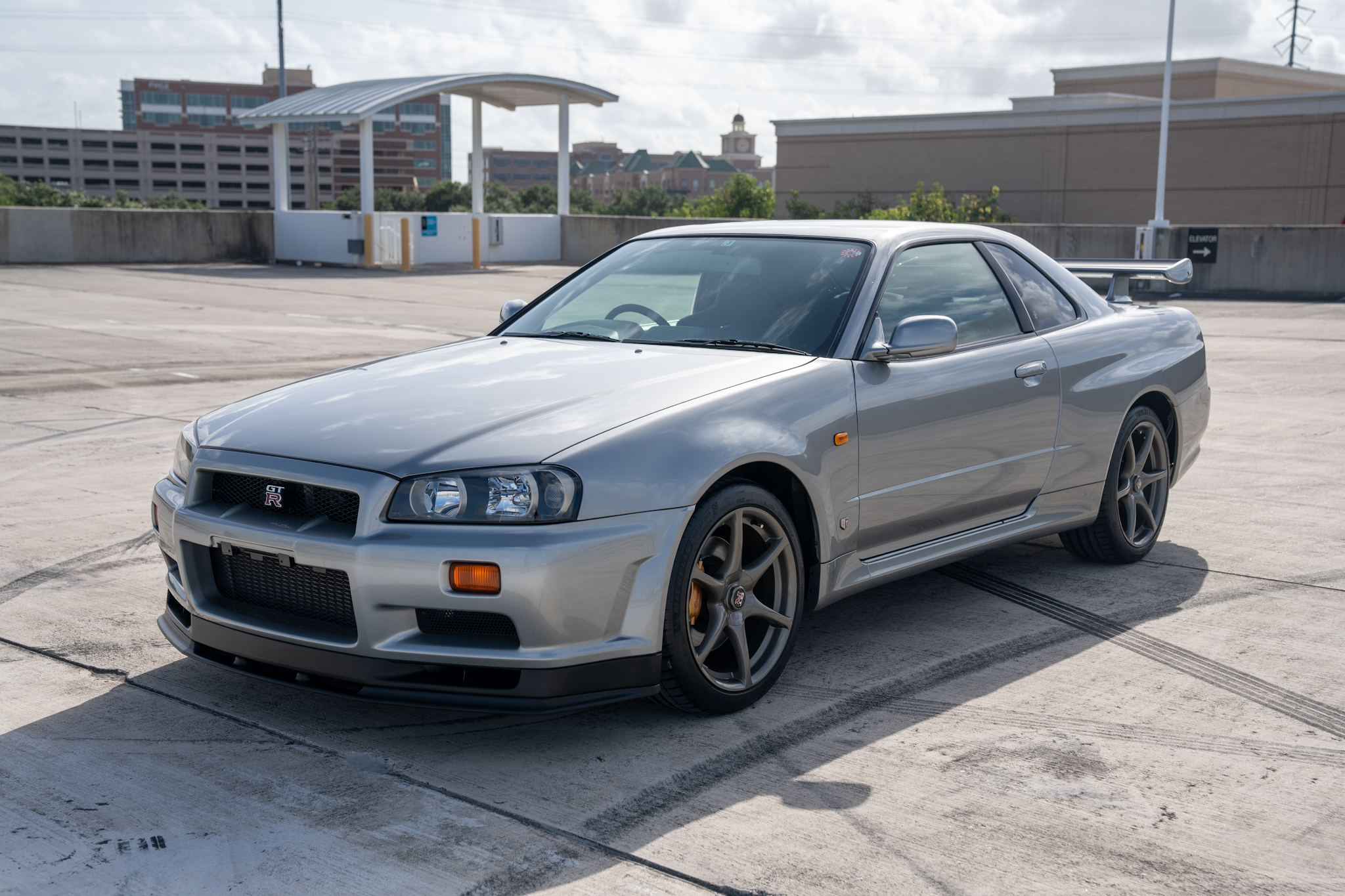 Factory 18″ six-spoke wheels were mounted with 245/40 Michelin Pilot Sport 4S tires that were installed in 2024. An electronically actuated Super HICAS rear-wheel-steering system was standard equipment, and stopping power is provided by gold-painted Brembo calipers over discs at all four corners.