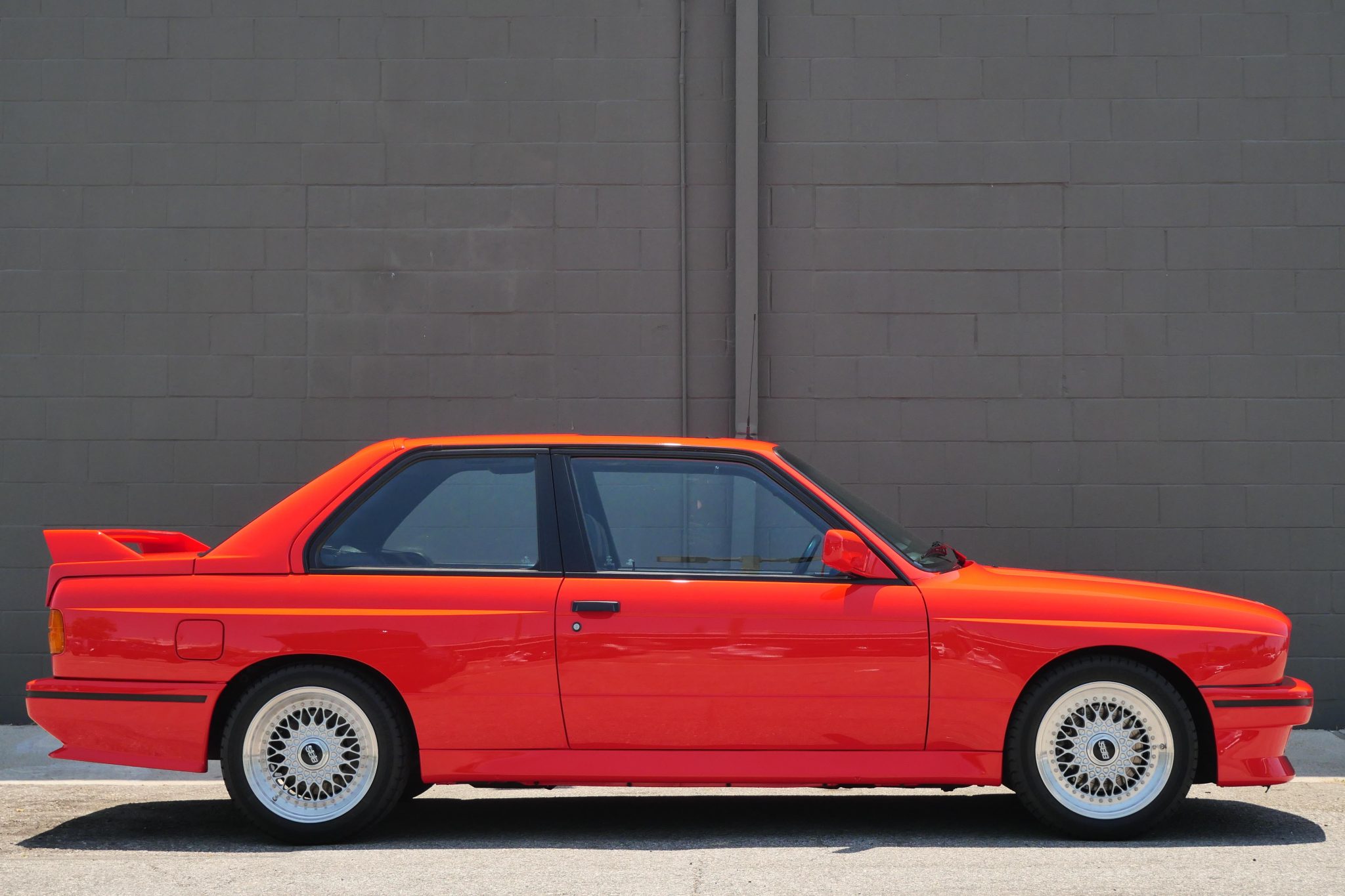 The 16″ multi-piece BBS wheels are mounted with Pirelli tires. The MacPherson strut/semi-trailing arm suspension was revised for the M3 with a thicker rear anti-roll bar as well as shorter and stiffer springs.