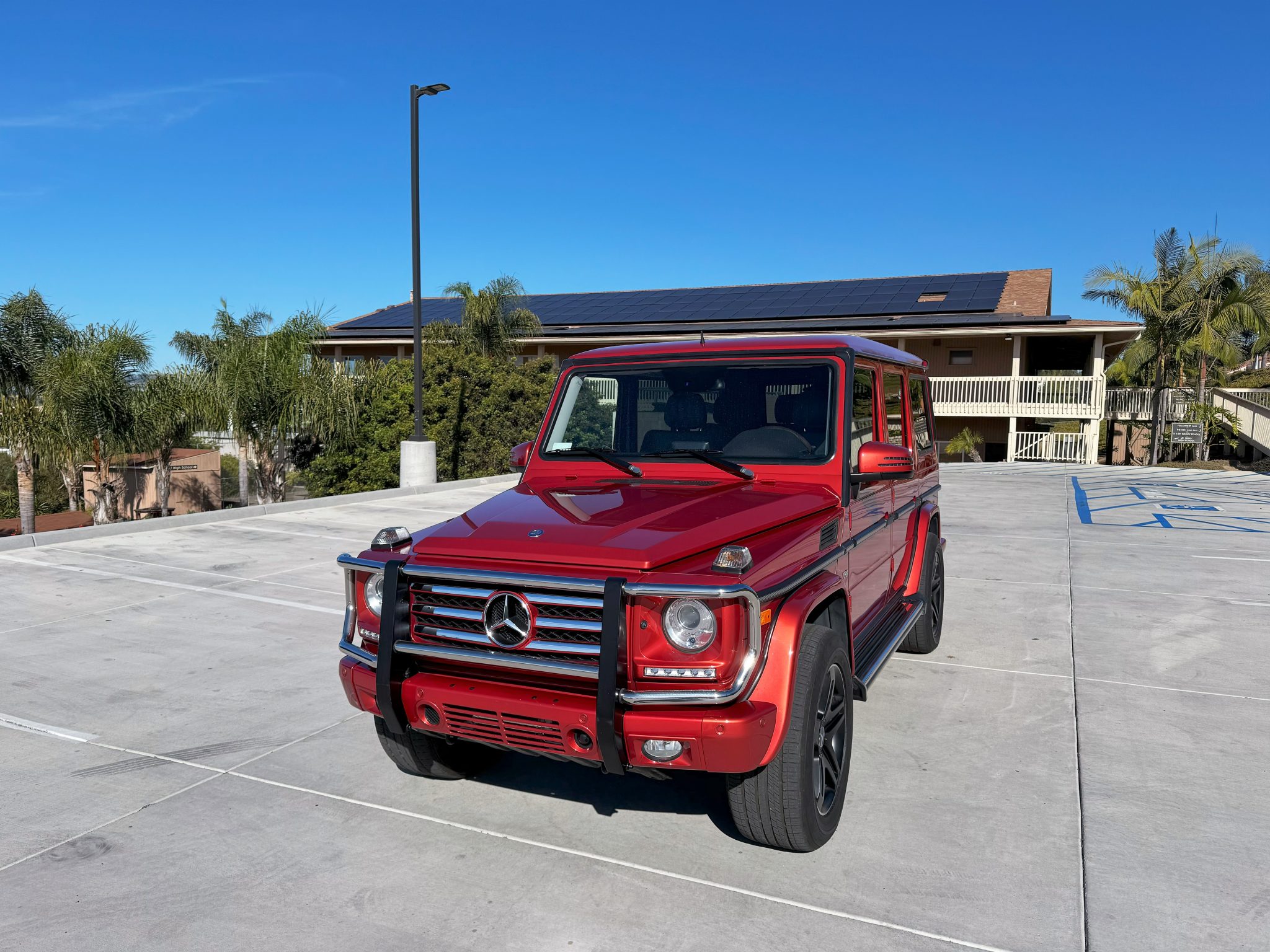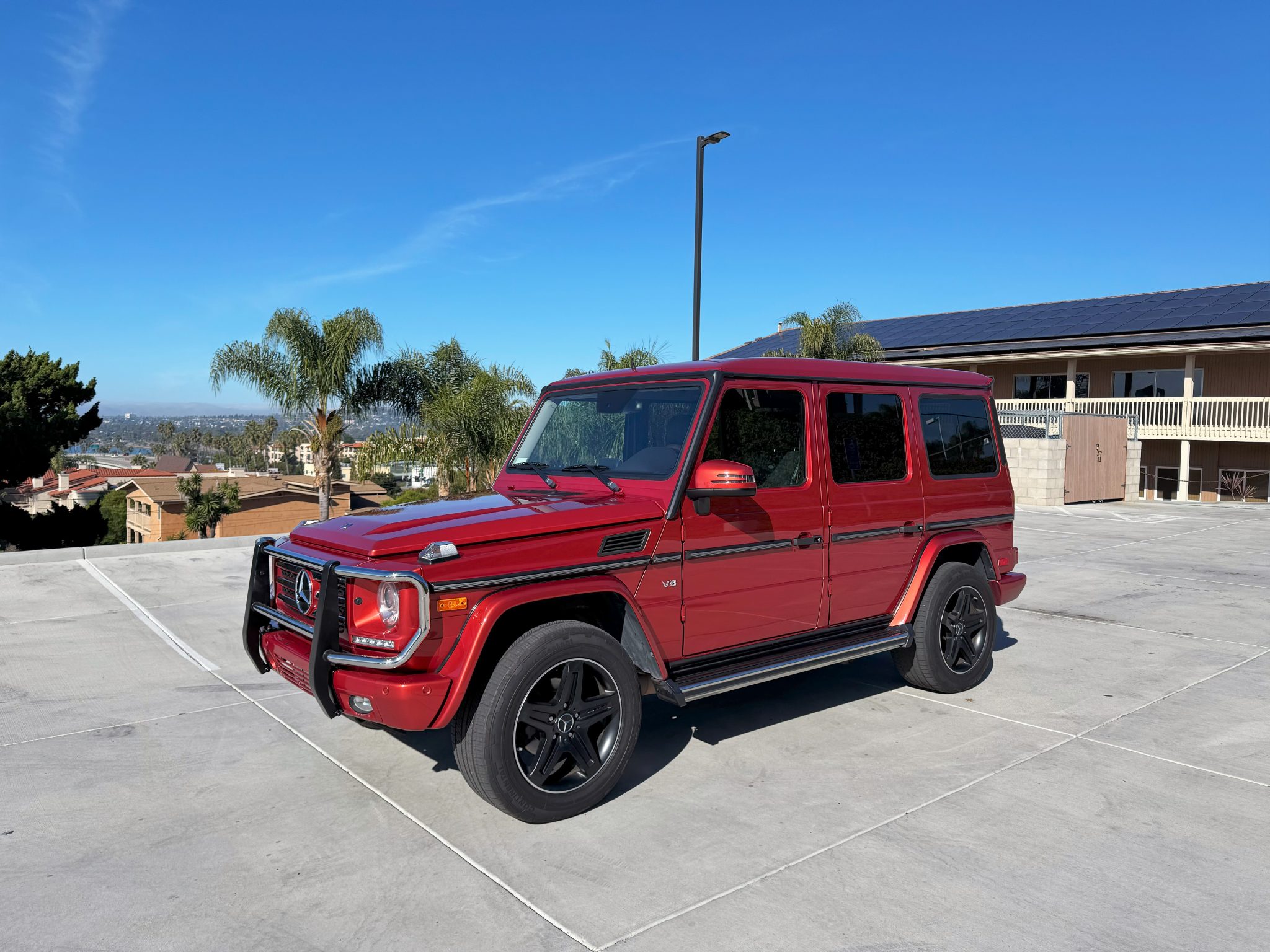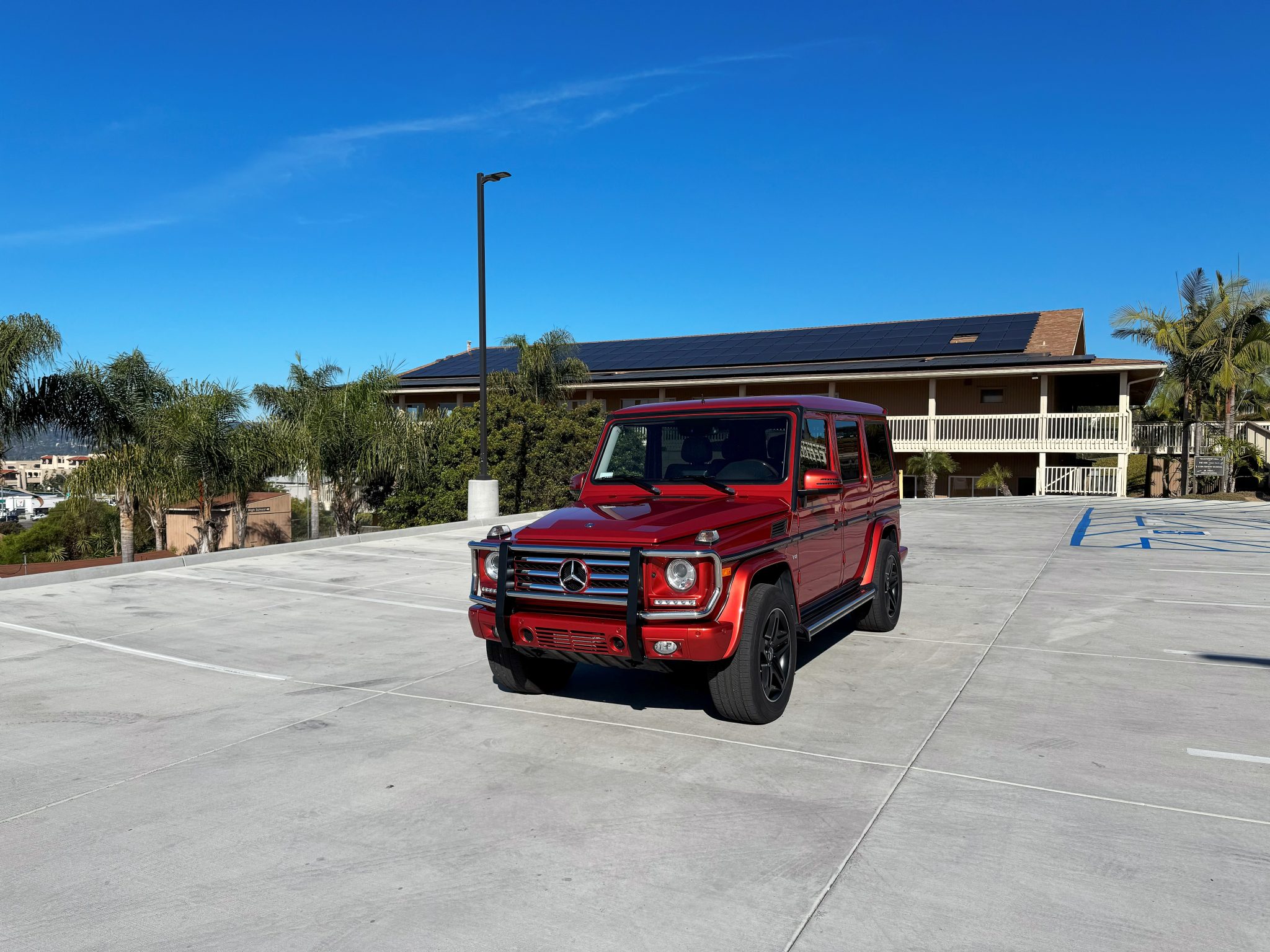 Black-finished 19″ AMG five-spoke alloy wheels are mounted with 275/55 Continental 4×4 Contact tires, and a spare tire carrier is mounted on the swing-out rear cargo door. The brake fluid was most recently flushed in August 2024.