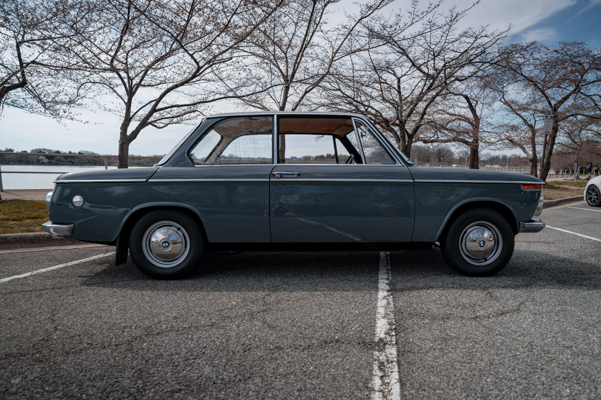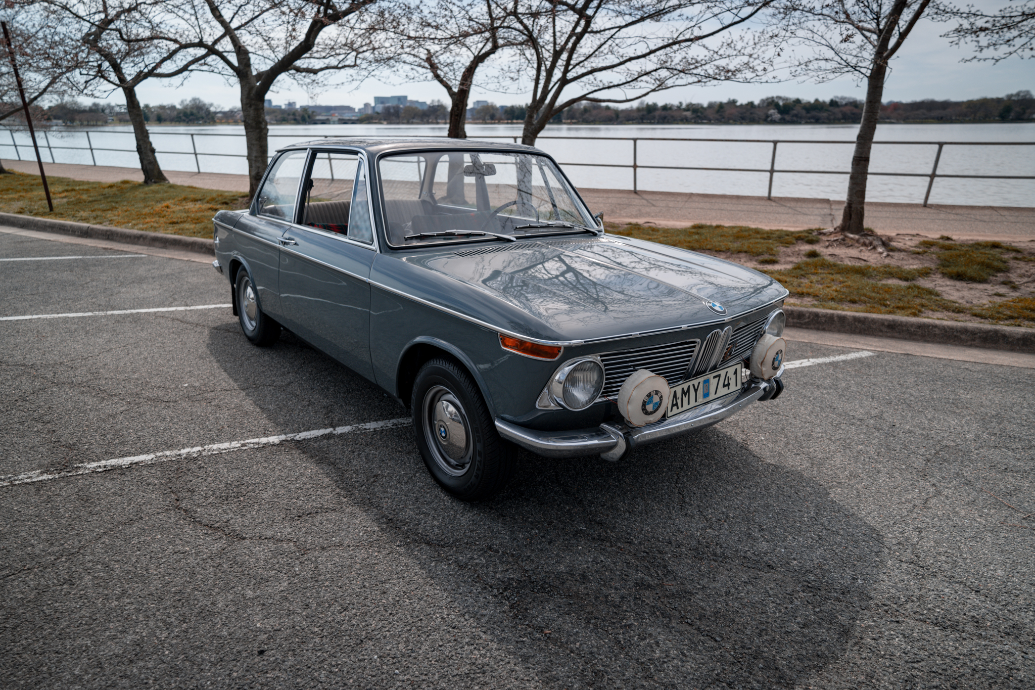 Steel 13″ wheels wear polished covers with BMW logo centers and are mounted with 165/80 Kumho Power Star 758 tires showing 2002 date codes. Braking is provided by front discs and rear drums. The steering box was adjusted in 2021.