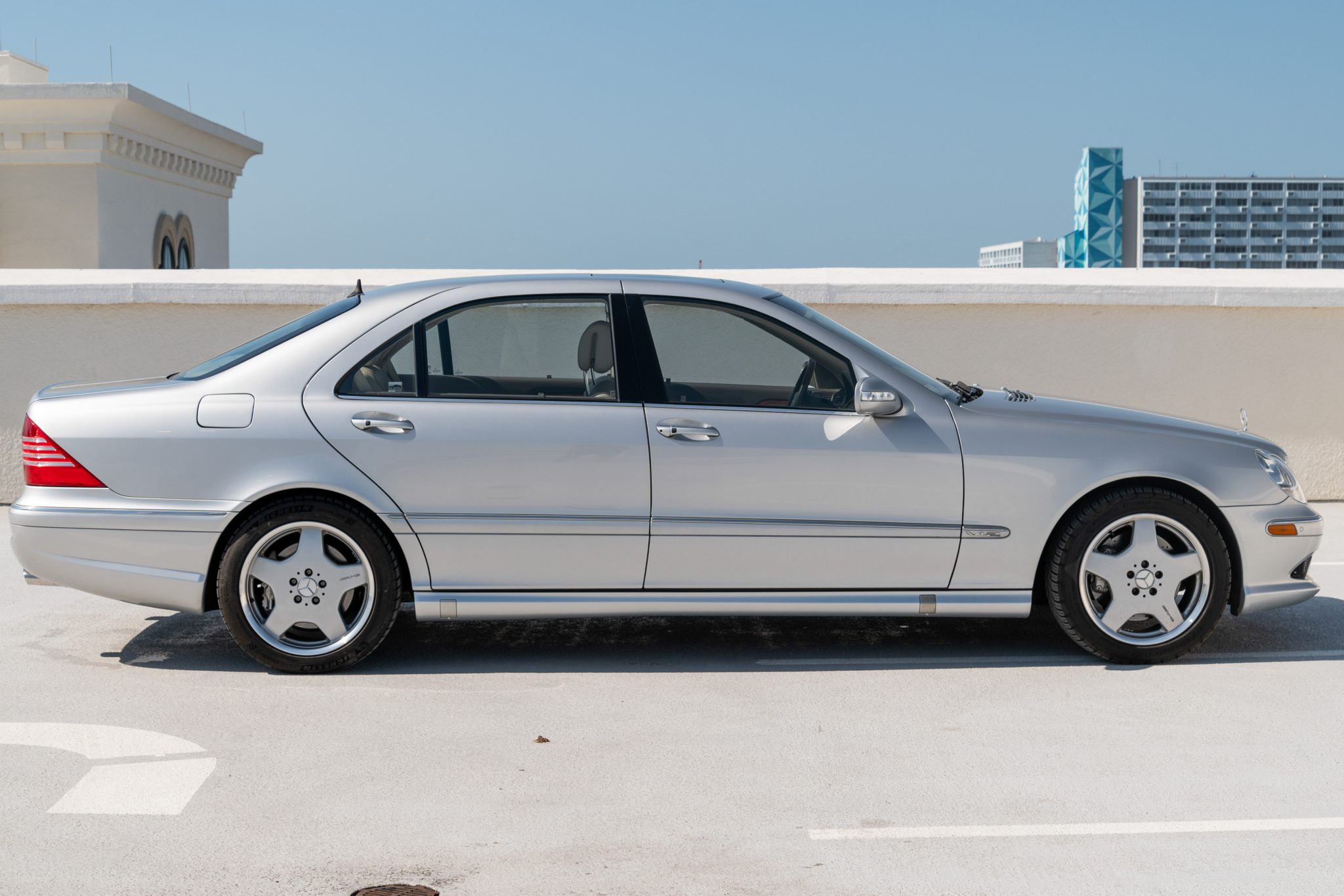AMG Monoblock 18″ wheels are mounted with 245/45 front and 265/40 rear Michelin Pilot Sport 4S tires showing 2020 and 2021 date codes. The car is equipped with an Active Body Control (ABC) suspension, which was serviced under current ownership with a replacement hydraulic pump and right front strut. Stopping power is provided by four-wheel disc brakes with drilled front rotors and Mercedes-Benz-branded calipers at each corner.