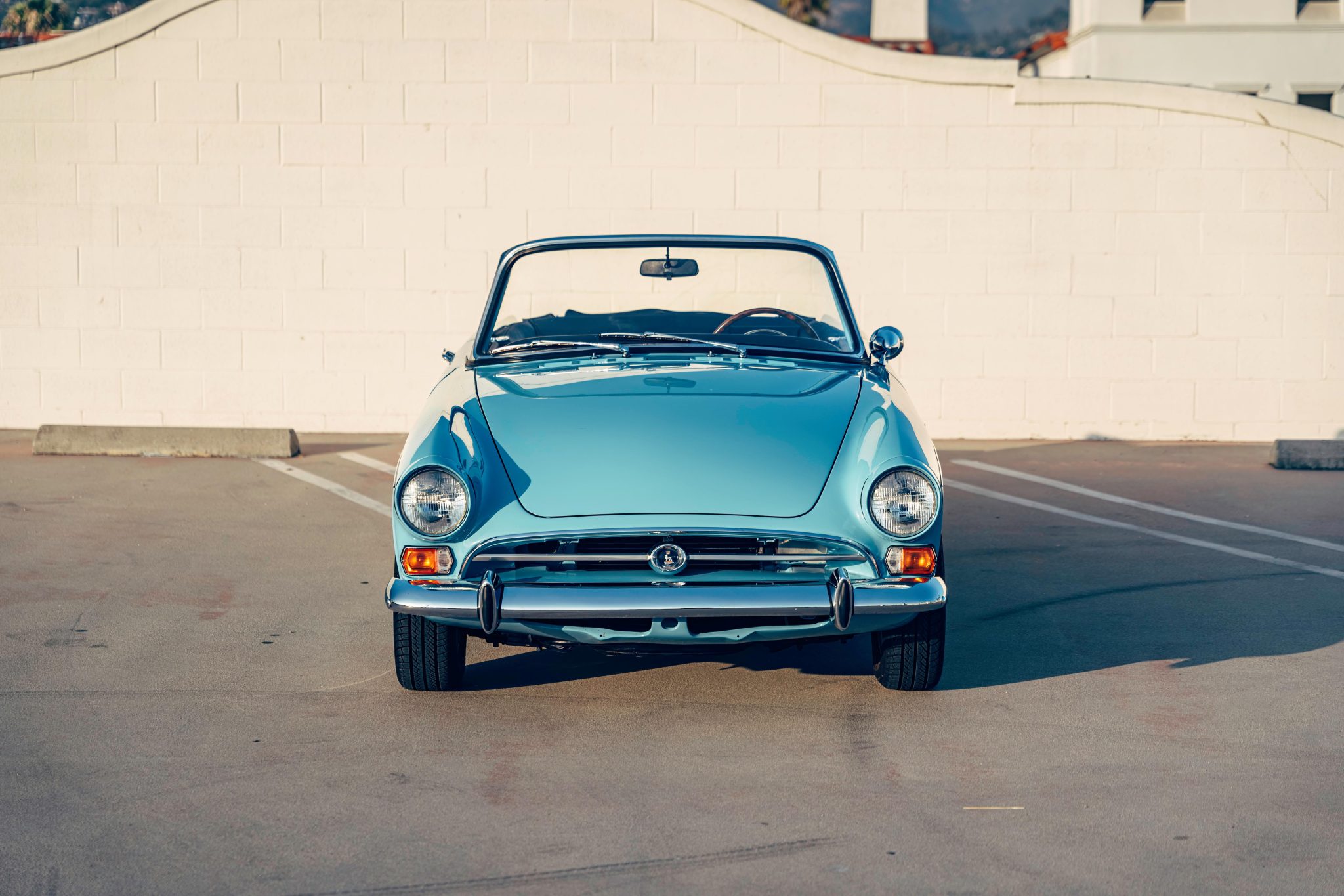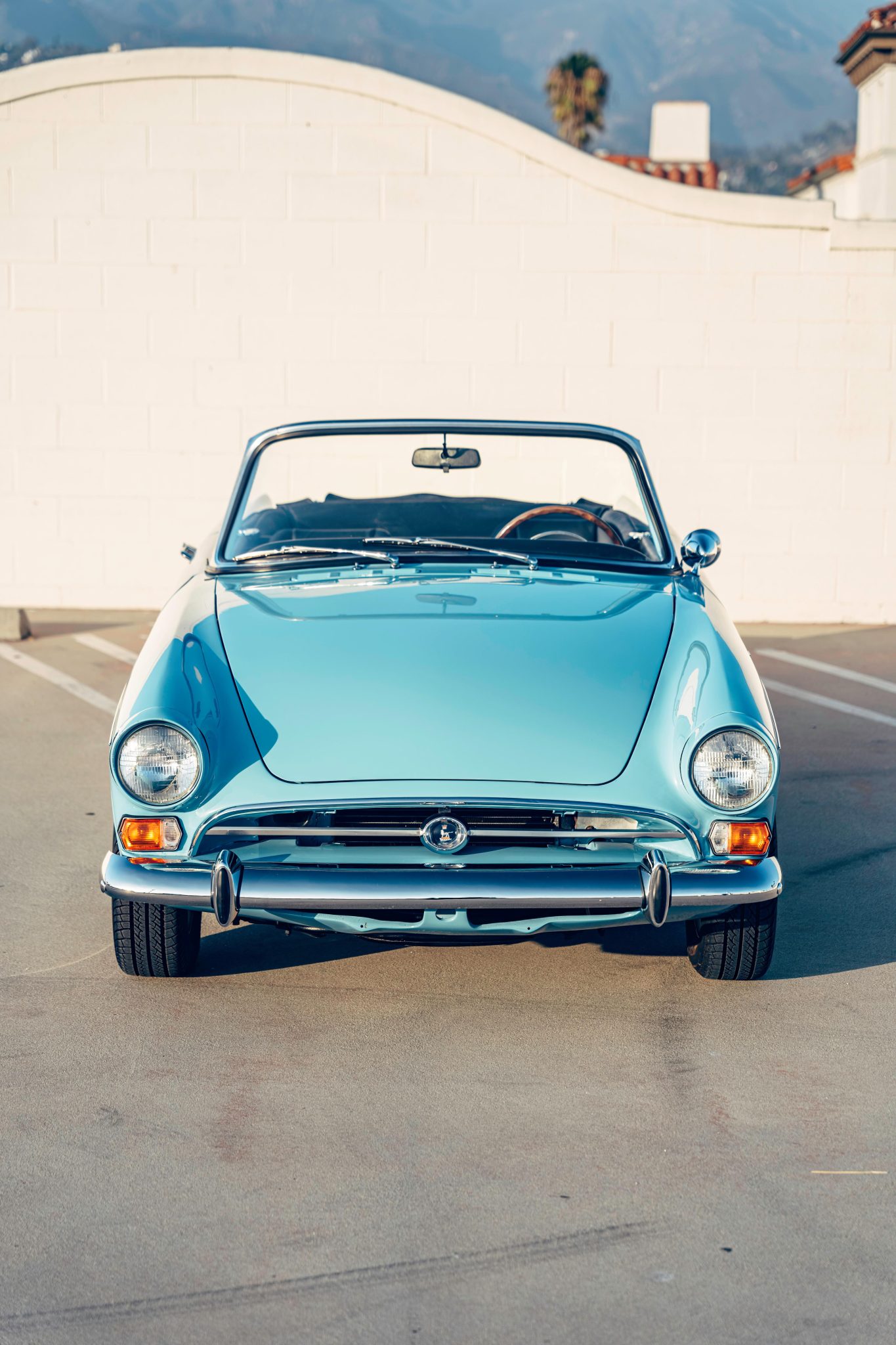 The 13″ steel wheels are finished in cream and wear chrome hubcaps. Tires are 185/70 Uniroyal Tiger Paws. Braking is handled by front discs and rear drums.
