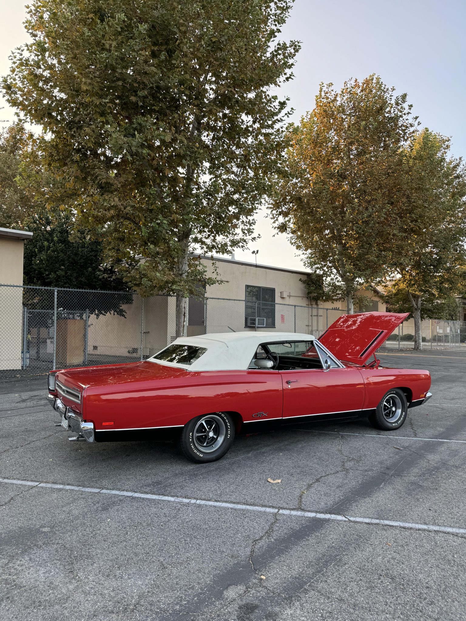 Chromed 14″ steel road wheels are mounted with BFGoodrich Radial T/A tires. The car is equipped with power steering, and braking is provided by drums at each corner.