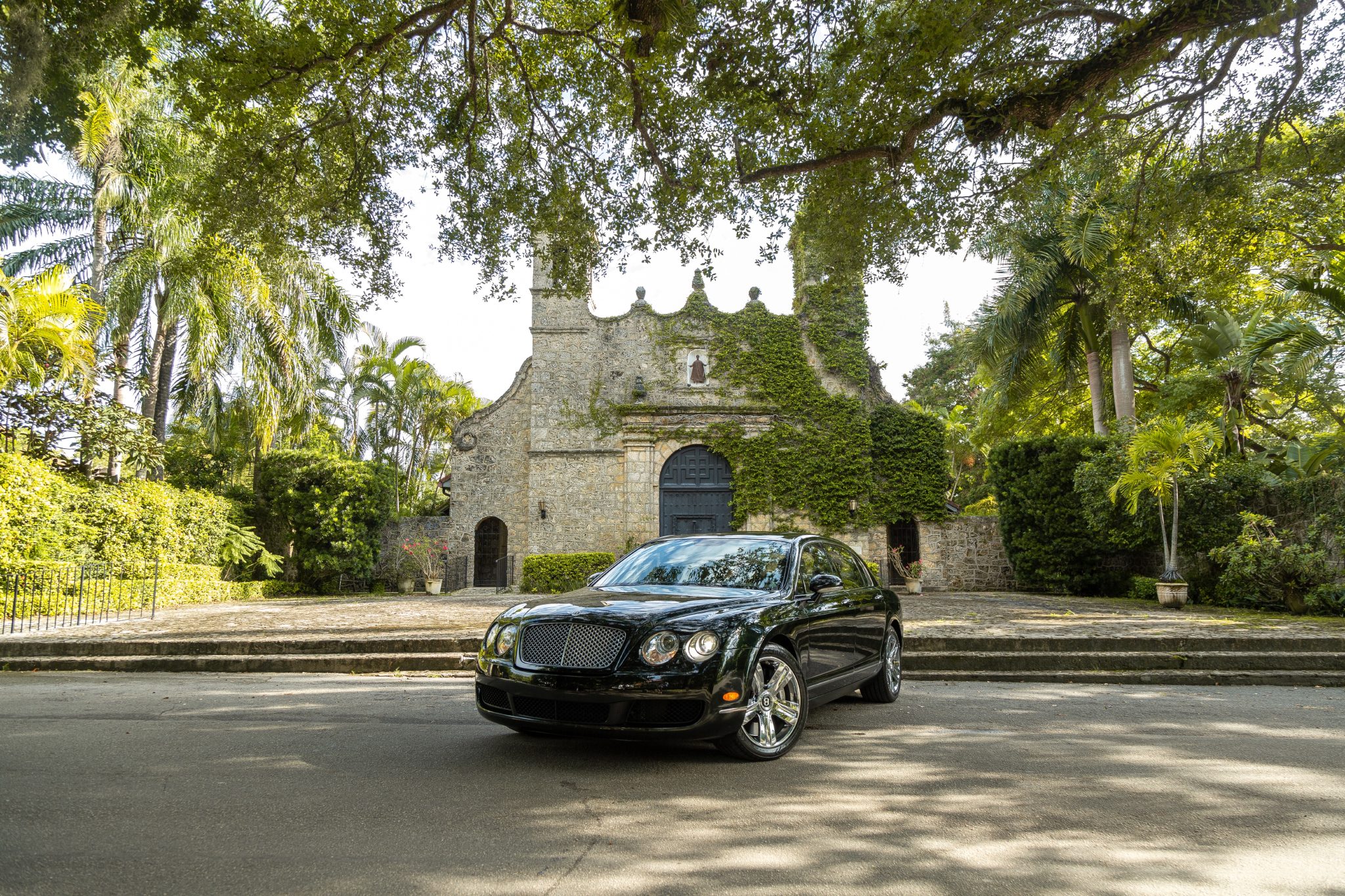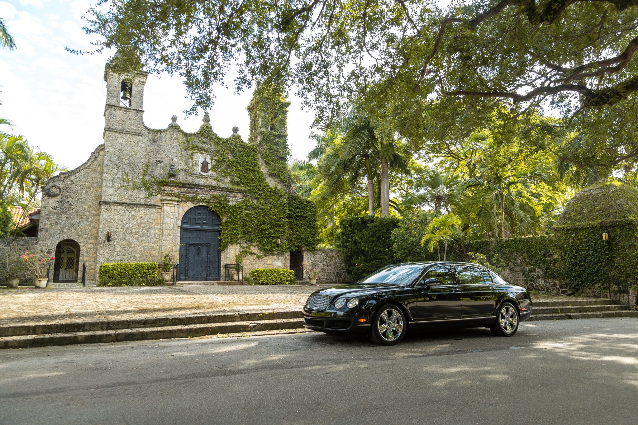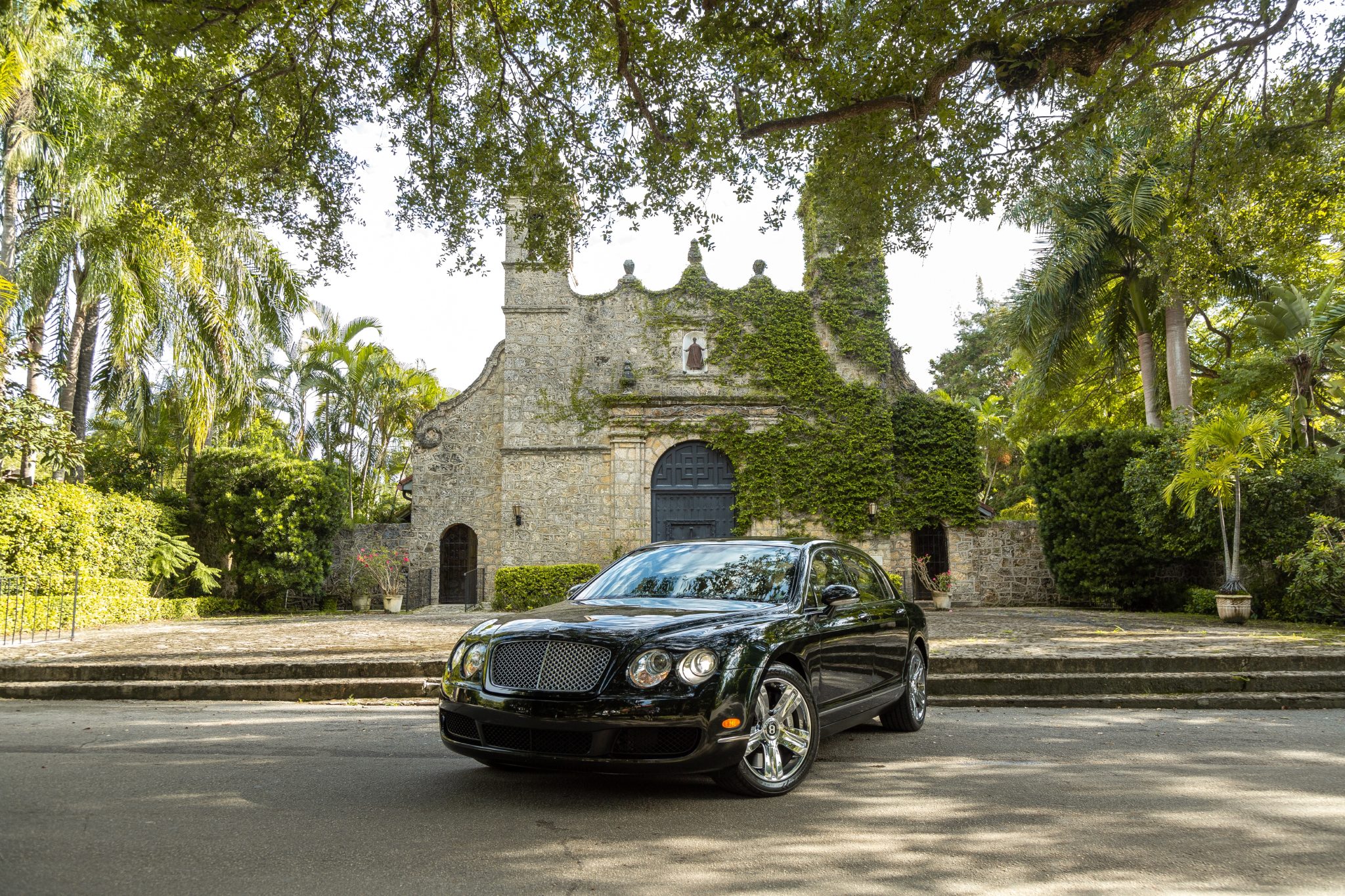 Chrome 19″ five-spoke alloy wheels are mounted with 275/40 Goodyear Eagle Exhilarate tires. Braking is handled by Bentley-branded calipers fitted over ventilated discs at each corner. The car came factory-equipped with a self-leveling air suspension.