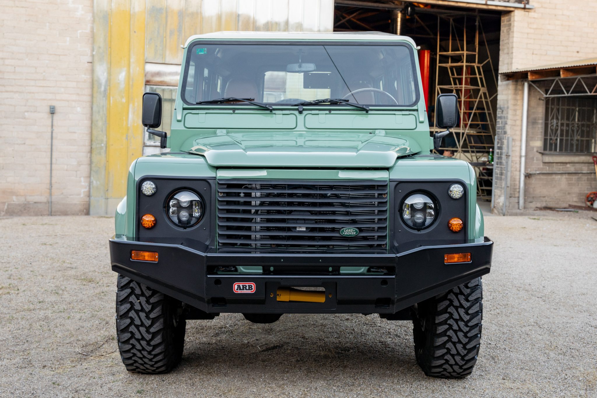 The 16″ steel wheels are mounted with 265/75 Toyo Open Country M/T tires. A matching spare is secured to a swing-out carrier at the rear. An Old Man Emu steering stabilizer has been installed, and stopping power is from four-wheel disc brakes.