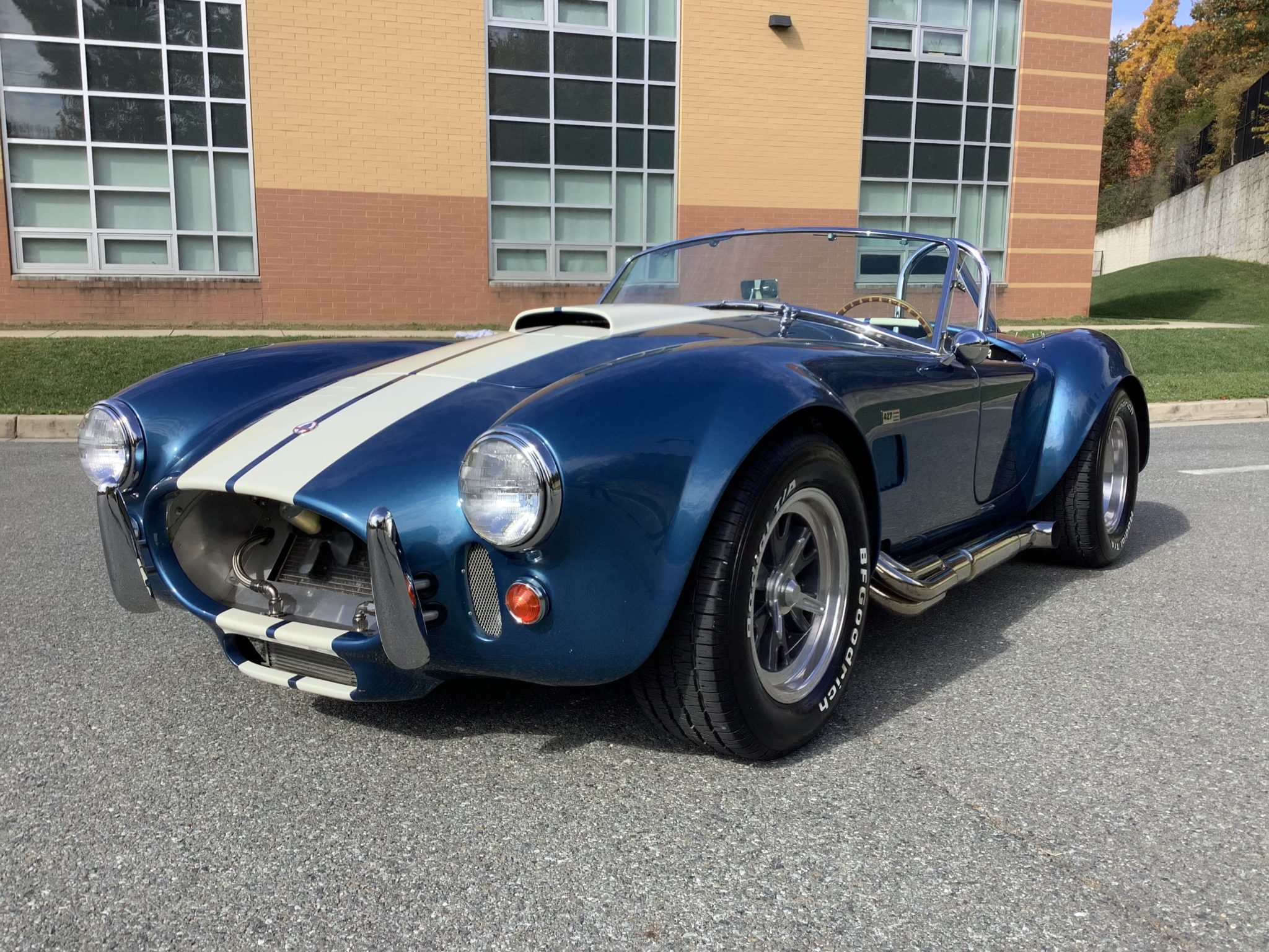 The 15″ Halibrand-style wheels are secured to the hubs with safety-wired three-eared knock-off spinners and were mounted with BFGoodrich Radial T/A tires in 2023. The car features a tubular steel chassis, rack-and-pinion steering, four-wheel independent coilover suspension, and front and rear sway bars. Stopping power is provided by four-wheel discs with an outboard rear setup.