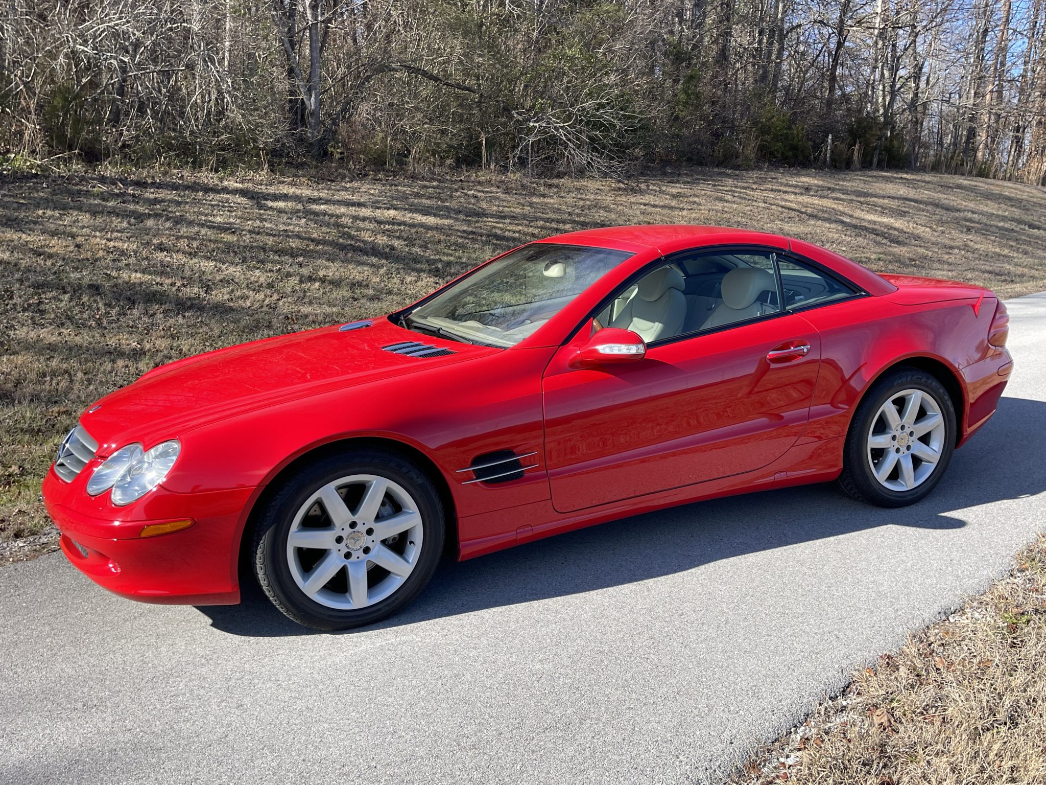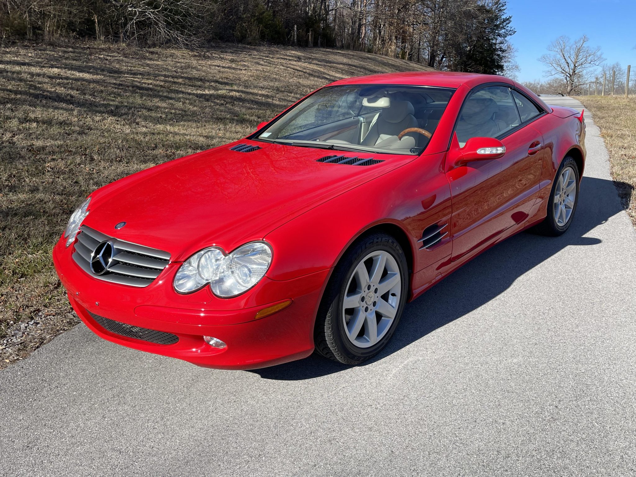 Silver 17″ seven-spoke alloy wheels are mounted with an older set of Michelin tires. The car features Active Body Control (ABC) suspension as well as an Electronic Stability Program (ESP) and Automatic Slip Control (ASR). The Sensotronic Brake Control (SBC) unit was replaced and the brake fluid was changed in 2024.