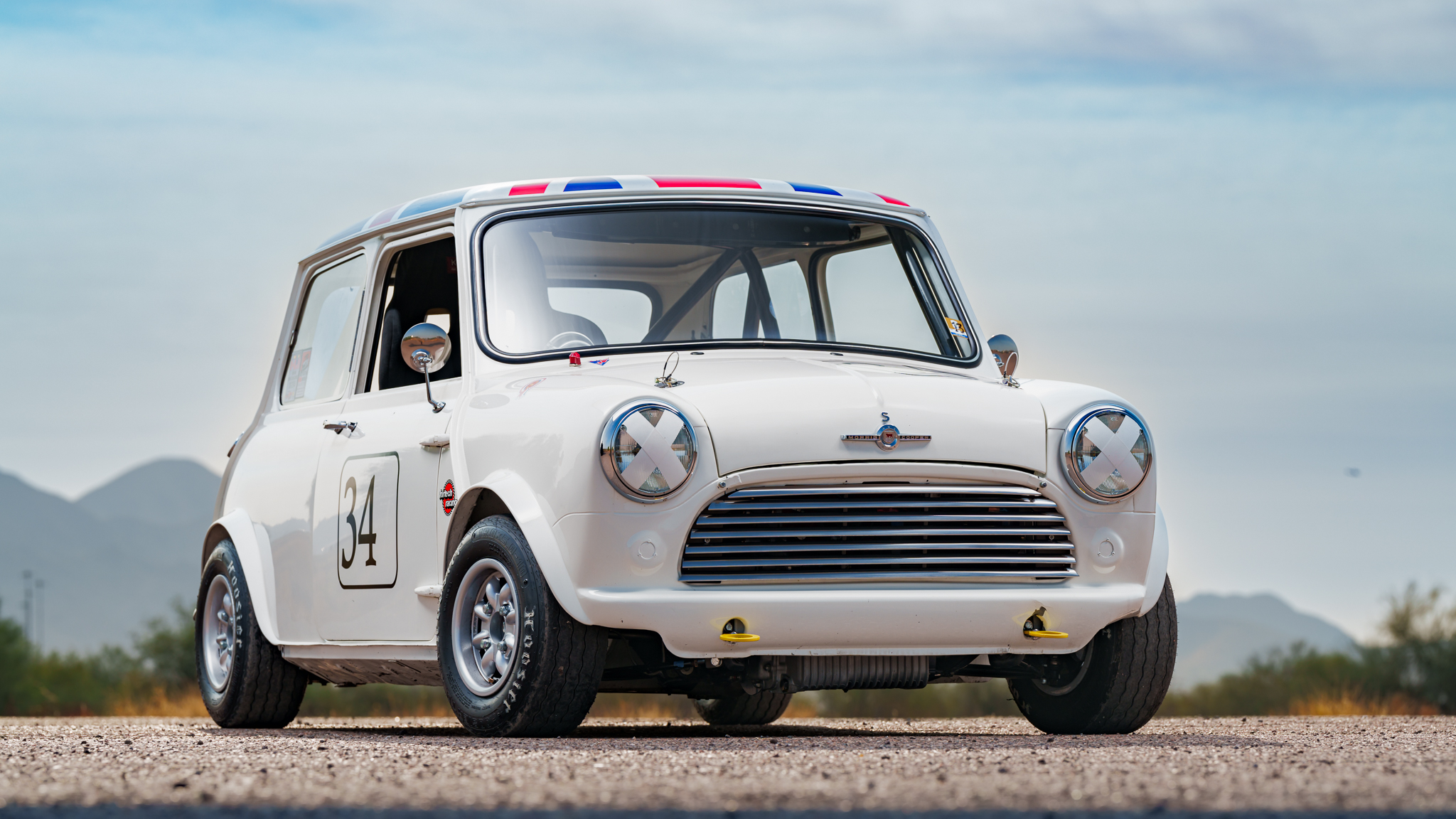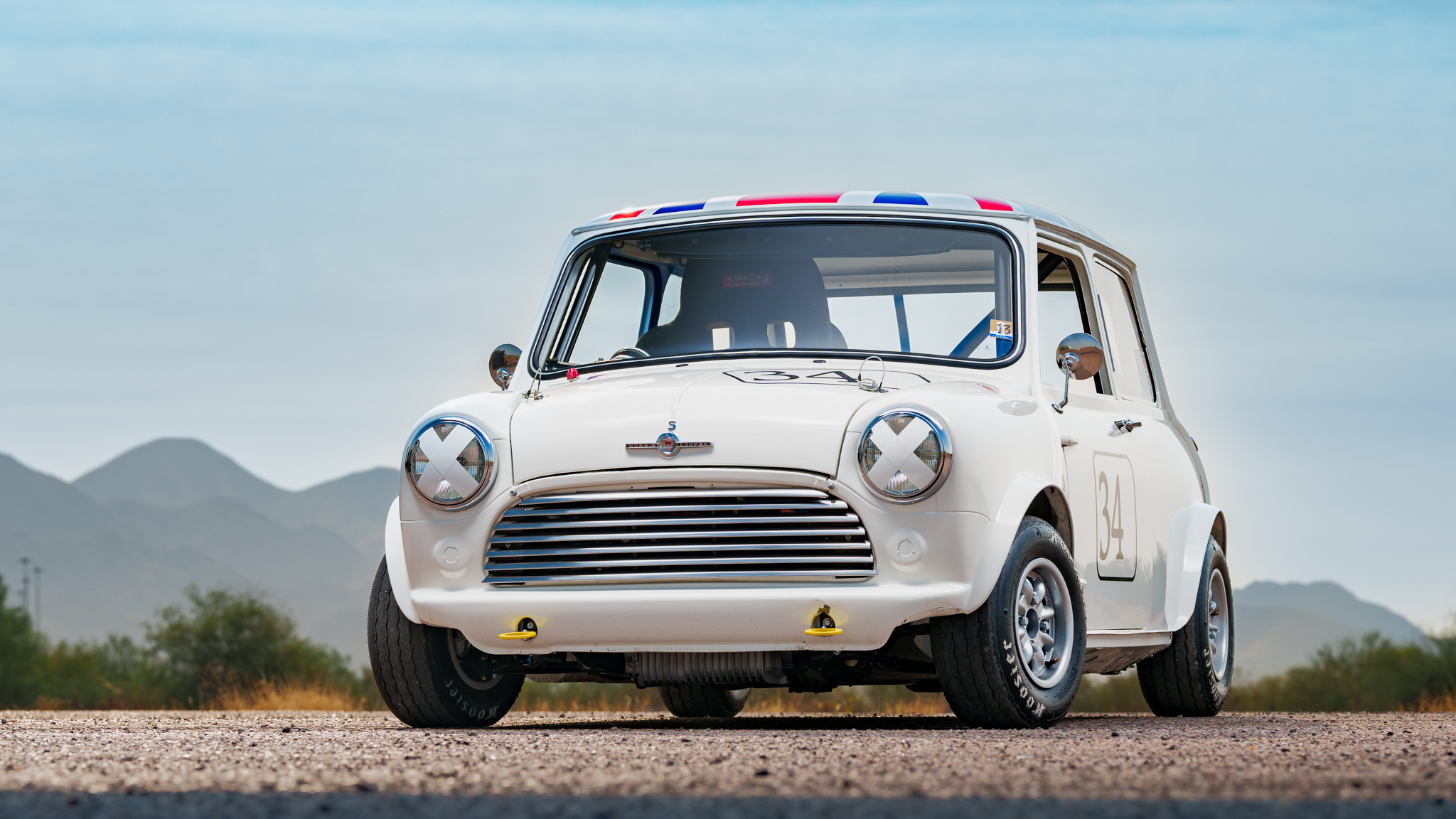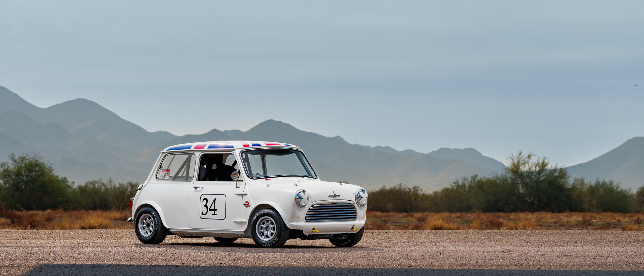 The 10″ Minilite wheels are mounted with Hoosier slicks. The car is equipped with a dry Hi-Lo suspension, Spax adjustable shocks, AP Racing front disc brakes, finned rear drum brakes, a Speedwell dual brake master cylinder, a brake bias adjuster, braided brake hoses, Aeroquip brake fittings, Delrin bushings, and a KAD narrow rear sway bar.