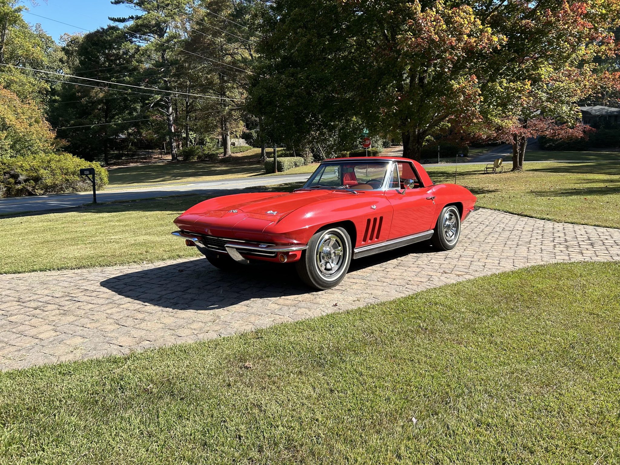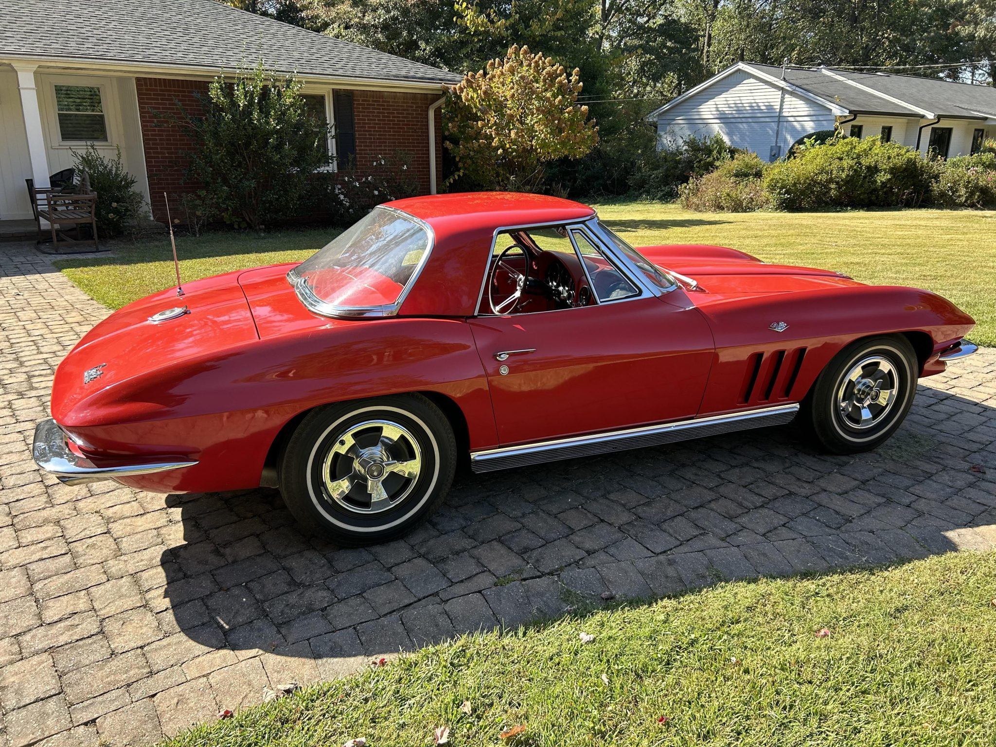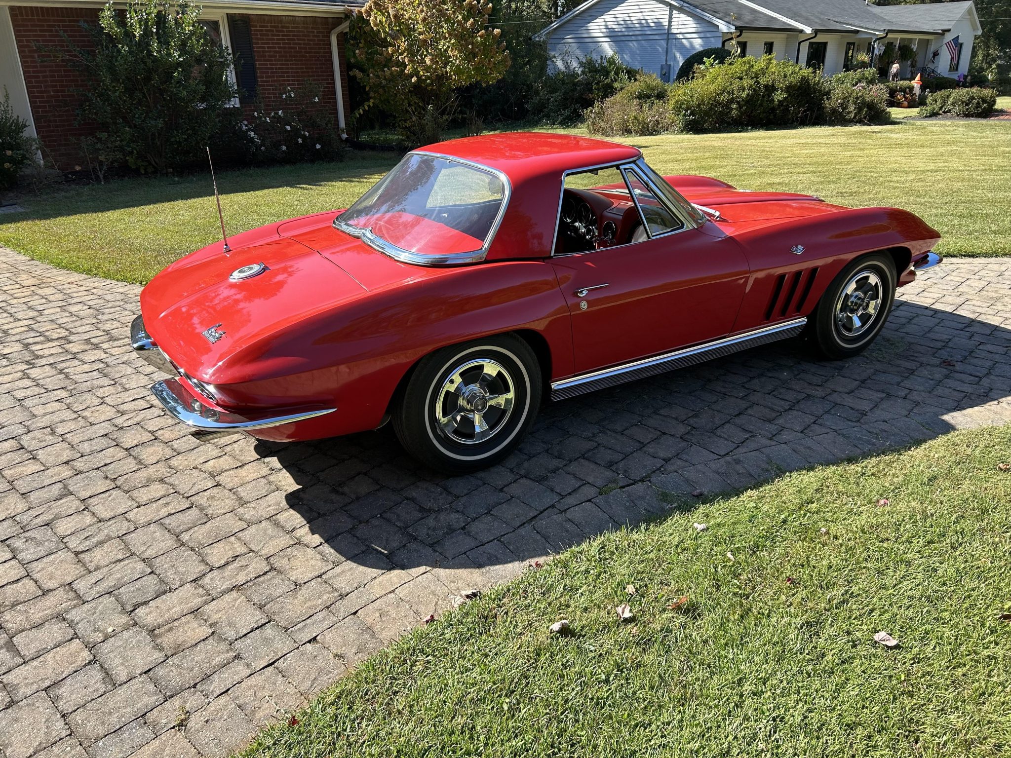 The 15″ steel wheels wear faux-knock-off covers and are mounted with F78-15 Goodyear tires. The C2 was the first Corvette to offer fully independent suspension, with upper and lower control arms at the front and a three-link setup with a transverse leaf spring at the rear. The shocks were replaced in 2018, and a Borgeson power steering conversion kit was installed in 2022. Braking is handled by four-wheel discs, and the front pads and the right front caliper were replaced in 2021.
