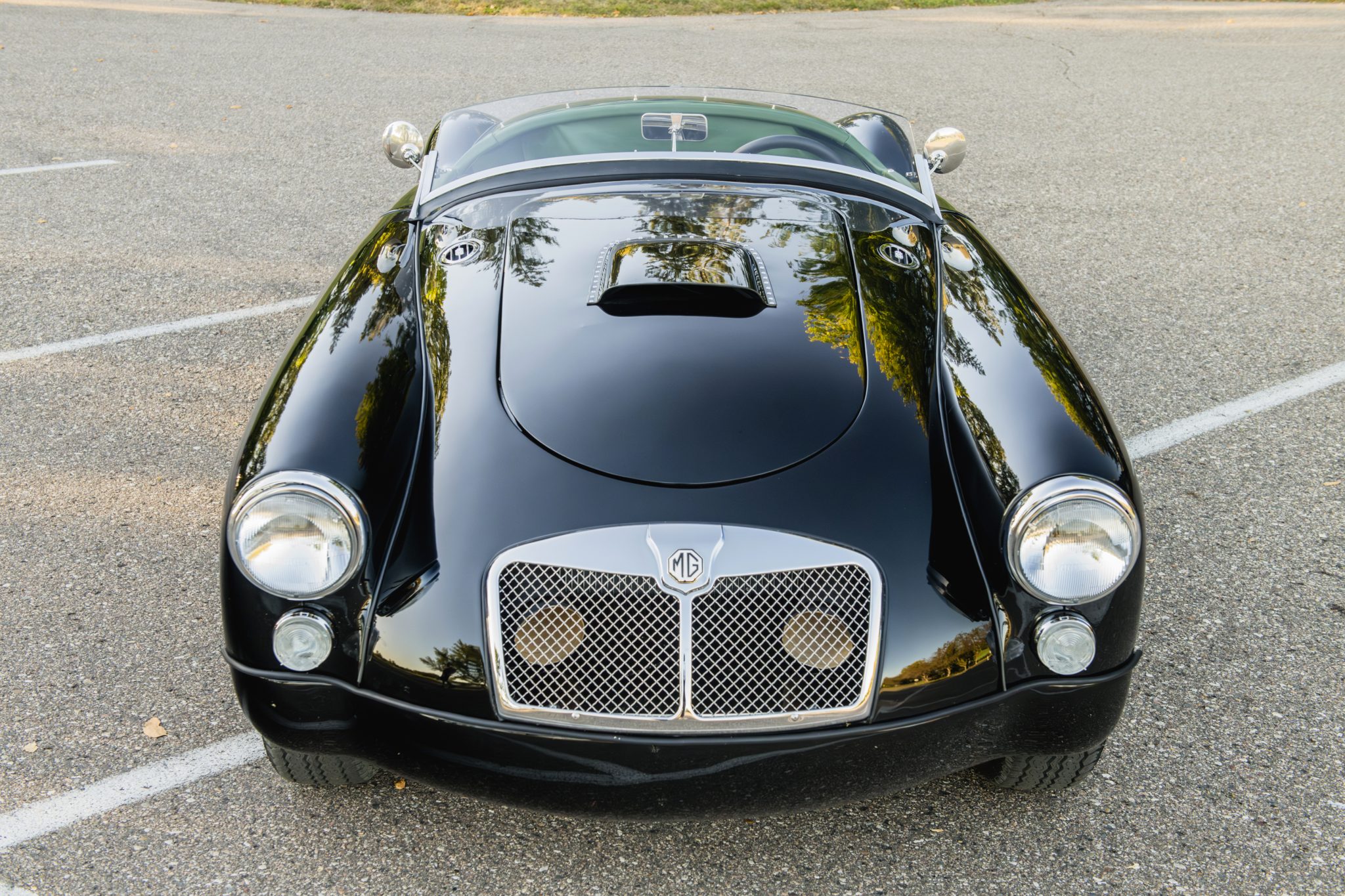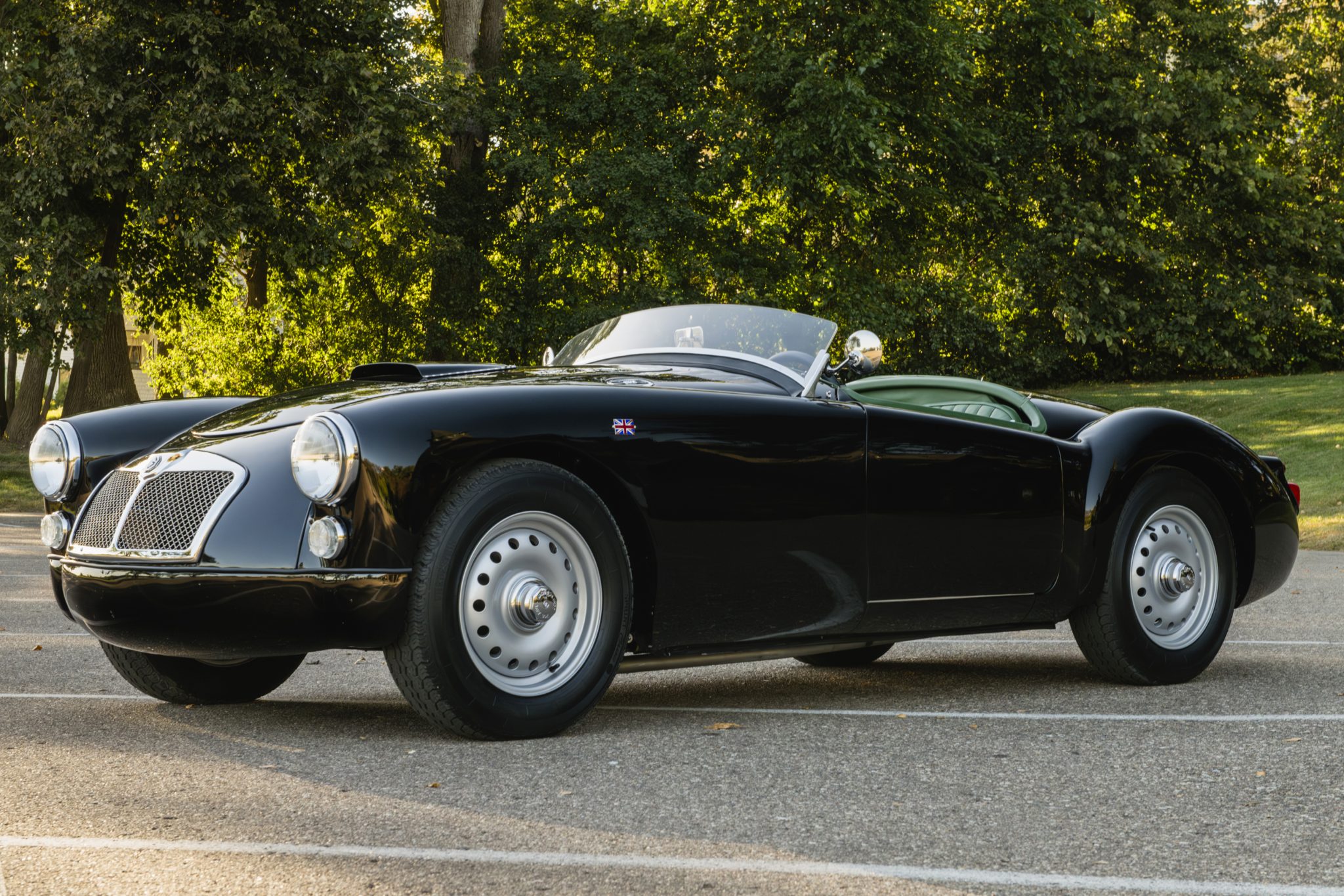 Center-lock 15″ Dunlop-replica alloy wheels sourced from Realm Engineering are mounted with 185/70 Vredstein Sprint Classic tires. The car has been lowered by approximately 1″ on its suspension using stronger front coil springs and shackles on the rear leaf springs. Braking is provided by front discs and rear drums. The chassis, brakes, and suspension had already been addressed when the seller acquired the vehicle and continued the project.