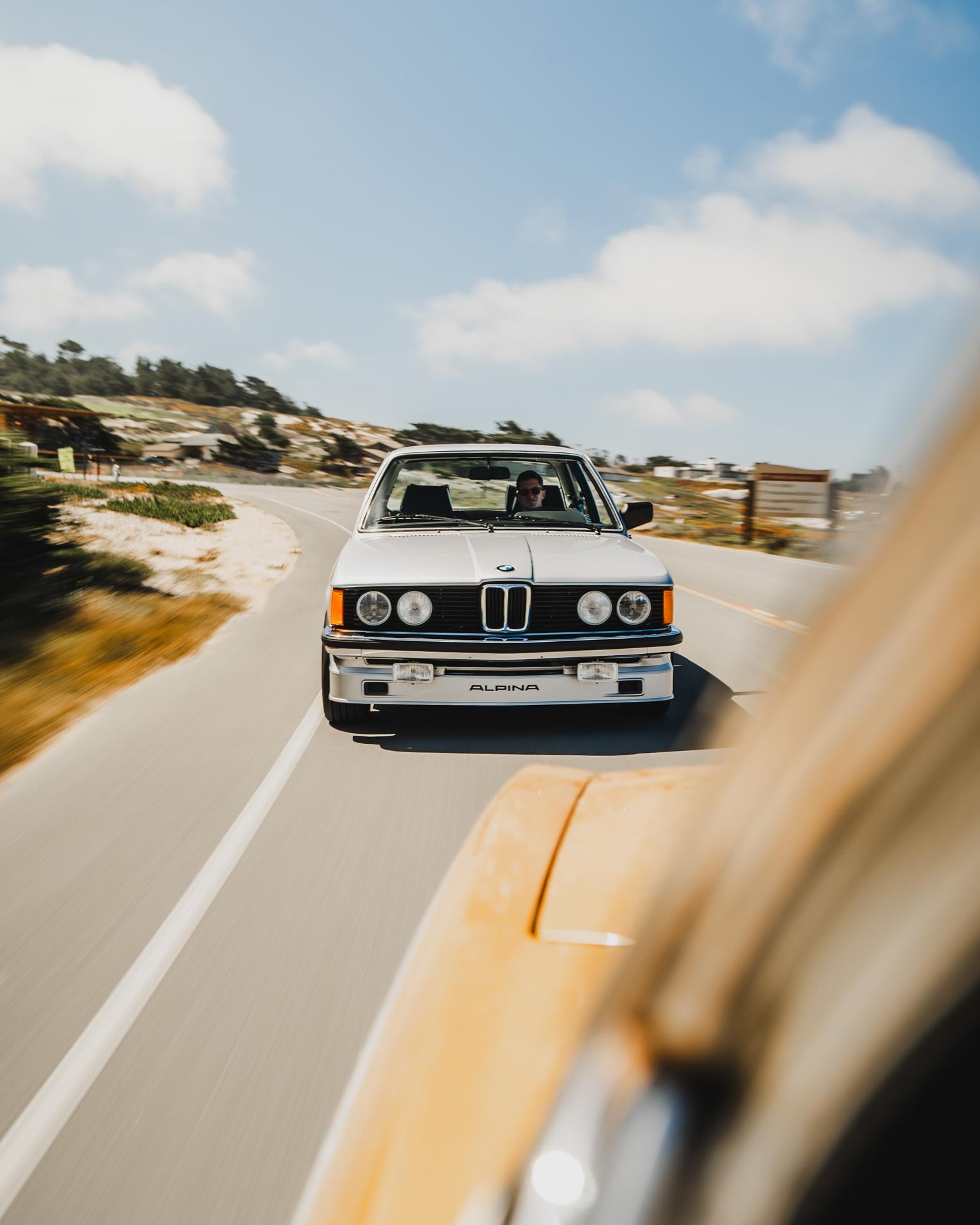 Staggered-width 15″ Alpina wheels are wrapped with 195/50 front and 205/50 Yokohama Advan Fleva tires that were mounted in August 2023. A steel spare wheel with a Michelin tire is stowed in the trunk along with a tool kit and a warning triangle. The car is equipped with power steering, and the Alpina FD3 suspension kit consists of four-way adjustable Bilstein B8 Sprint shocks, Eibach lowering springs, a rear sway bar, and rear subframe bushings. Stopping power is provided by discs at all four corners.