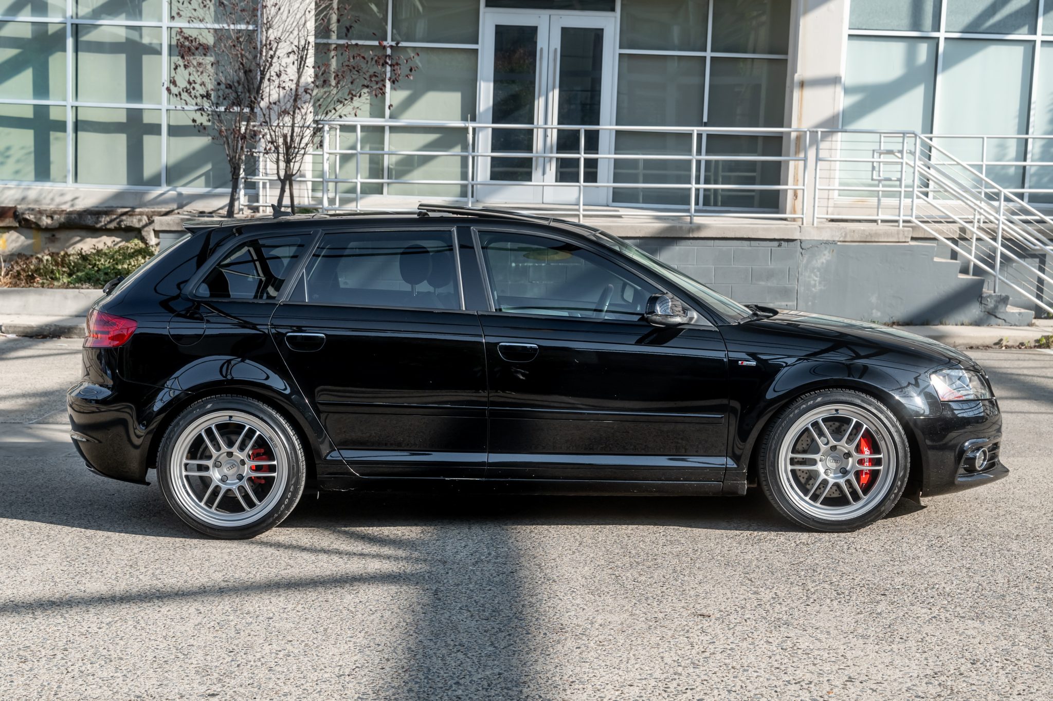 Enkei 18″ alloy wheels are mounted with Goodyear Eagle F1 Asymmetric all-season tires that show 2016 date codes. Bilstein coilovers and a SuperPro rear sway bar have been added, and the brake system features Rotora front calipers along with drilled Rotora front and rear rotors. The removed factory wheels accompany the vehicle.
