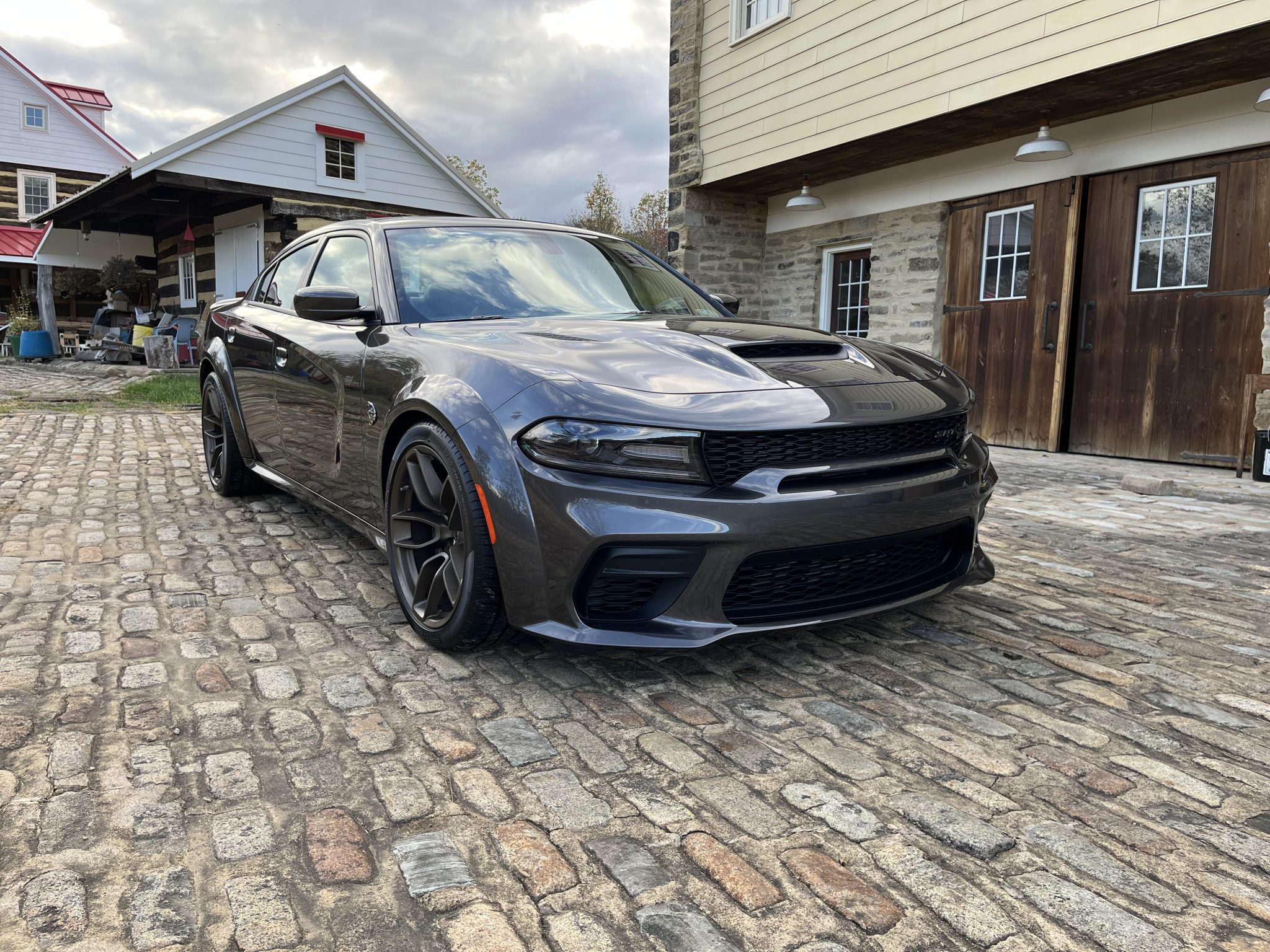 Brass Monkey 20″ Devils Rim forged-aluminum wheels are mounted with 305/35 Pirelli P Zero All Season tires. The four-wheel disc brake system features gunmetal gray-finished calipers and slotted front rotors, and the car is also equipped with adaptive Bilstein dampers.