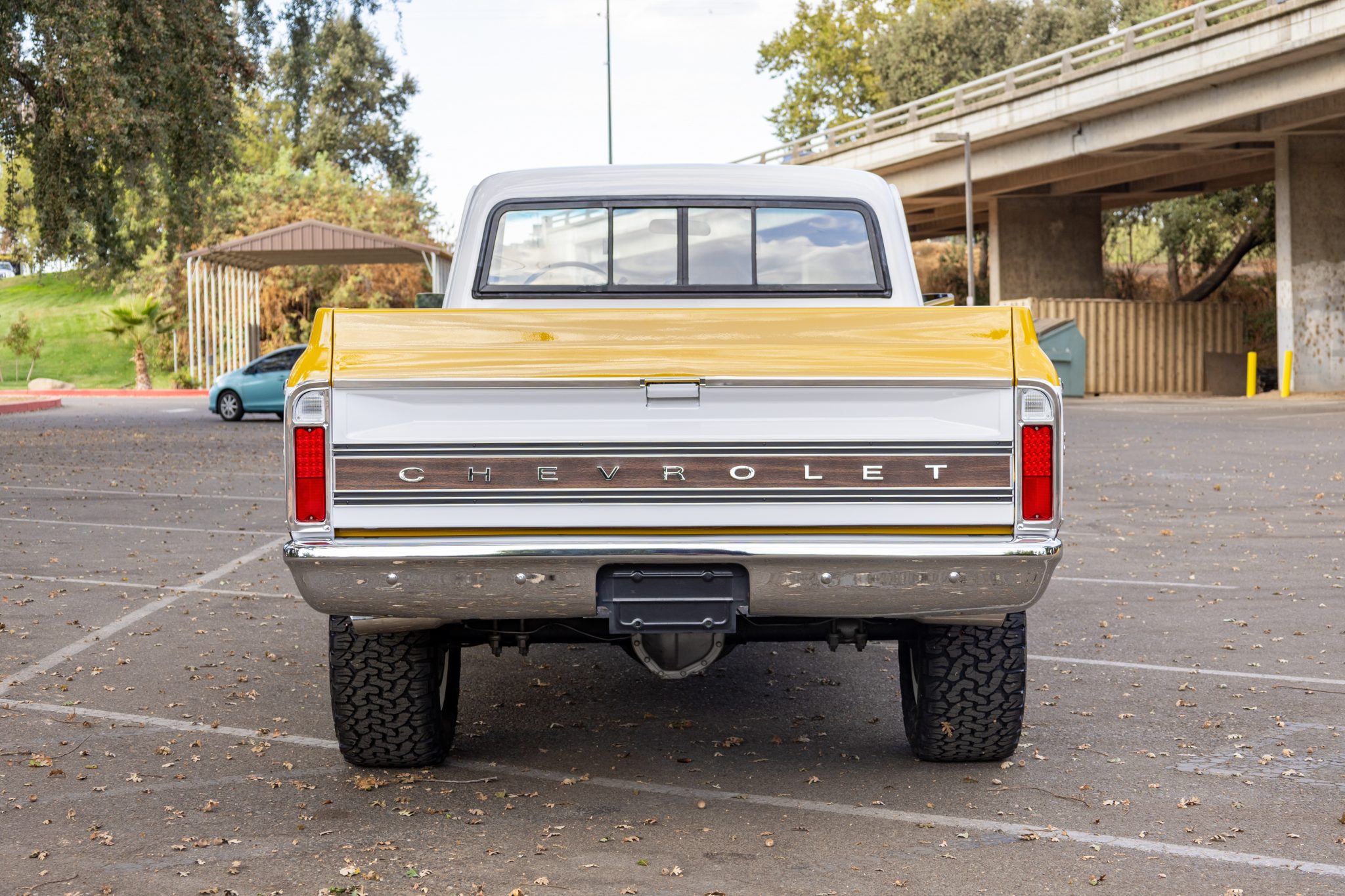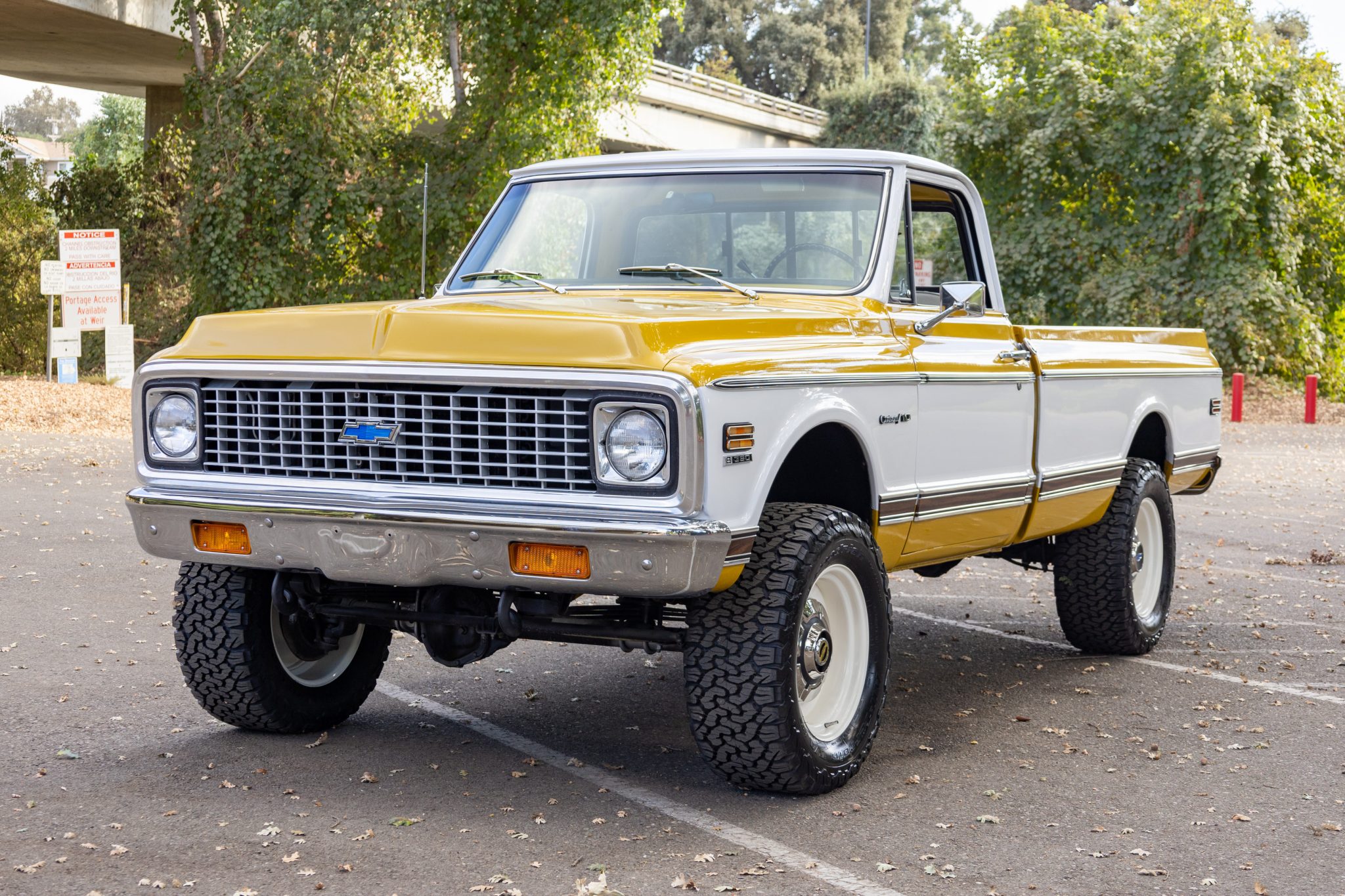 White 18″ Detroit Steel wheels are mounted with BFGOodrich All-Terrain T/A KO2 tires. The truck is equipped with a suspension lift kit, power steering, manually locking front hubs, and front disc brakes.