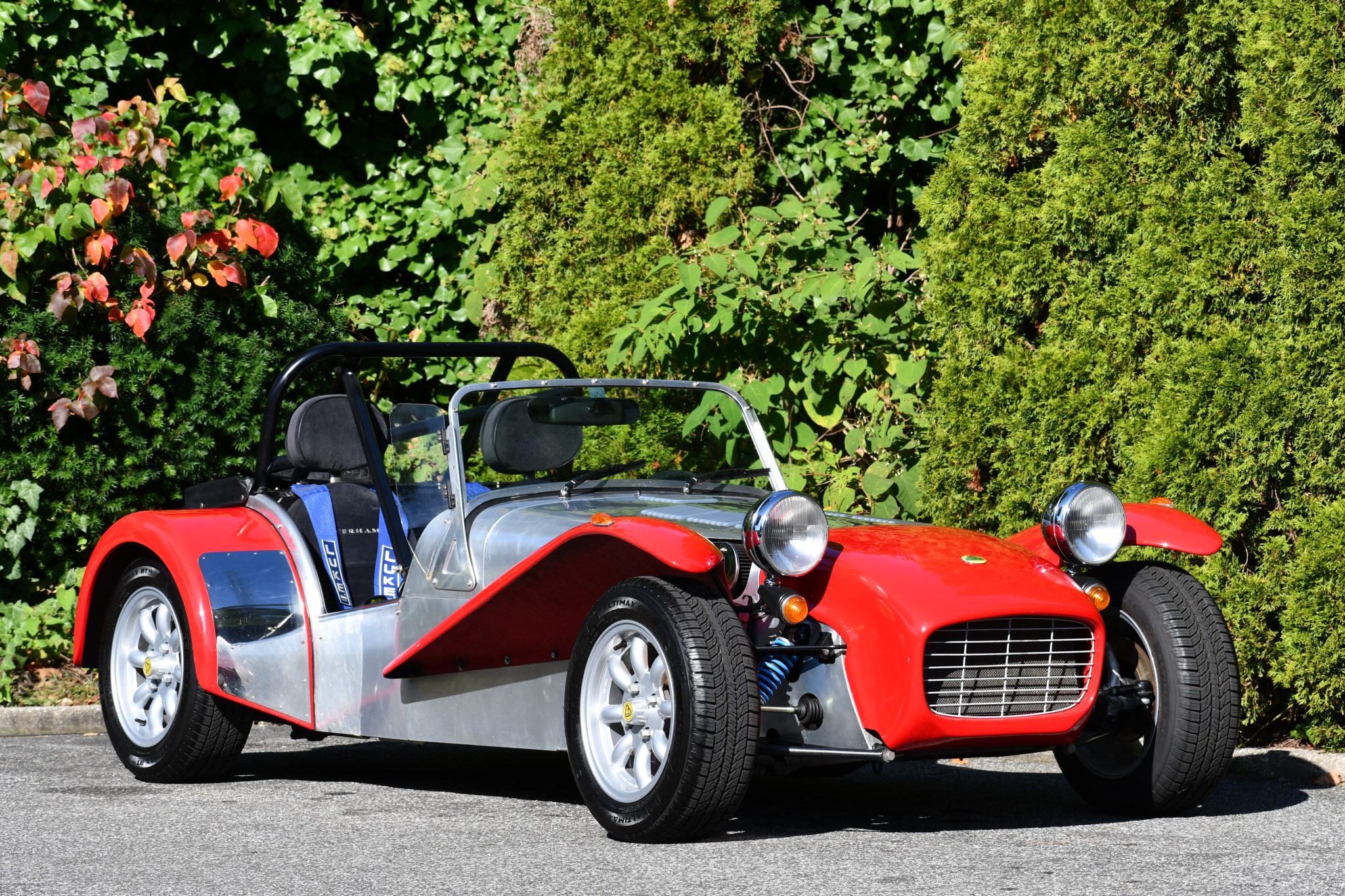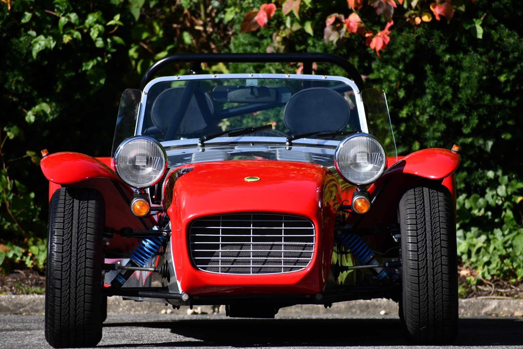 Silver-finished 14″ Minilite-style wheels from Two Gates are mounted with General Altimax tires, and a matching spare is stored out back. The car rides on Bilstein coilovers and features a de Dion suspension setup out back. Braking is handled by four-wheel discs, the fluid for which was flushed in August 2024.