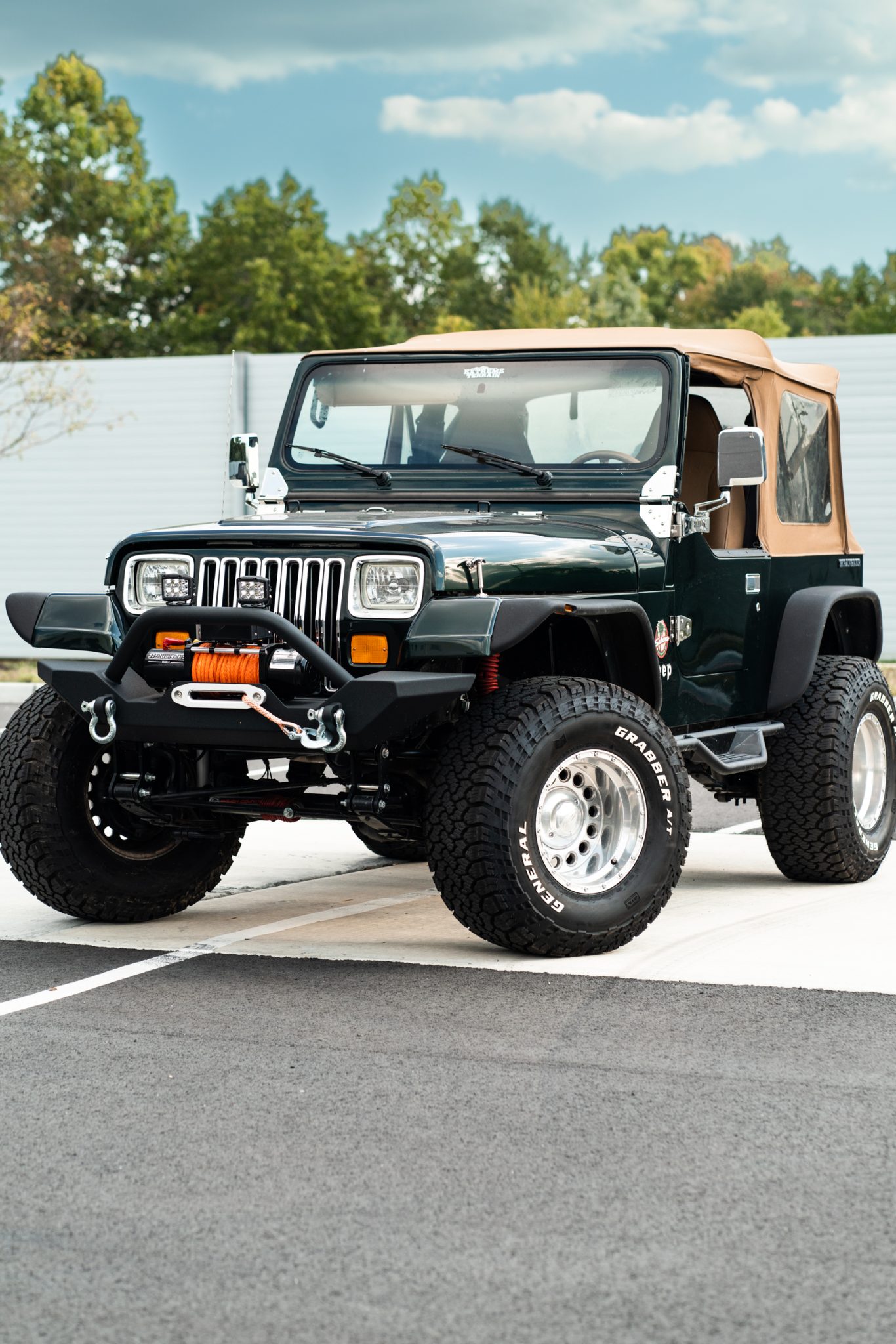 The 15″ Eagle Alloy wheels are mounted with General Grabber A/T tires. A Rough Country steering stabilizer and shocks have been installed, and the selling dealer states the braking system was overhauled during the build.