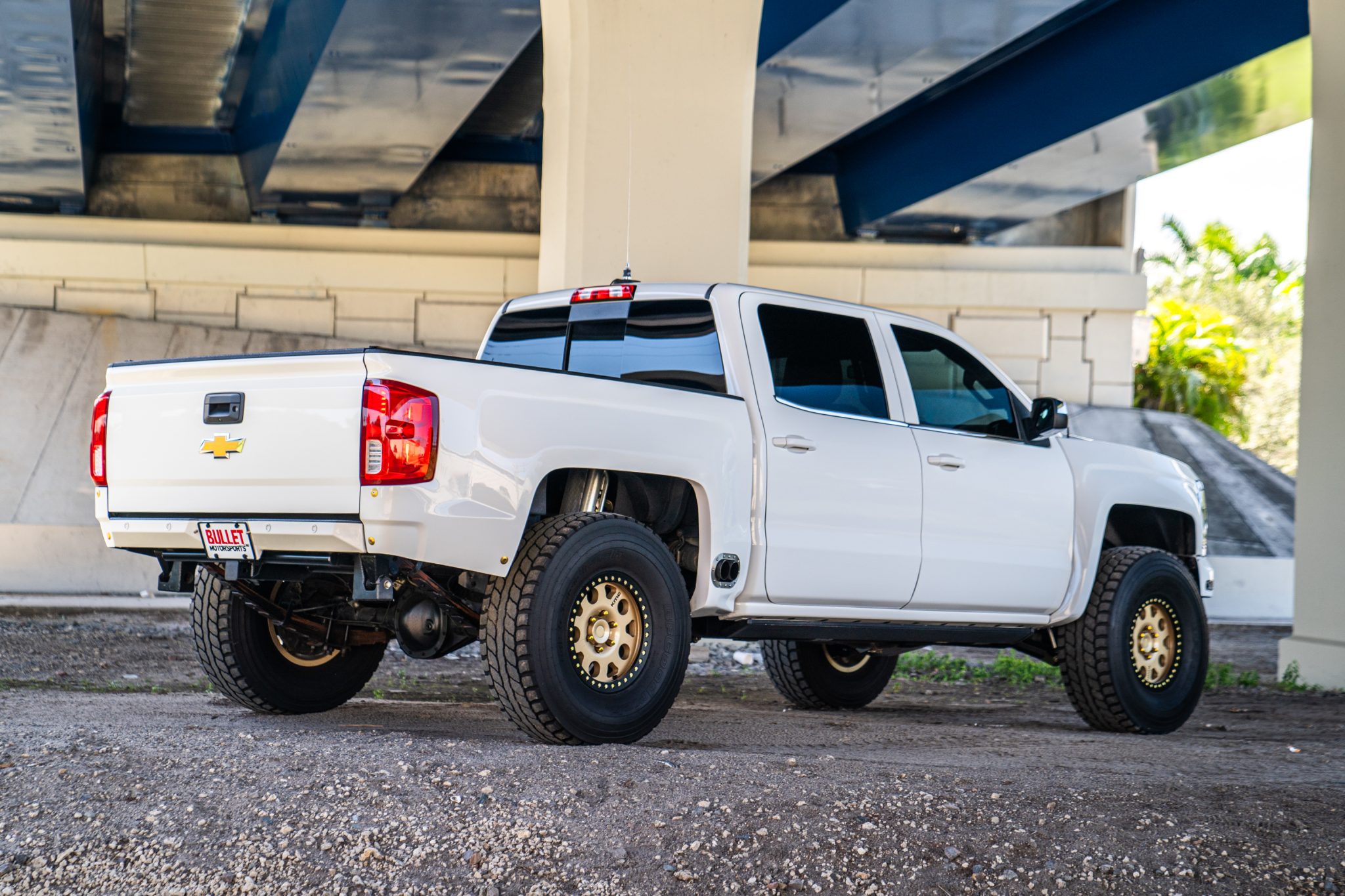 The truck rides on King 3.0 remote-reservoir bypass shocks that were rebuilt by Down South Motorsports in February 2024, and further equipment includes revised rear leaf springs, King heavy-duty bump stops, and long-travel components and front coilovers from Dirt King.