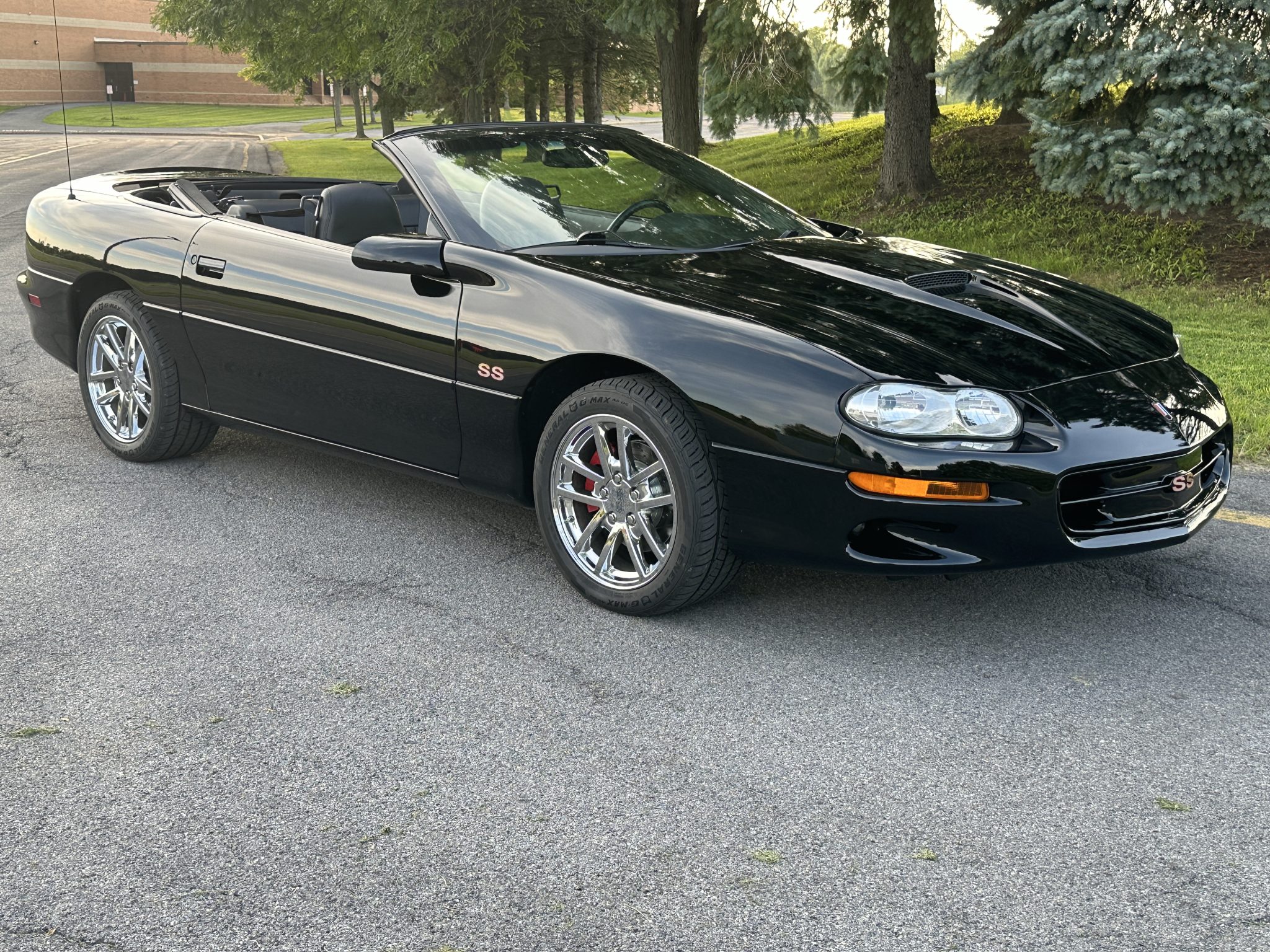 The chrome-finished 17″ split-spoke alloy wheels are mounted with 275/40 General G-Max tires that were fitted in December 2023, at which time the steering rack was also repalced. Additional SS equipment included a performance suspension with a larger front stabilizer bar, revised shock valving, and stiffer springs and bushings than the standard Camaro. R1 Performance brake pads and rotors were installed in August 2024.