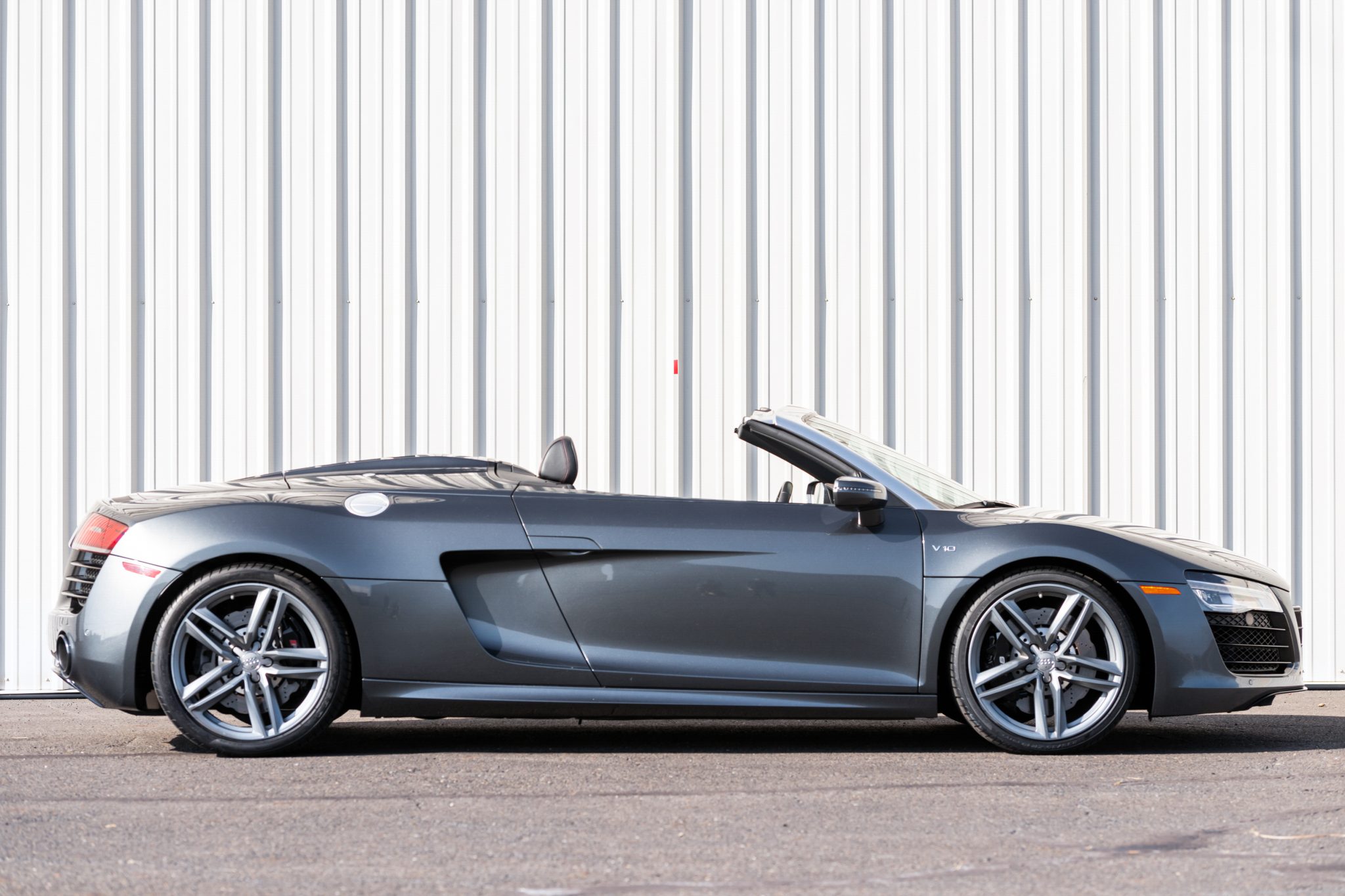 Titanium-finished 19″ five-double-spoke wheels are mounted with 235/35 front and 305/30 rear Pirelli P Zero tires that have production-date codes from 2022 and 2021, respectively. Braking is handled by four-wheel ventilated and cross-drilled discs.