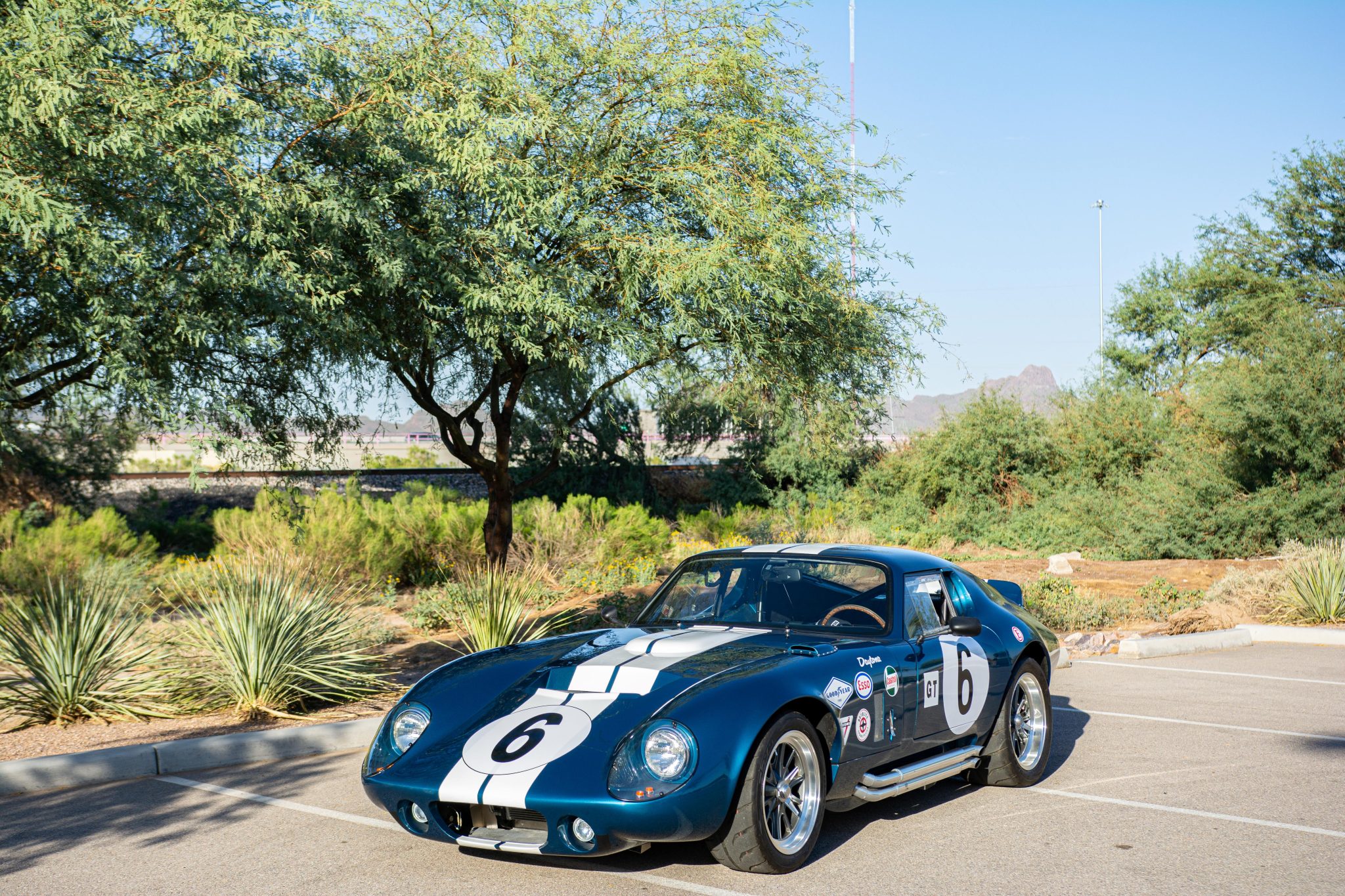The 17″ Halibrand-style wheels are mounted with Toyo Proxes tires. The car is equipped with an independent front and rear suspension, and stopping power is provided by four-wheel discs.
